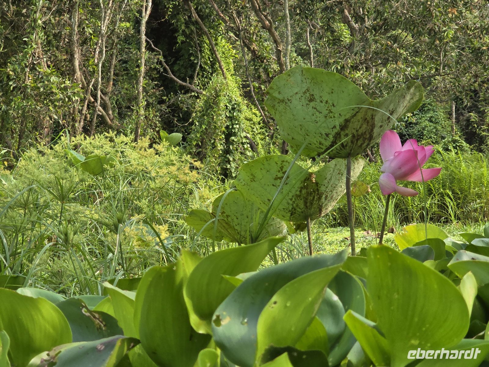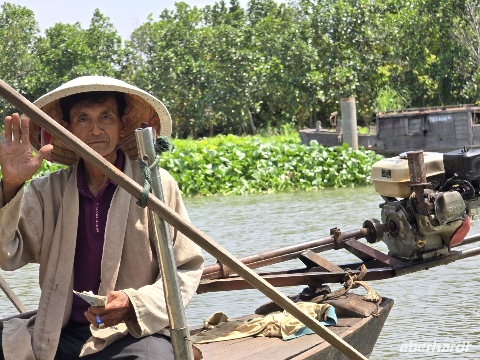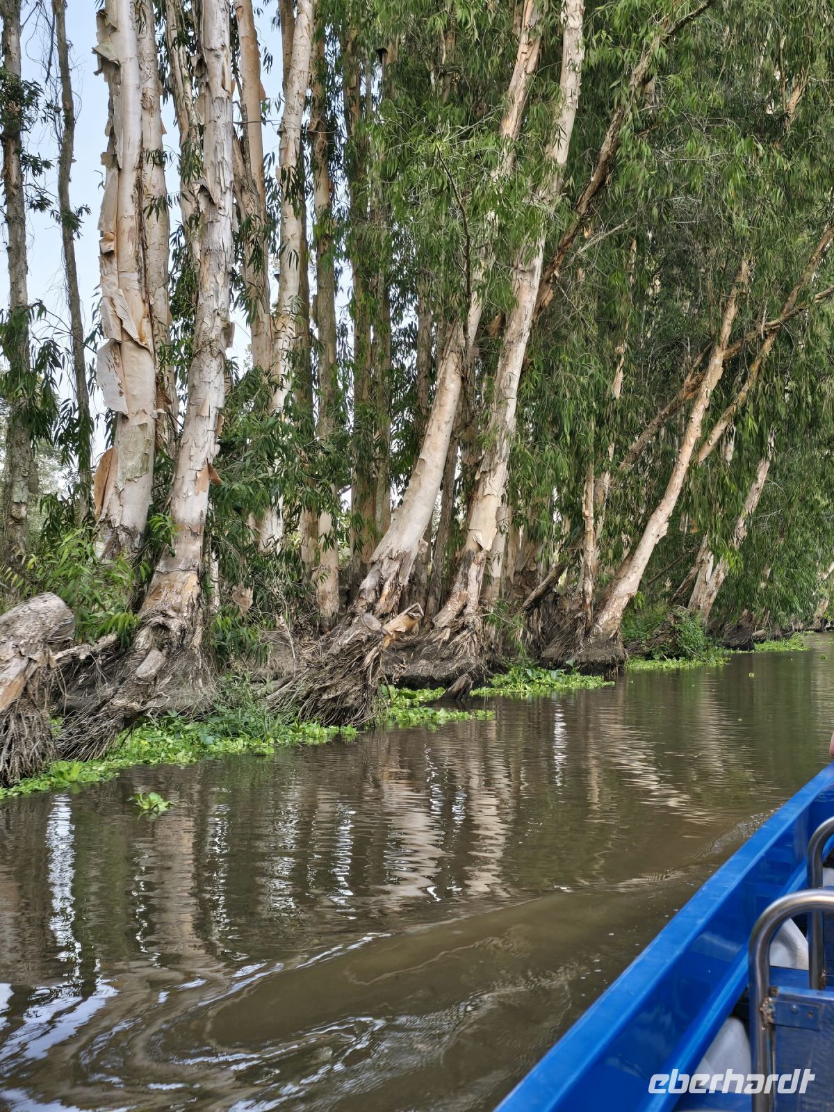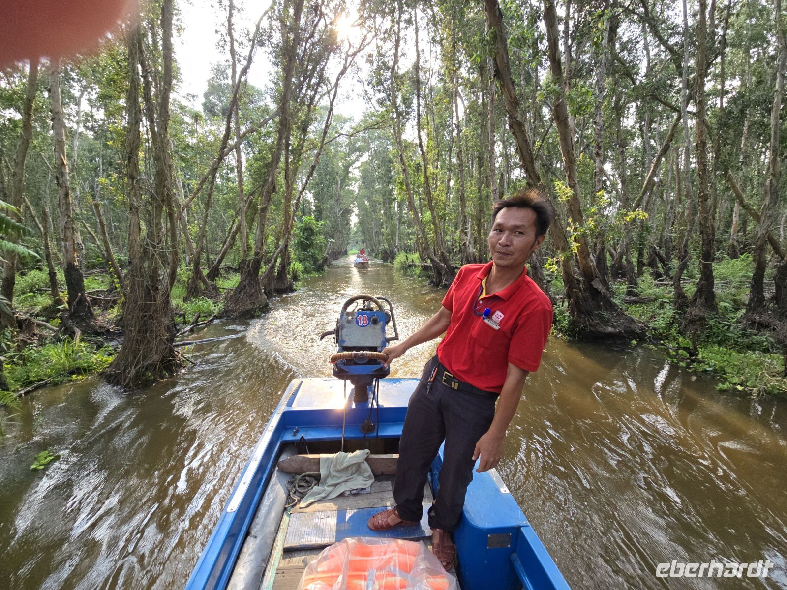 Unser Busfahrer ist zum Glück nicht müde, so kommen wir am späteren Nachmittag bei den Mangrovenwäldern an. Hier sind die Mangrovenwälder durch einen Naturpark geschützt, dem TO TRA SU. Der Park erstreckt sich über ein sehr großes Gebiet und davon dürfen 10% von der Fläche für touristische Aktivitäten genutzt werden. Wir besteigen erst kleine Ruderboote und gelangen damit in die bewachsenen Wasserflächen mit sehr viel Lotusblüten und anderen Wasserpflanzen. Und immer wieder entdecken wir Vögel, die sich in den Pflanzen verstecken. Mit viel Ehrgeiz versuchen unsere Ruderrinnen uns immer wieder neue Vögel zu zeigen. Nach dieser ersten kleinen Runde wechseln wir die Boote, sogenannte Longtales mit einem langem Stabmotor, mit dem die Männer sehr geschickt die Boote in die kleinen Kanäle steuern, sehr kleine Wendemanöver durchführen, und sie zeigen uns bei dieser Fahrt die Außenbereiche der Mangroven. Am aller schönsten für uns ist zu beobachten. dass die Natur hier in harmonischem Einklang mit sich selbst existieren kann. Eingriffe durch den Menschen werden hier vermieden und es wird sich auch darum gekümmert, dass kein Müll von benachbarten Grundstücken eingetragen wird. Dieser Park ist eine wunderschöne heile Welt hier hat es uns sehr gut gefallen.