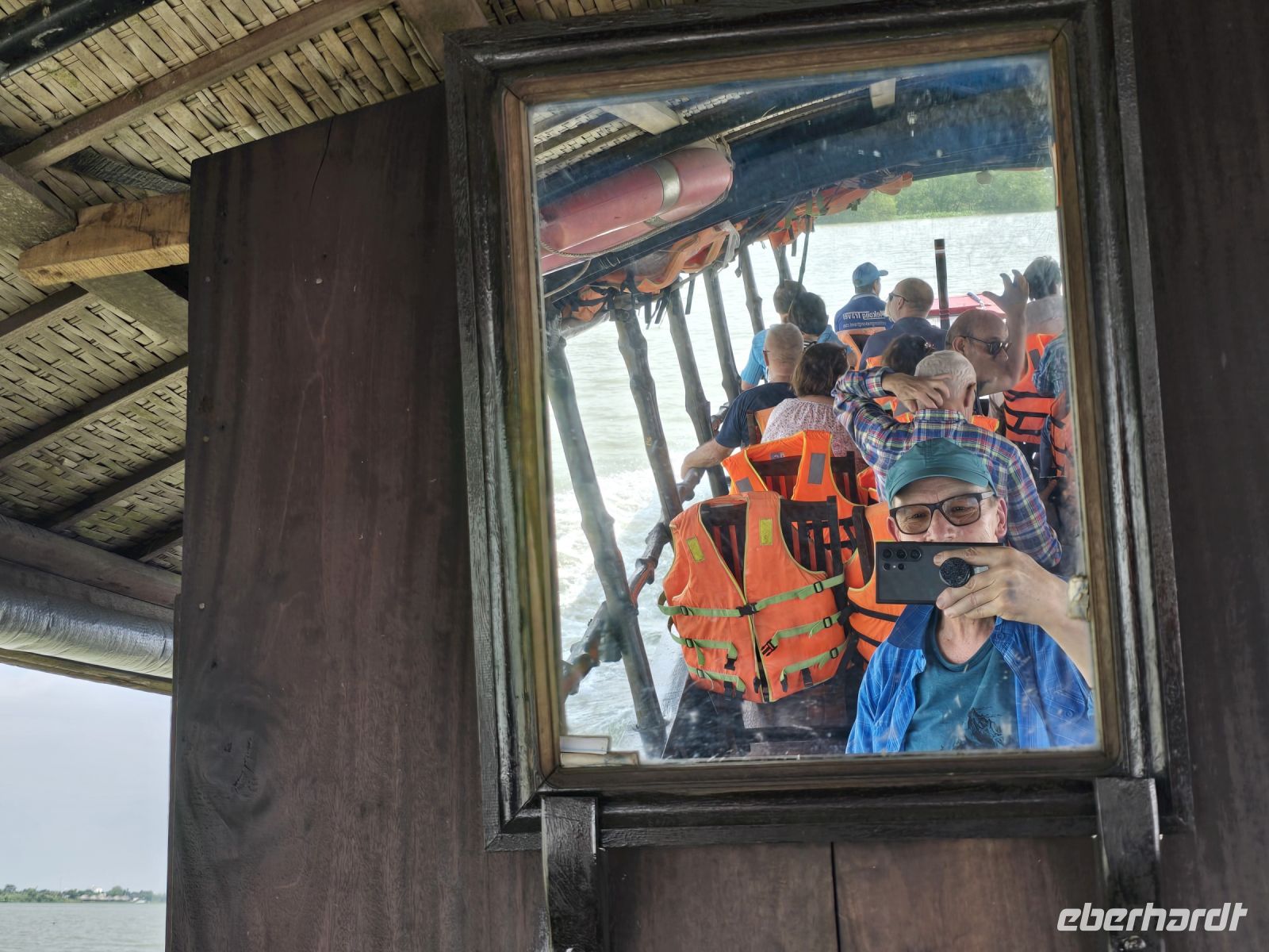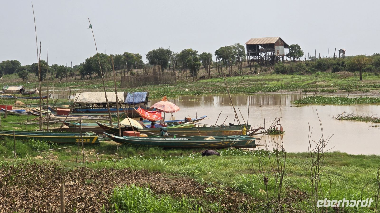 Schlussendlich legen wir wieder an und verlassen trockenen Fußes das Boot, die meisten sind, glaube ich, froh dass alles gut gegangen ist und wir ohne fremde Hilfe wieder an Land gekommen sind. Jetzt steigen wir wieder in unseren komfortablen Bus, fahren raus aus diesem Dorf und mache nochmal eine letzte Mittagspause bevor wir vom Flughafen in Siem Reap unseren Heimflug über Hanoi nach Frankfurt antreten.