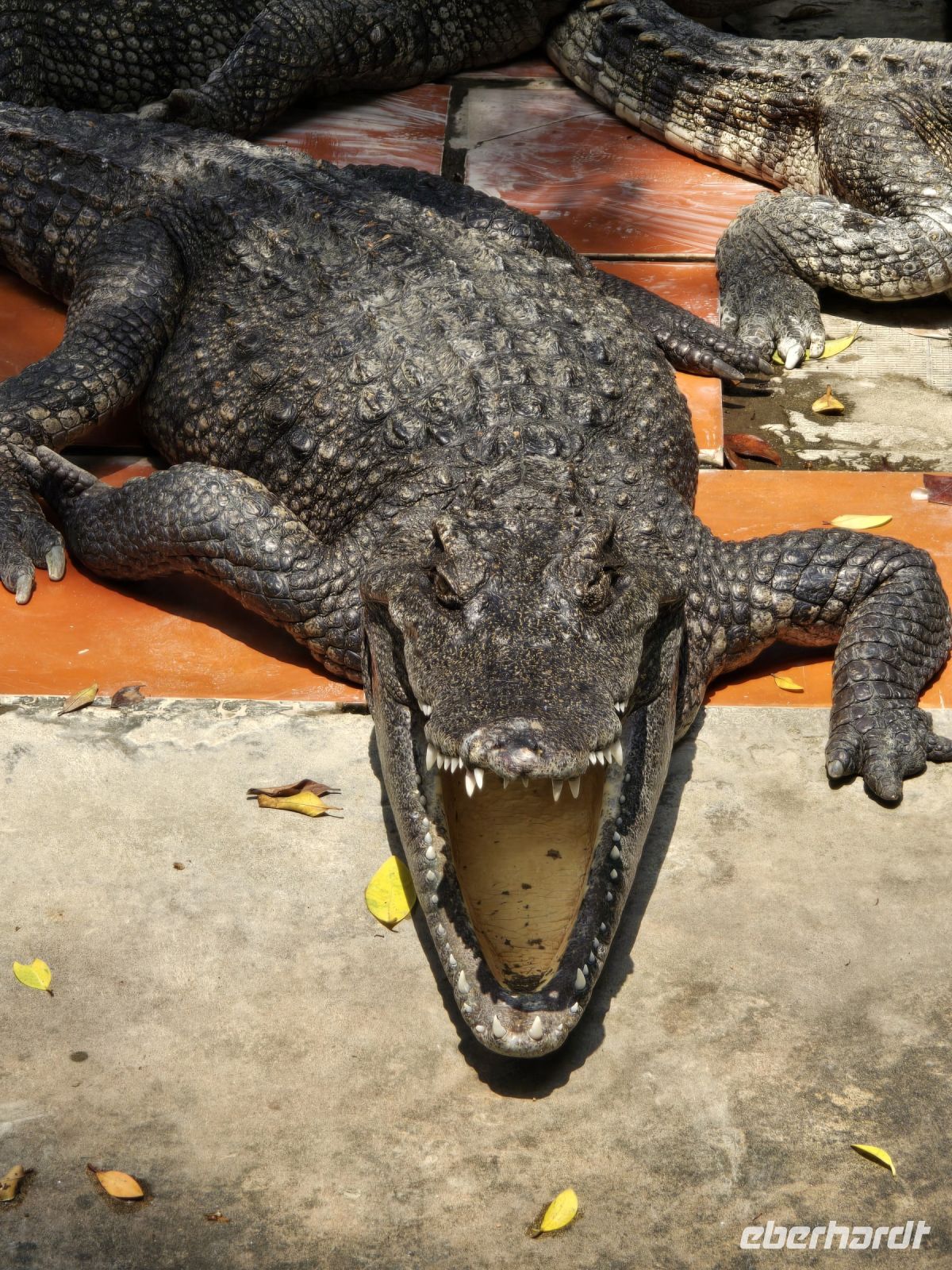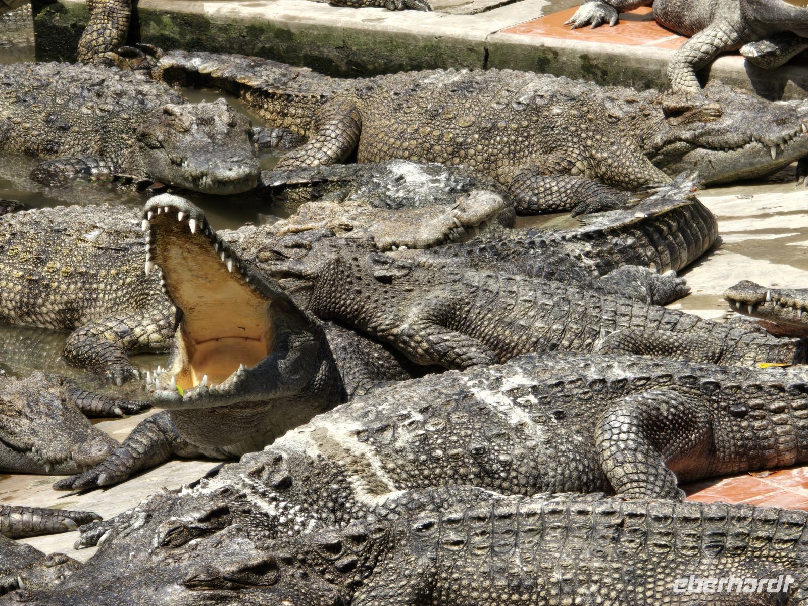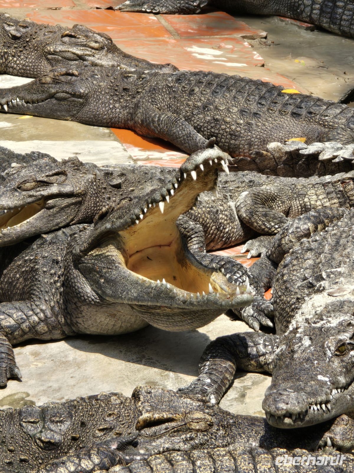 Unser nächstes Ziel ist die Krokodilform, gezüchtete Krokodile in einer großen Anlage, circa 10 Becken und noch viele kleinere Aufzugsbereiche. Hier leben die Krokodile und warten darauf geschlachtet zu werden. Das klingt hart, aber das ist das Geschäft von Krokodilfarmen. Das Fleisch wird zum Essen angeboten und die Haut zum Verarbeiten für Lederartikel aller Art, Schuhe, Handtaschen und vieles mehr. Natürlich gibt es hier auch wieder Schlangenschnaps aber diesmal müssen wir das nicht nochmal probieren. Aber im Restaurant der Krokodilfarm werden Gerichte aus Krokodilfleisch angeboten. Wer möchte kann hier den Geschmack des Fleisches testen, es schmeckt so ähnlich wie Hühnerfleisch.