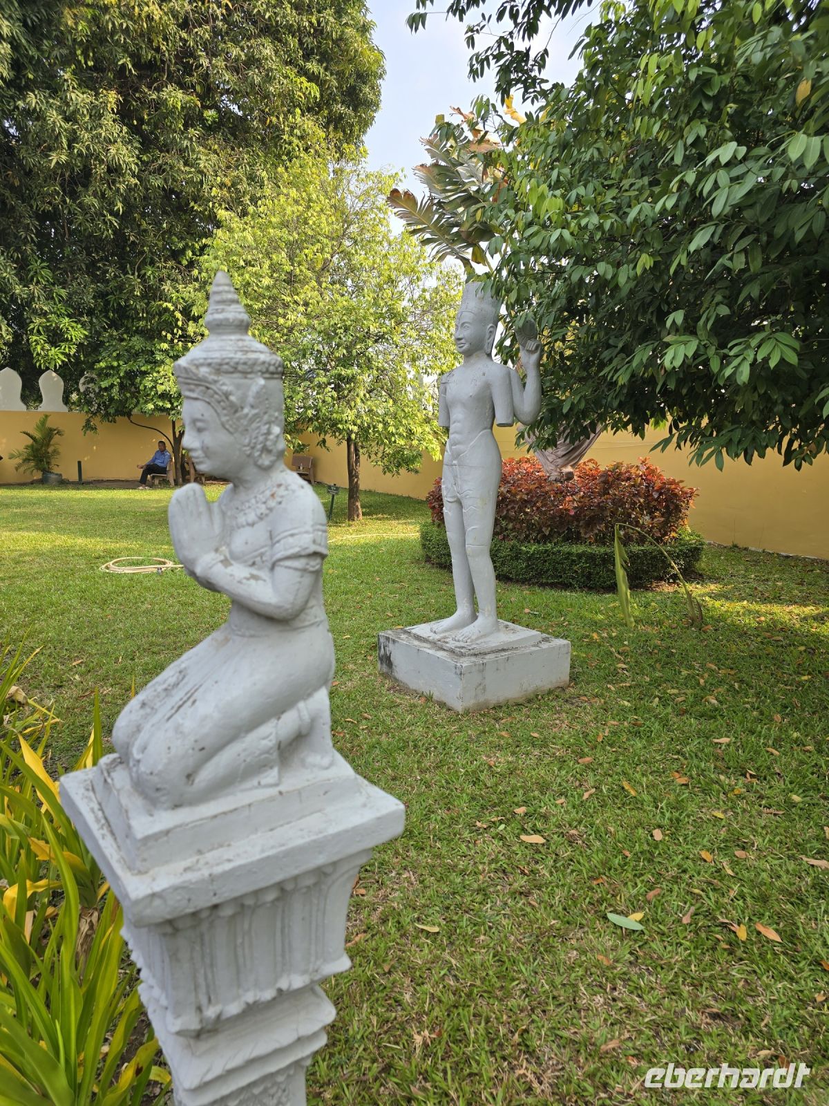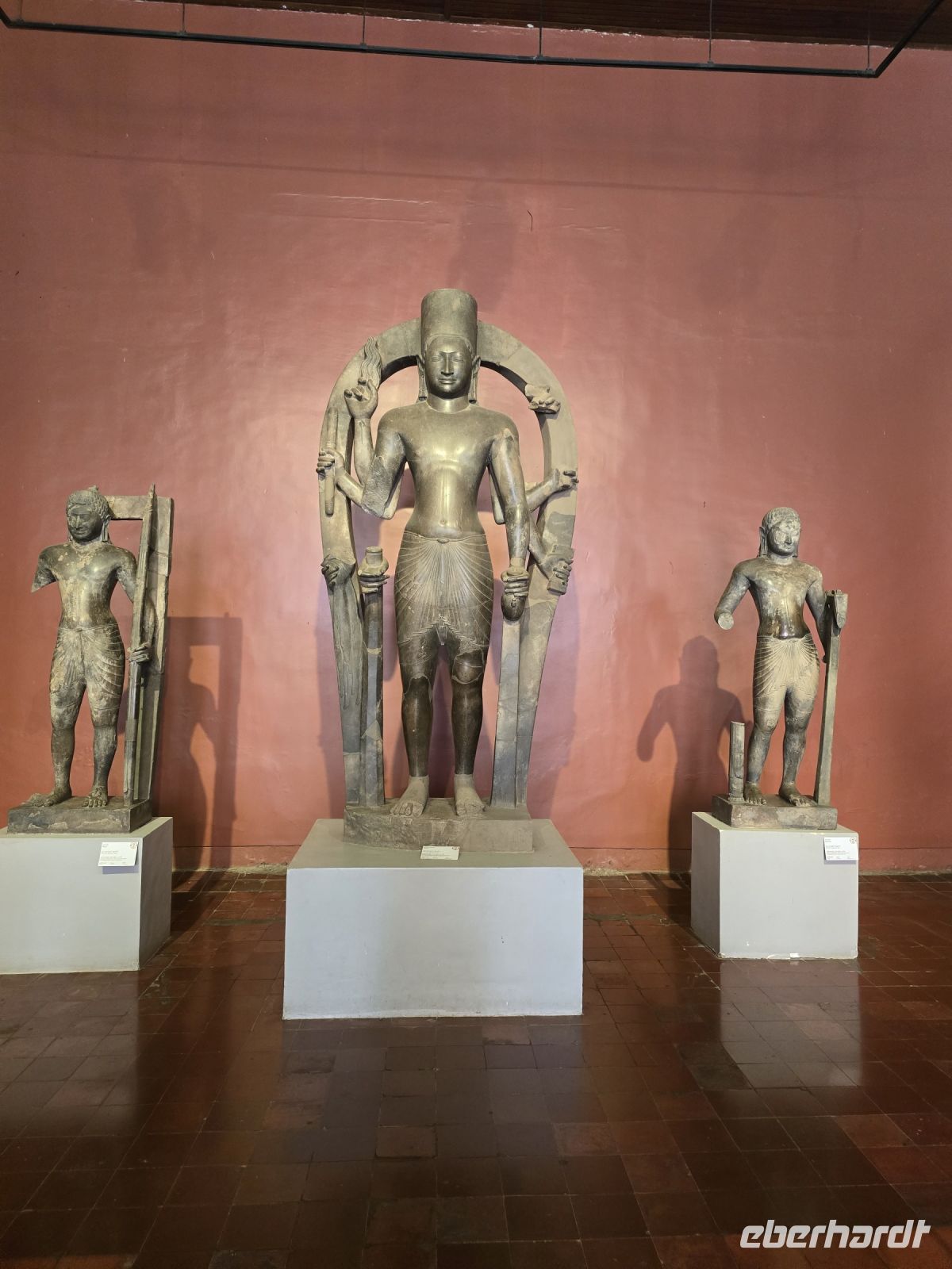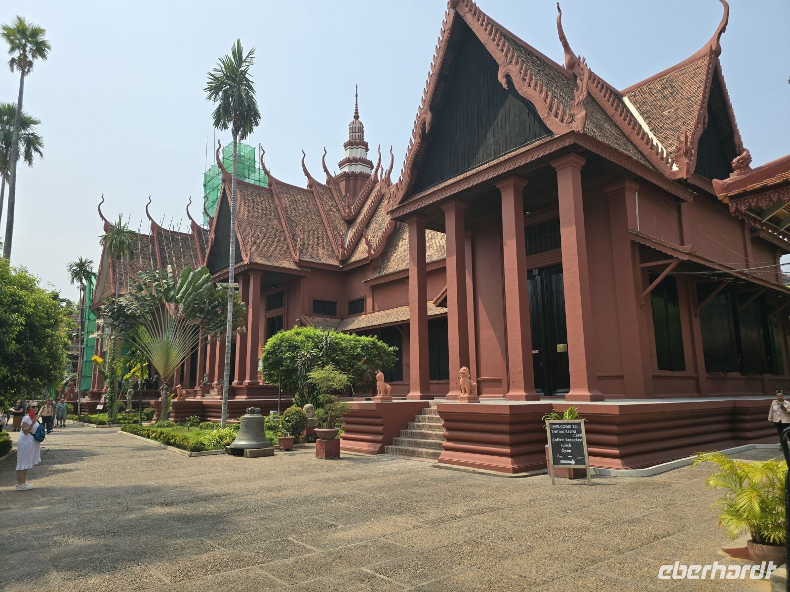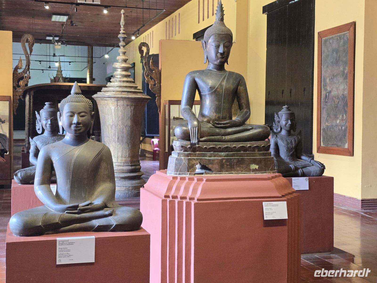 Der nächste Ort für unsere Stadtbesichtigung ist das Nationalmuseum. Hier wurden 40.000 Ausstellungsstücke aus ganz Kambodscha zusammengetragen, viele Teile stammen aus Angkor Wat und werden hier in der Hauptstadt präsentiert. Die große Mehrheit der Kunstwerke verkörpern Themen des buddhistischen Glaubens. Einige Objekte zeigen auch Personen aus dem politischen Leben.