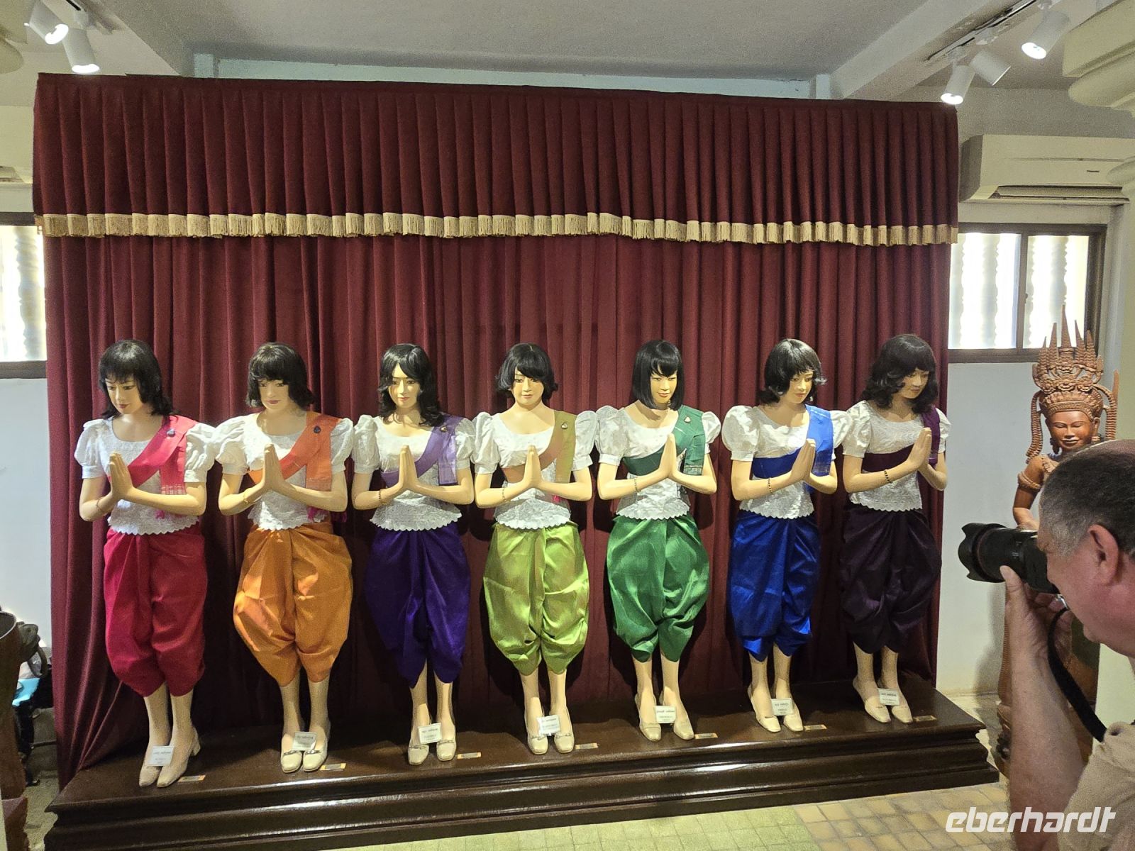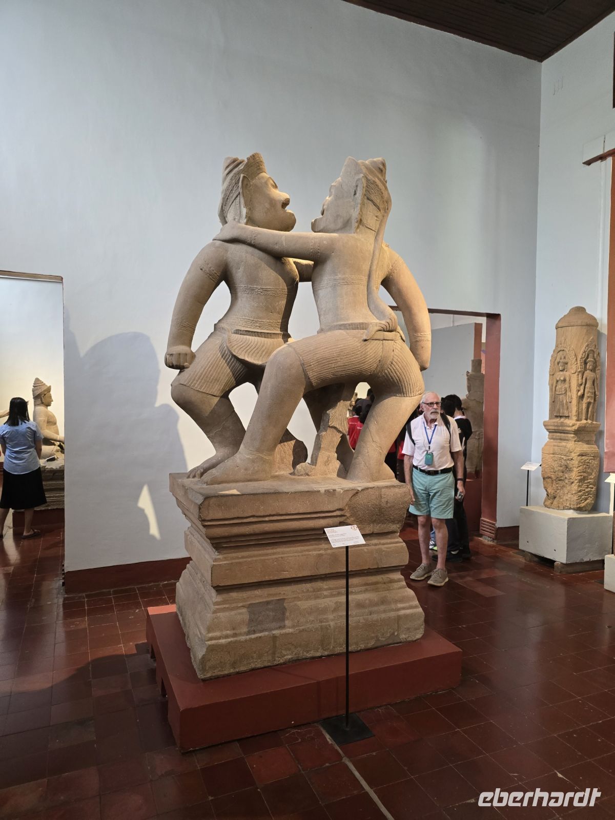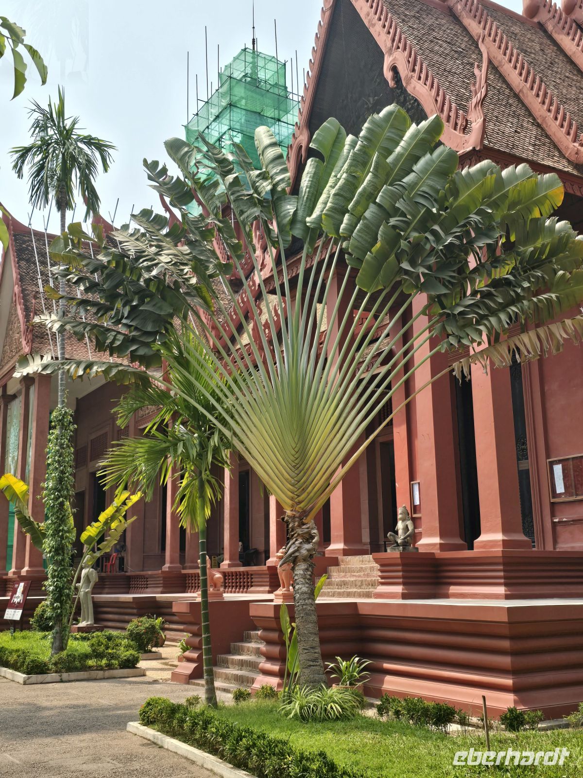 Der nächste Ort für unsere Stadtbesichtigung ist das Nationalmuseum. Hier wurden 40.000 Ausstellungsstücke aus ganz Kambodscha zusammengetragen, viele Teile stammen aus Angkor Wat und werden hier in der Hauptstadt präsentiert. Die große Mehrheit der Kunstwerke verkörpern Themen des buddhistischen Glaubens. Einige Objekte zeigen auch Personen aus dem politischen Leben.
