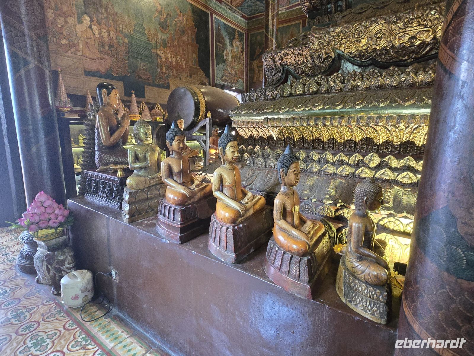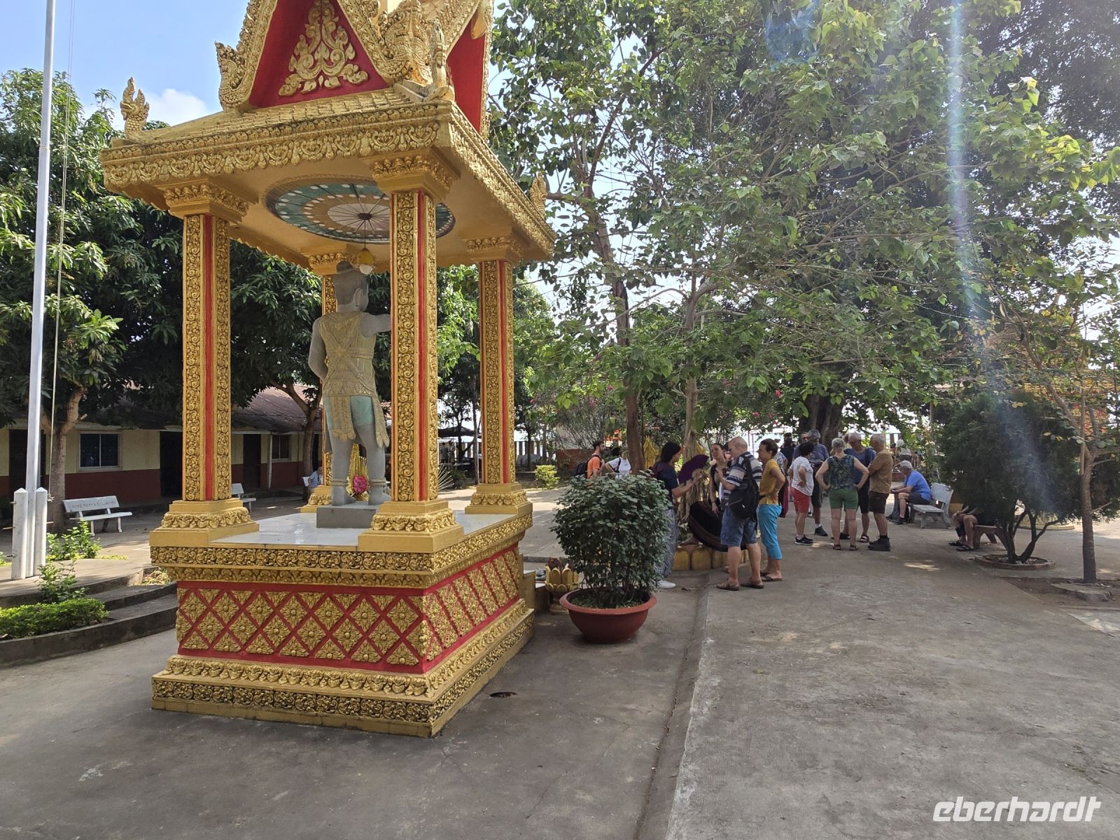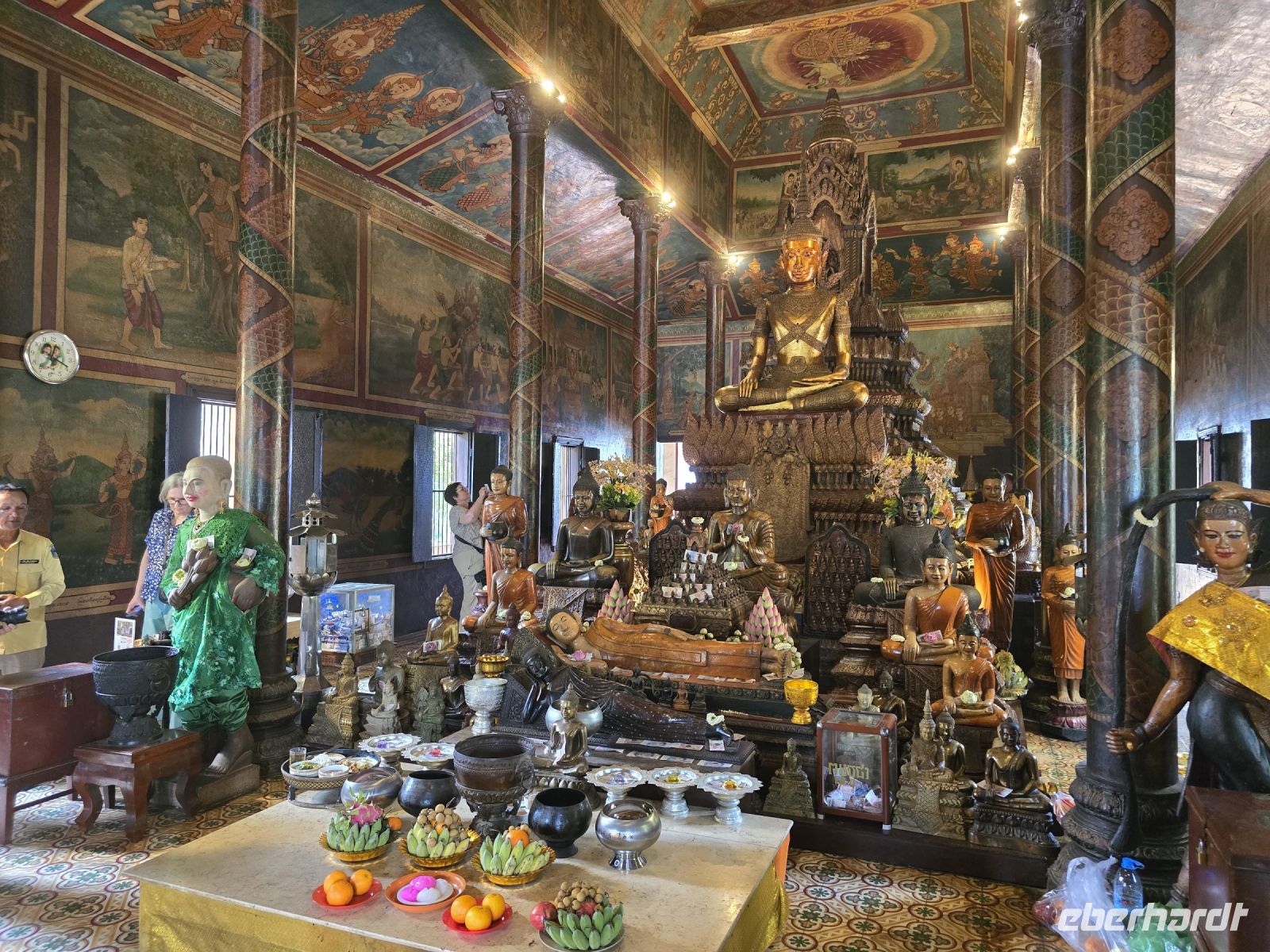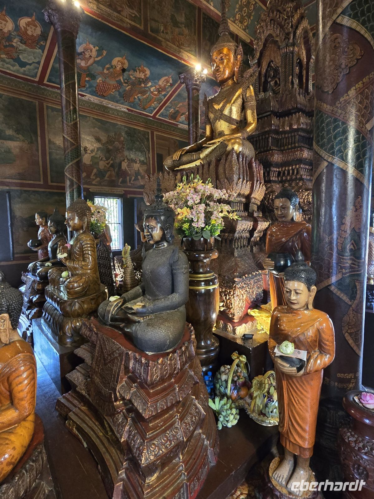 Der nächste Ort für unsere Stadtbesichtigung ist das Nationalmuseum. Hier wurden 40.000 Ausstellungsstücke aus ganz Kambodscha zusammengetragen, viele Teile stammen aus Angkor Wat und werden hier in der Hauptstadt präsentiert. Die große Mehrheit der Kunstwerke verkörpern Themen des buddhistischen Glaubens. Einige Objekte zeigen auch Personen aus dem politischen Leben.
