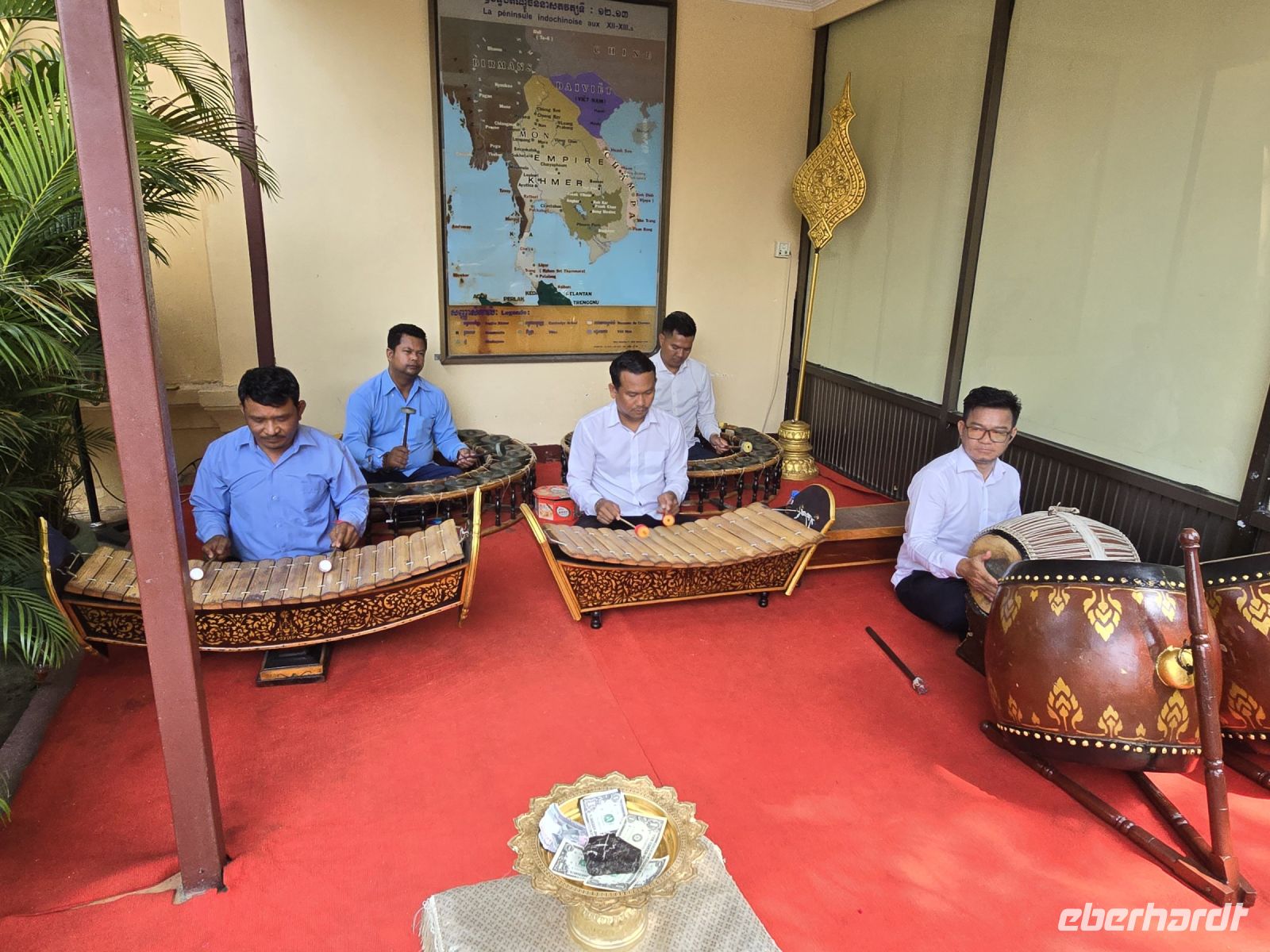 Unser erstes kambodschanisches Abendessen genießen wir gemeinsam, und in Begleitung von Live Musik