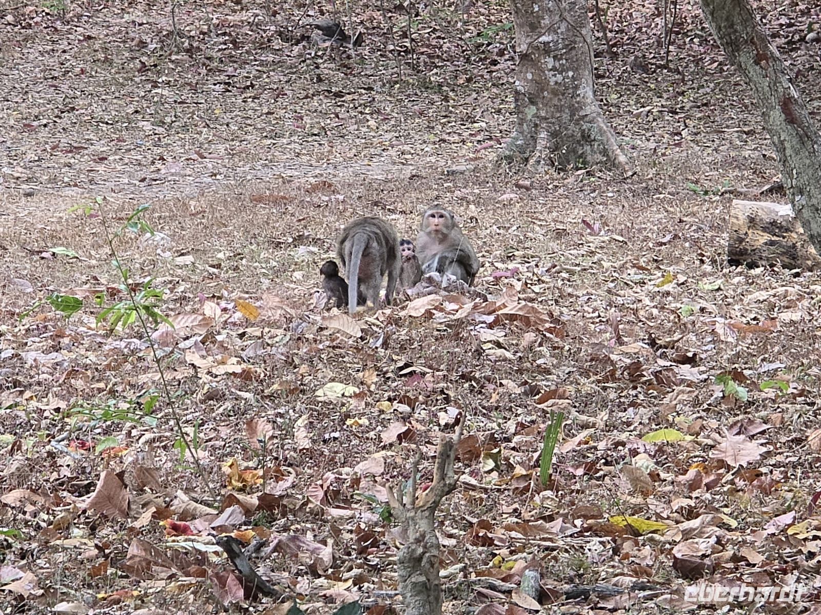 Am frühen Morgen um 04:15 Uhr beginnt unser Tag heute. Wir schlüpfen aus den Betten treffen uns an der Lobby und fahren Zoo der Tempelanlage. Wir wollen den Sonnenaufgang hinter Angkor Wat beobachten. Erst müssen wir noch die Tickets kaufen, dafür wird jeder Einzelne von uns fotografiert und sein Bild wird auf den Ausweis projiziert. Jede Eintritt Karte hat einen Preis von $62 und gilt für 3 Tage. Es ist immer noch komplett dunkel als wir mit den Formalien fertig sind und nun mit einem kleineren Tempel Bus bis vor die Anlage von Angkor Wat fahren. Im Dunkeln nur mit Beleuchtung unserer Smartphones, suchen wir uns den Weg zu dem See der direkt vor den 5 Türmen des Tempels liegt. Wir stehen vor dem See dahinter, sehen den Tempel mit seinen 5 Türmen und der Plan ist dahinter den Sonnenaufgang zu erleben. Wie erwartet, noch einige Zeit dann beginnt die Dämmerung. Alle unsere Fotografen erhaschen die ersten Rotfärbungen und es werden sicher Millionen von Bildern in nur kurzer Zeit geschossen. Die Spiegelung im See ist gut zu erkennen der See am frühen Morgen ist noch ganz ruhig und hat ein glattes Spiegelbild. Die Auswertung der Bilder muss sicher noch warten bis zur Heimkehr, wo dann in aller Ruhe 80% gelöscht wird. Nachdem der Tempel nun hell erleuchtet ist, gehen wir am Rande eines Waldes zurück zu unserem Bus, kommen bei einer Affenfamilie vorbei die sich im sichern Abstand zu uns aufhält. Wir fahren mit dem Bus zurück in das Hotel, genießen das Frühstück, machen uns noch ein bisschen frisch und brechen dann schon um 08:30 Uhr wieder für den nächsten Besuch in Angkor Wat auf. Bei Tageslicht steigen wir nun die langen steilen Treppen empor, auf die Galerie und in die Tempelanlage hinein und erkennen die Weitläufigkeit der Innenräume, Schwimmbecken sind zu erkennen unzählige schöne Torbögen und alles gebaut mit gehauenen Steinen, ohne Mörtel wurden sie zusammengefügt und stehen hier nun seit über 1000 Jahre vor uns.