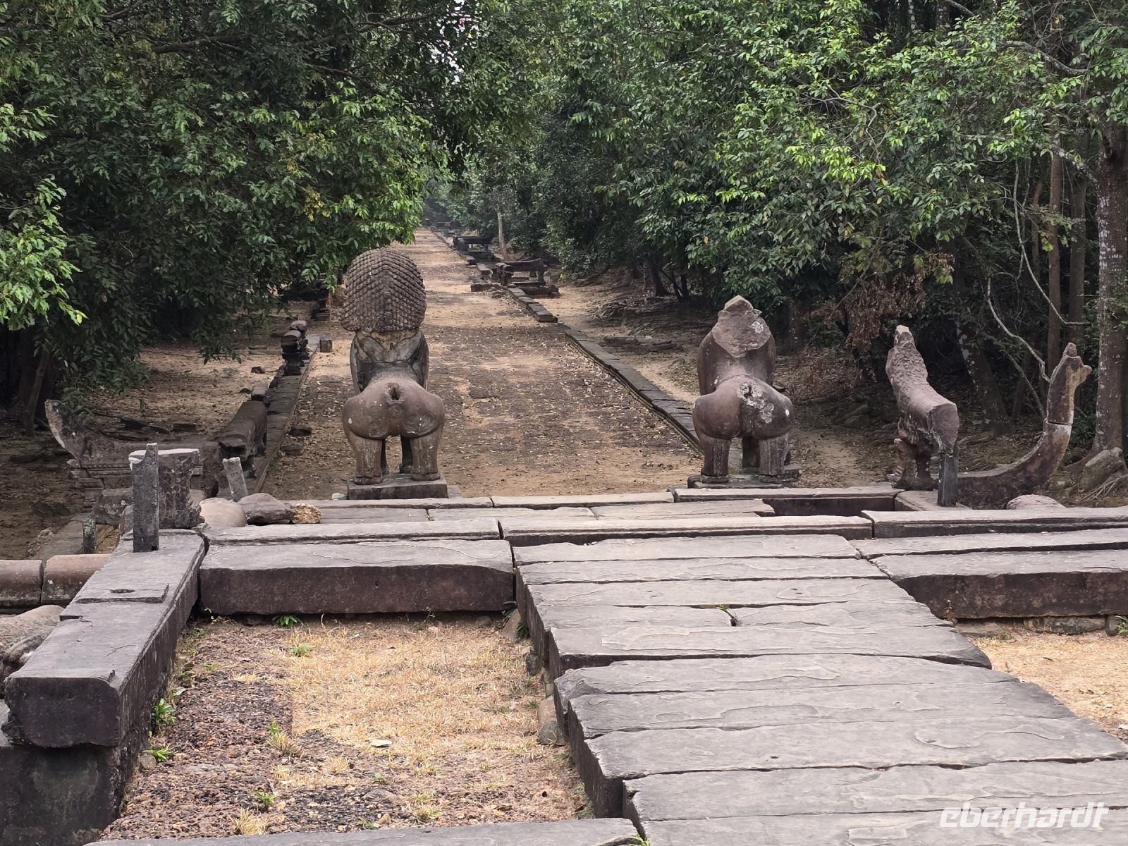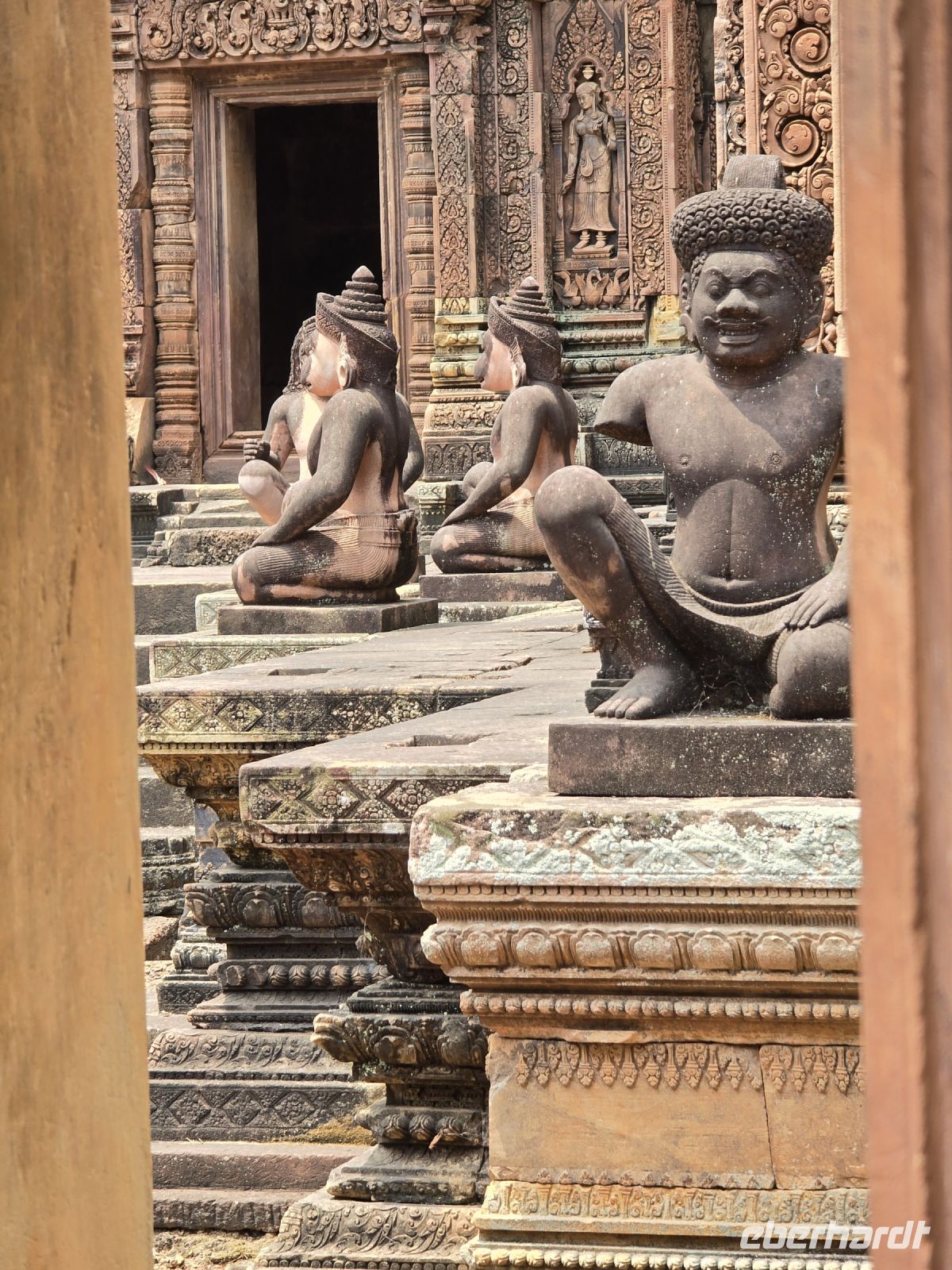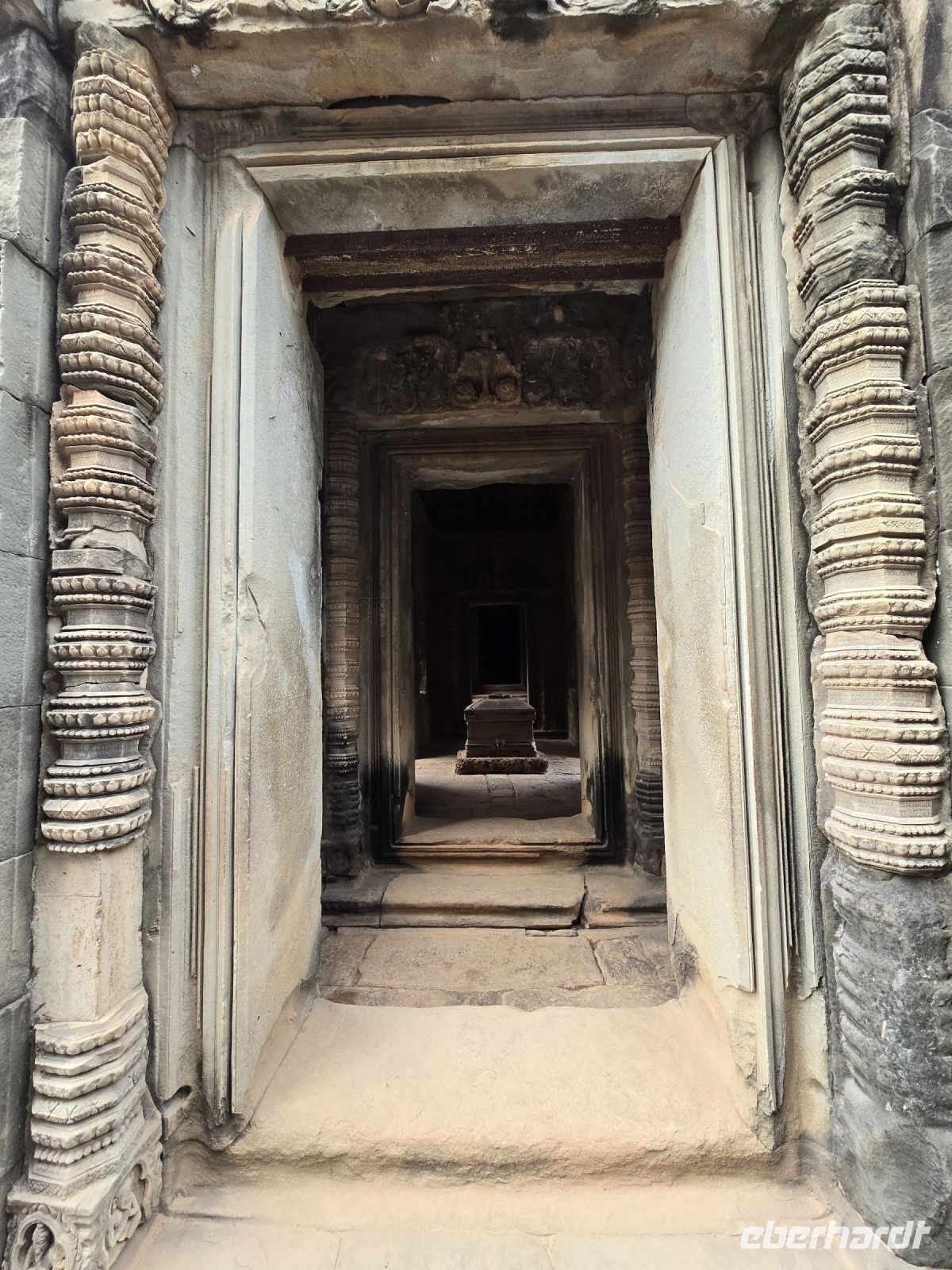 Der erste Besuch gilt dem Tempel Banteay Samre, der im 12. Jahrhundert erbaut wurde. Das ist ein verhältnismäßig kleiner Tempel der sich gerade in der Restauration befindet. Die Blicke durch in sich wiederholende Torbögen, bieten einen besonderen Reiz, ganz besonders wenn am Ende der Torbögen weit entfernt eine Truhe platziert ist, die ein Geheimnis vermuten lässt. Wenn man sich etwas Zeit lässt und nicht durch die Größe der Anlage gehetzt wird, dann findet man ständig neue Blicke und Fotomotive.