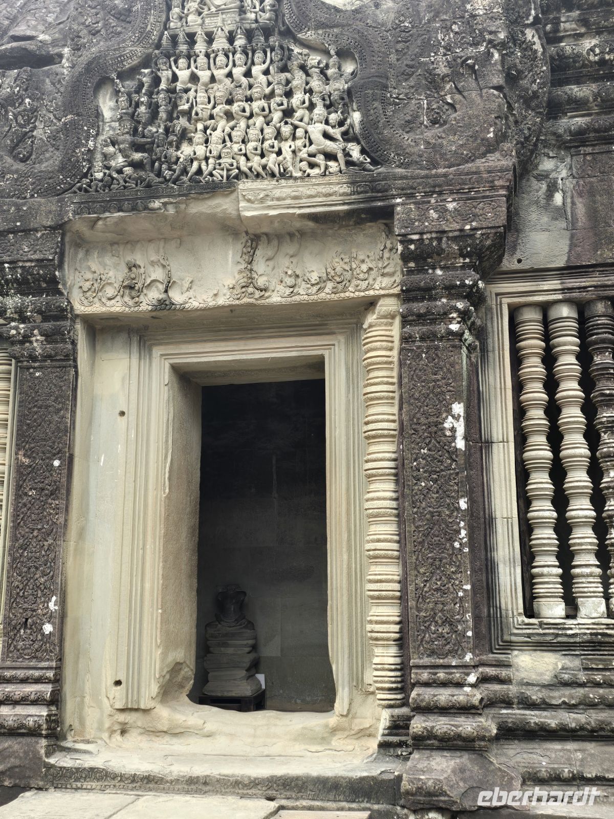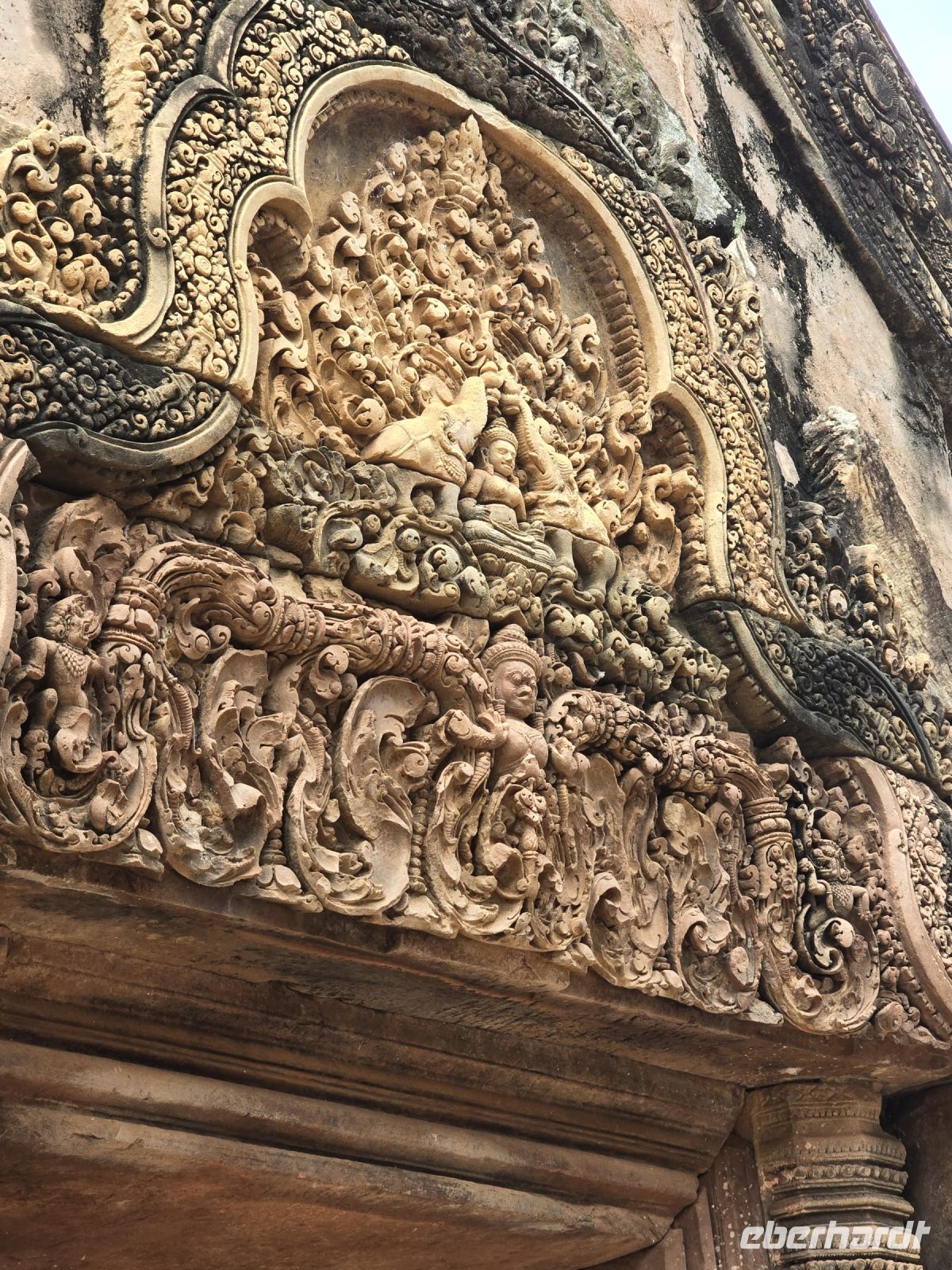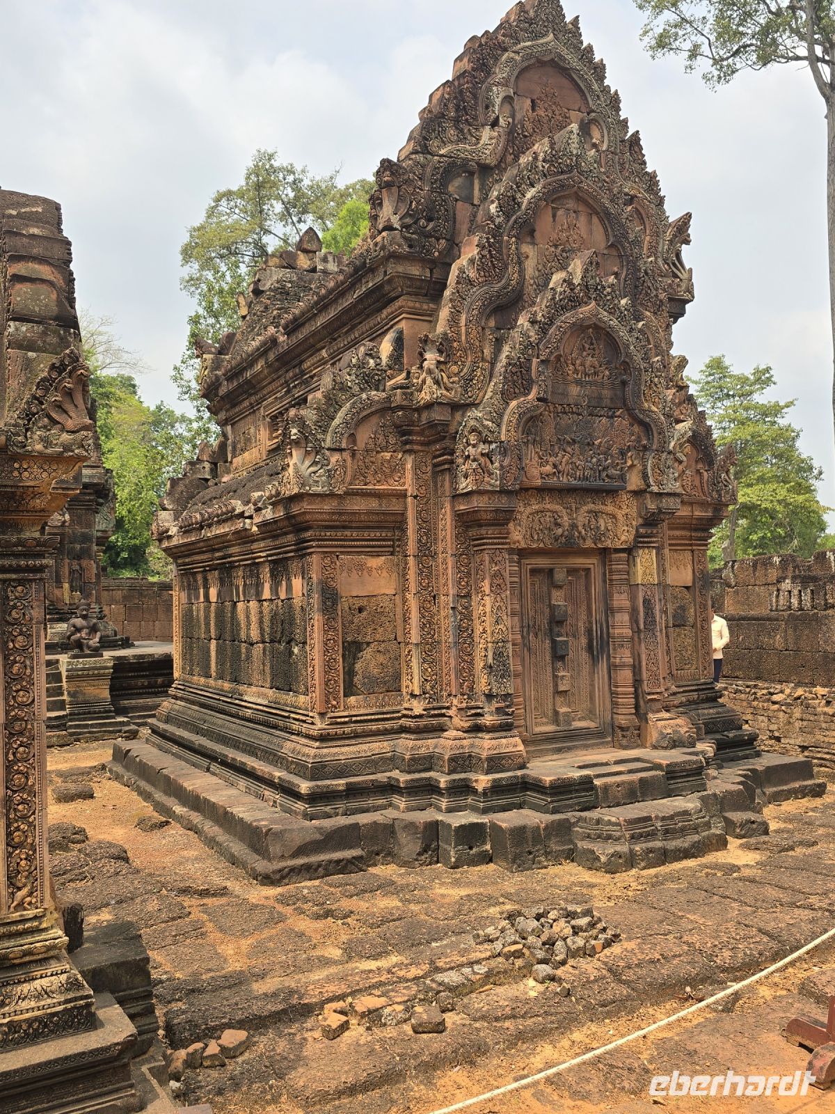Der erste Besuch gilt dem Tempel Banteay Samre, der im 12. Jahrhundert erbaut wurde. Das ist ein verhältnismäßig kleiner Tempel der sich gerade in der Restauration befindet. Die Blicke durch in sich wiederholende Torbögen, bieten einen besonderen Reiz, ganz besonders wenn am Ende der Torbögen weit entfernt eine Truhe platziert ist, die ein Geheimnis vermuten lässt. Wenn man sich etwas Zeit lässt und nicht durch die Größe der Anlage gehetzt wird, dann findet man ständig neue Blicke und Fotomotive.