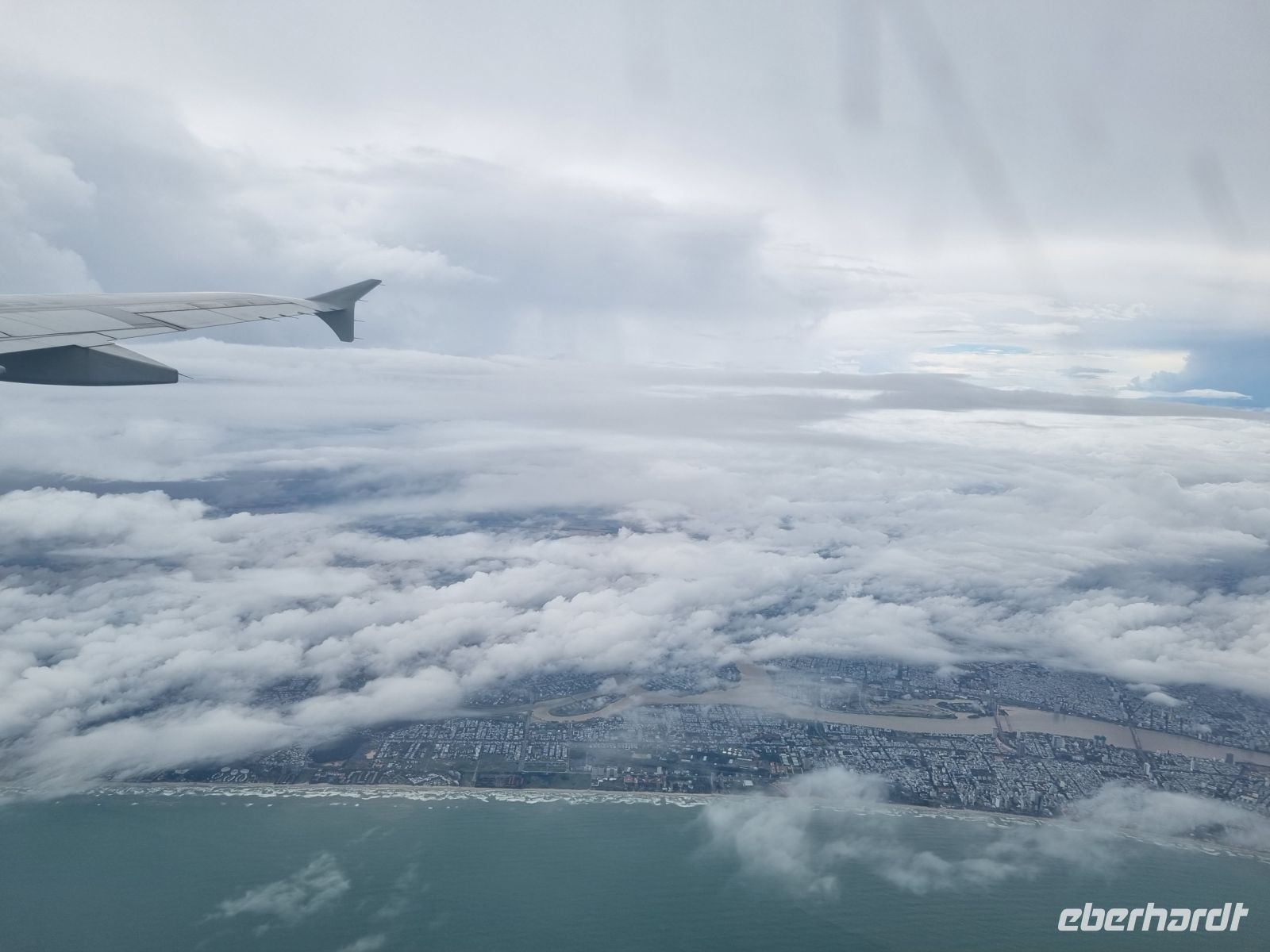 Am Mittag starteten wir unseren Nonstop-Flug ab Frankfurt in Richtung Hanoi. Durch die fünfstündige Zeitverschiebung flogen wir direkt in die Nacht hinein. Der Service an Bord von Vietnam Airlines war angenehm und zuvorkommend – eine entspannte Einstimmung auf das bevorstehende Südostasien-Abenteuer.
