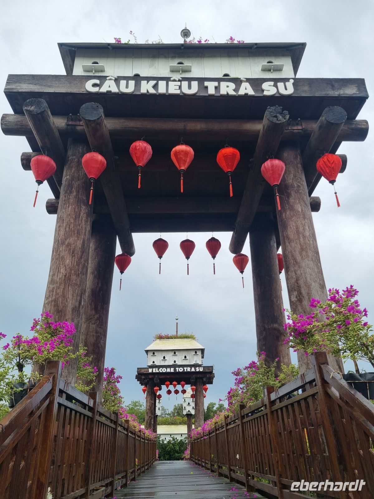 Ein erster Blick aus dem Hotelfenster versprach leider nichts Gutes – dichte Wolken hingen am Himmel, und der Regen prasselte unaufhörlich nieder. Dennoch ließen wir uns die Stimmung nicht verderben. Mit dem Bus machten wir uns auf den Weg zu unserem ersten Ziel: einer Bootsfahrt auf den berühmten sogenannten „Bambus-Nussschalen“. Diese traditionellen, runden Boote, die aus eng verflochtenem Bambus gefertigt werden, gehören zum typischen Bild der vietnamesischen Küstenregion. Ursprünglich wurden sie von Fischern genutzt, um Netze auszulegen oder den Fang einzuholen. Ihre besondere Form – klein, rund und erstaunlich stabil – ermöglicht es, selbst in flachen oder überschwemmten Gewässern sicher zu manövrieren. Heute dienen die „Nussschalen“ oft auch als touristische Attraktion und bieten Besuchern die Gelegenheit, die einzigartige Handwerkskunst Vietnams hautnah zu erleben. Mit Regenschirmen bewaffnet, stiegen wir in die wackeligen Boote und wagten uns auf das Wasser. Trotz des anhaltenden Regens und der dicken Tropfen, die von unseren Schirmen prasselten, wurde die Fahrt zu einem kleinen Abenteuer. Die Bootsfrauen und -männer steuerten ihre Nussschalen mit beeindruckender Geschicklichkeit durch die Wasserstraßen – ein faszinierendes Schauspiel, das uns die Kultur und den Alltag der Einheimischen näherbrachte. Im Anschluss ging es mit dem Bus weiter in die Altstadt von Hoi An. Dort besichtigten wir unter anderem eine Lampion-Werkstatt, wo wir mehr über die kunstvolle Herstellung der farbenprächtigen Lampen erfuhren, die das Stadtbild prägen. Auch eine Schneiderei mit angeschlossener Seidenproduktion stand auf dem Programm – ein spannender Einblick in die traditionelle Handwerkskunst, für die Hoi An so bekannt ist. Beim Bummel durch den Markt der Stadt fiel uns jedoch schnell auf, dass viele Straßen bereits stark überflutet waren. An manchen Stellen war ein Durchkommen kaum noch möglich, und leider mussten wir erfahren, dass auch die berühmte Versammlungshalle aufgrund der extremen Witterungsbedingungen gesperrt war. Glücklicherweise konnten wir zumindest noch einen kurzen Blick auf die Japanische Brücke werfen, bevor auch dieser Weg unpassierbar wurde. Angesichts der Wetterlage entschieden wir uns, bereits am frühen Nachmittag ins Hotel zurückzukehren – Sicherheit geht schließlich vor. Auch das geplante Abendessen in der Altstadt wurde kurzerhand ins Hotel verlegt. Dort nutzten wir die Gelegenheit, die zahlreichen Annehmlichkeiten zu genießen: einige ließen sich im hervorragenden Spa bei einer Massage verwöhnen, andere gönnten sich einen Cocktail in der Bar. Trotz des Dauerregens machten wir das Beste aus der Situation – denn ändern konnten wir sie ohnehin nicht.
