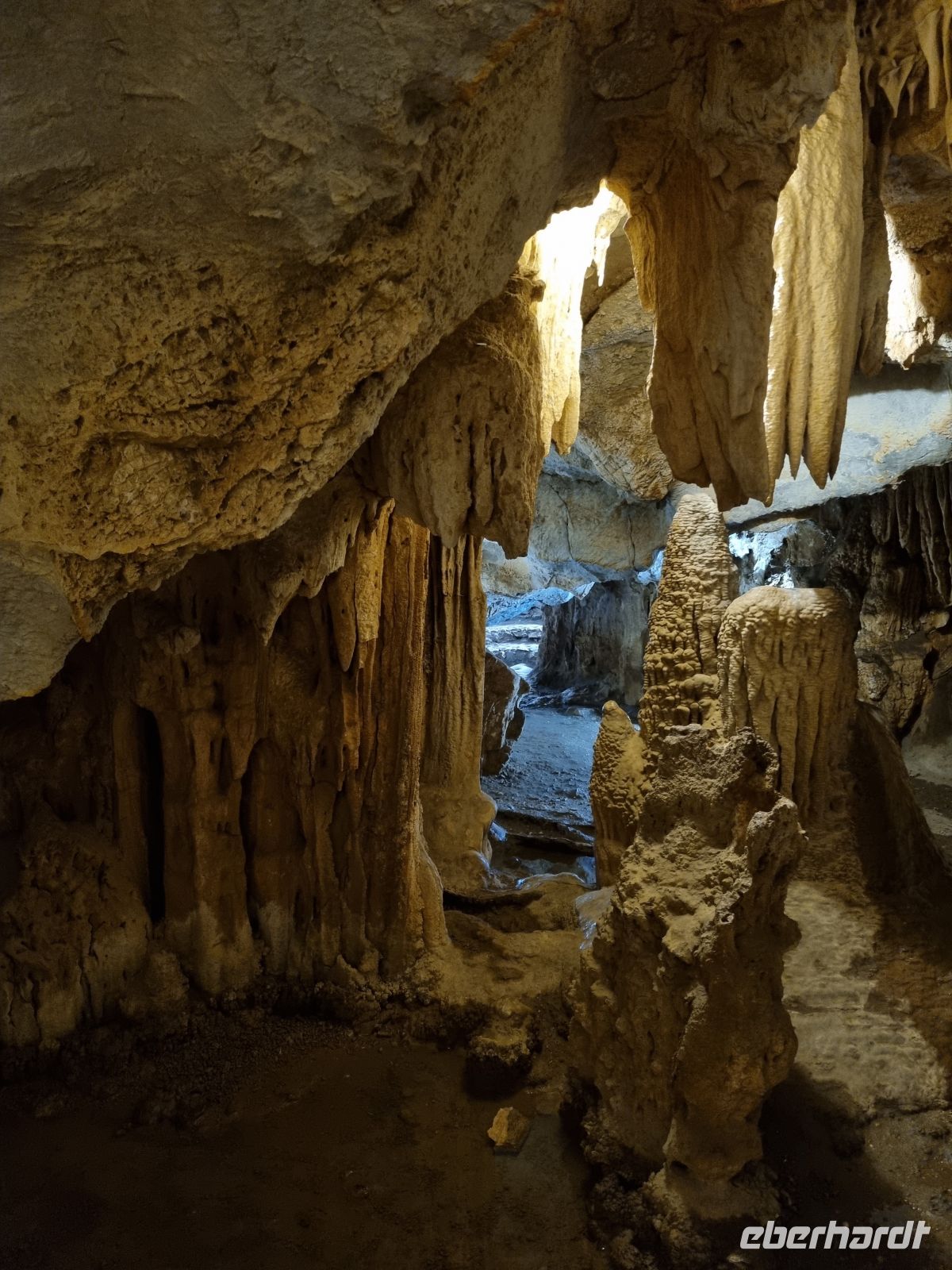 Ein Morgen voller Ruhe und Eindrücke... Der Tag begann harmonisch mit einer Runde Tai Chi an Deck – für alle, die Lust hatten, den Morgen in Bewegung und Gelassenheit zu begrüßen. Die sanften Übungen im Licht der aufgehenden Sonne schufen eine ruhige, fast meditative Atmosphäre, die perfekt zum Start in den Tag passte. Nach einem kleinen Frühstück stand der Ausflug zur sogenannten „Labyrinthhöhle“ auf dem Programm. Schon der Weg dorthin versprach Abenteuer, und in der Höhle selbst erwartete uns eine faszinierende Welt aus Stalaktiten und Stalagmiten, deren Formen und Strukturen die Fantasie anregten. Kein Wunder, dass diese Höhle in Zusammenhang mit einem King-Kong-Film gebracht wird – die Szenerie wirkte tatsächlich filmreif. Zurück an Bord ließen wir uns beim ausgiebigen Frühstücksbrunch verwöhnen und genossen noch einmal die Annehmlichkeiten des komfortablen Luxusschiffes. Bei köstlichem Essen und netter Gesellschaft fiel der Abschied von der herzlichen Crew besonders schwer. Zurück an Land wurden wir bereits von unserem örtlichen Reiseleiter Lang erwartet. Nun stand uns eine rund dreistündige Busfahrt bevor, selbstverständlich mit einigen Pausen, um die Beine zu vertreten und ggfs. Souvenirs zu kaufen. Am Nachmittag erreichten wir schließlich Ninh Binh und dort warteten bereits kleine Ruderboote aus Bambus auf uns. Eine etwa einstündige, entspannte Fahrt führte uns durch die sogenannte „Trockene“
