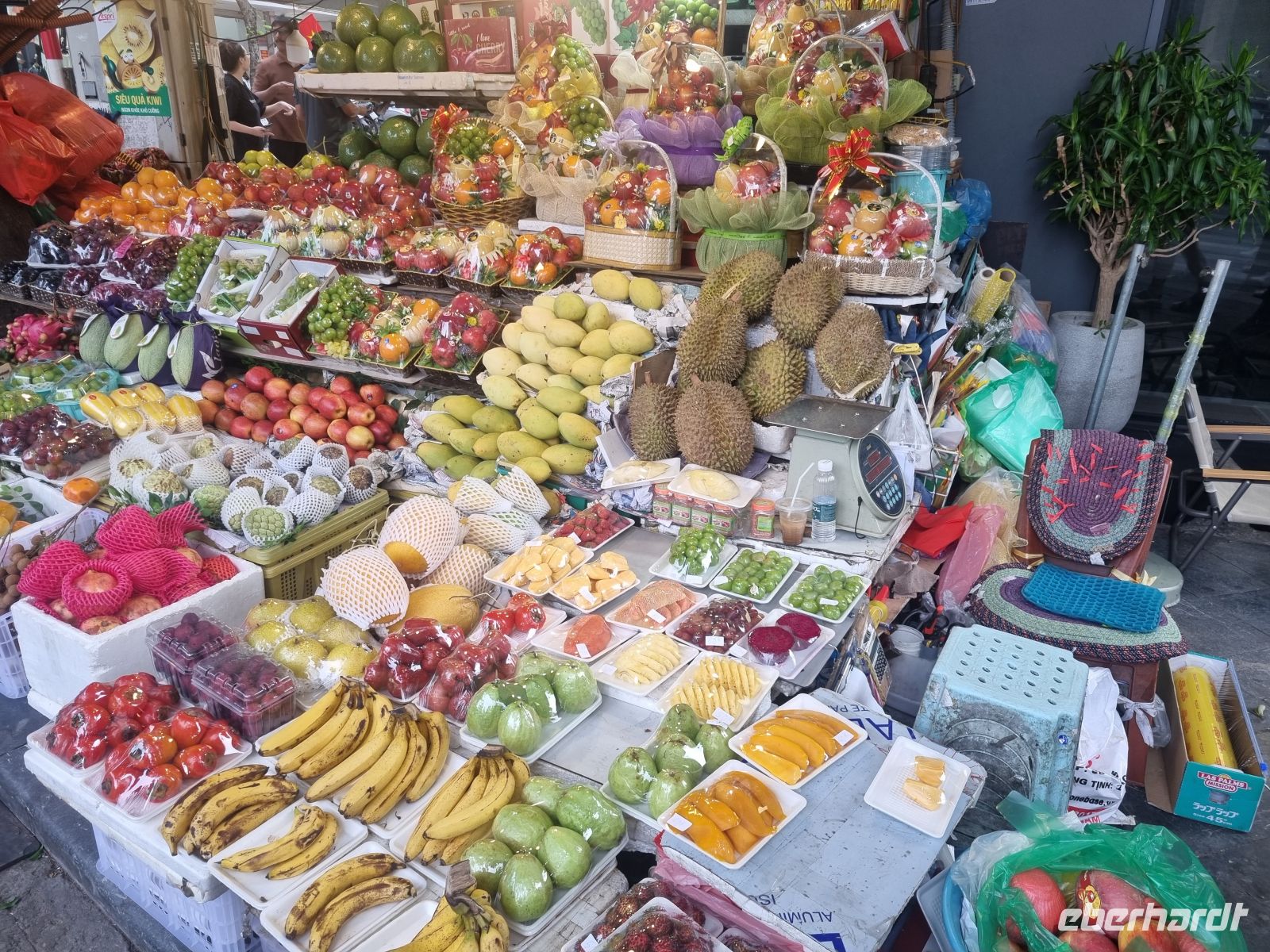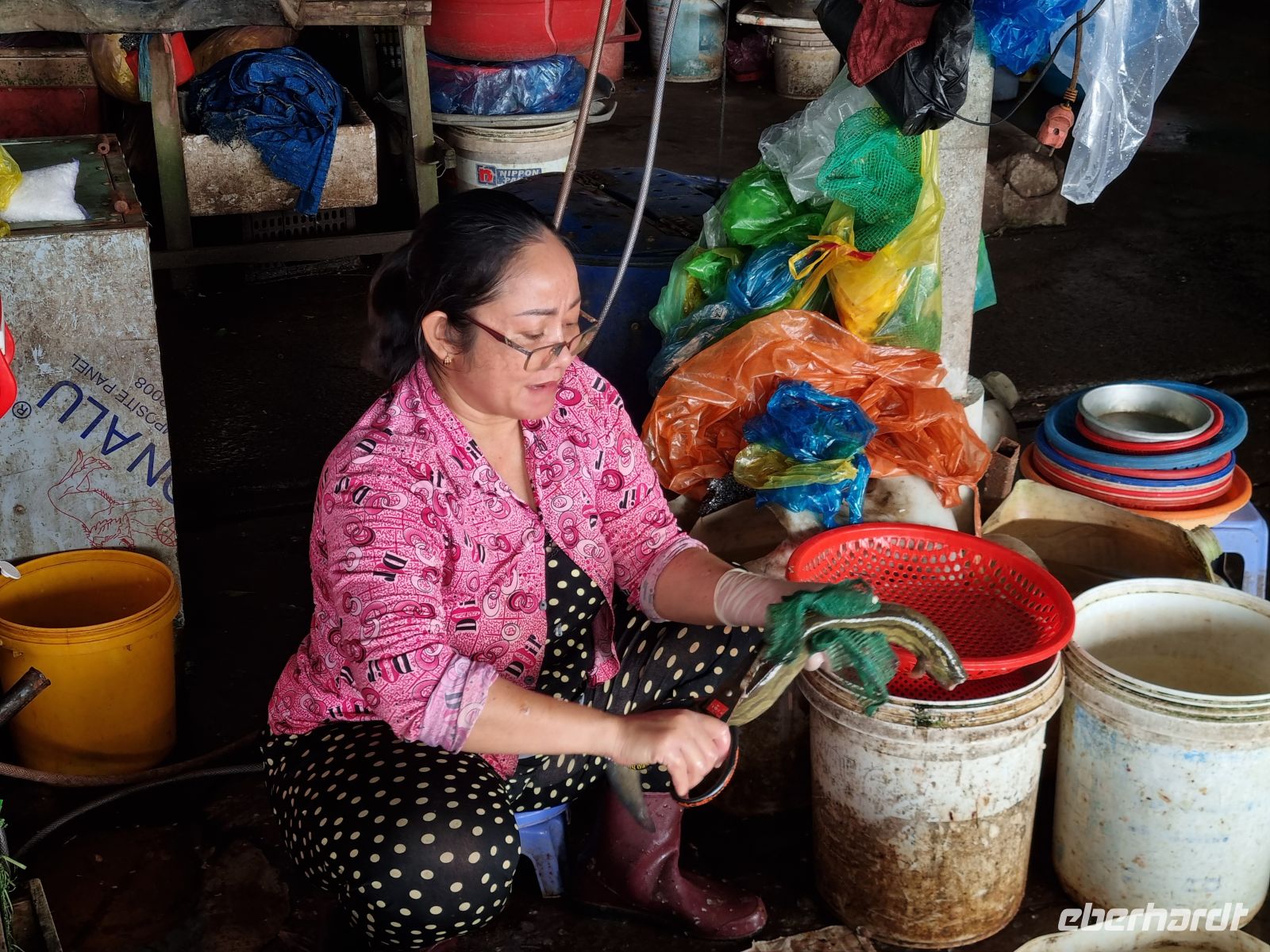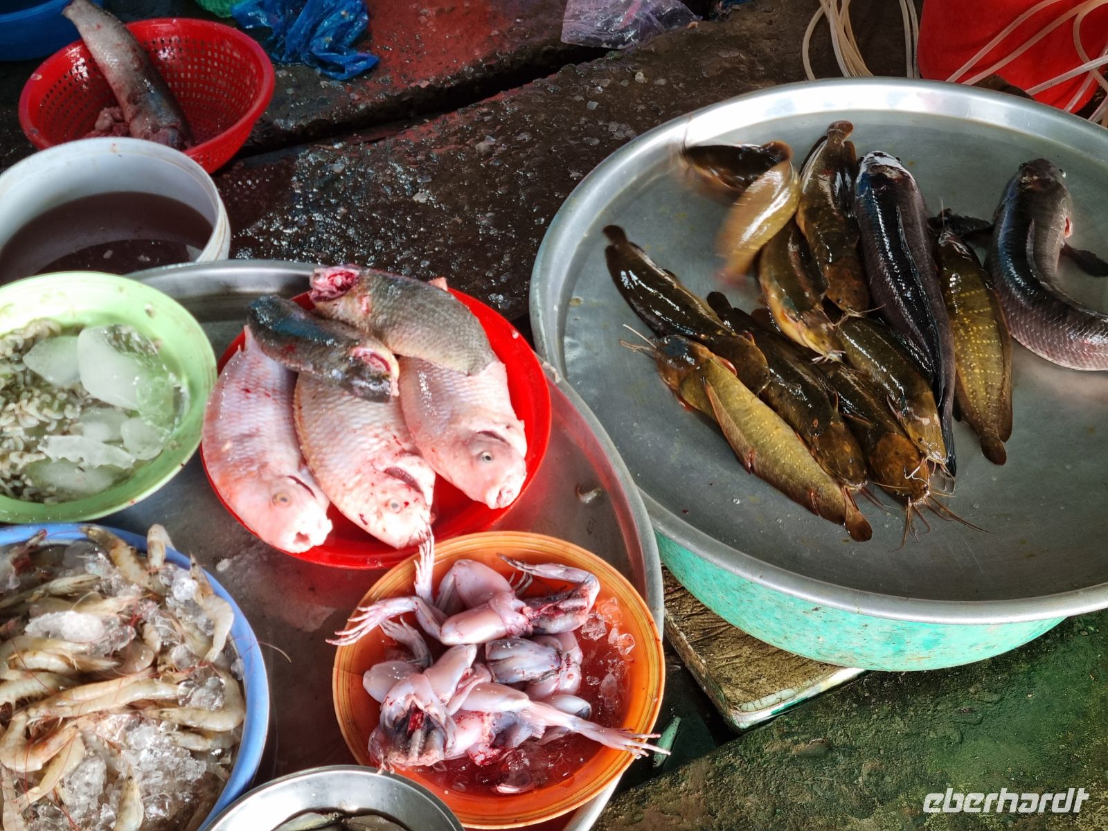 Nach diesem wunderbaren Erlebnis kehrten wir zum Mittagessen in ein uriges Lokal ein, um den berühmten Elefantenohrfisch zu probieren. Der Name kommt von den großen, flachen Flossen, die an Elefantenohren erinnern. Der Fisch wird knusprig im Ganzen frittiert und anschließend am Tisch filetiert – ein echtes Geschmackserlebnis! Während des Essens setzte ein heftiger Regenguss ein, begleitet von Donner und Blitz – für uns mittlerweile nichts Neues, denn das tropische Wetter hatte uns auf dieser Reise schon mehrfach überrascht. Am Abend erreichten wir schließlich unser Hotel in Can Tho. Nach dem Einchecken unternahmen wir noch einen kleinen Bummel über den Nachtmarkt, wo wir zwischen bunten Ständen, exotischen Früchten und duftenden Garküchen den Tag gemütlich ausklingen ließen. Ein langer, erlebnisreicher Tag ging damit zu Ende – voller Eindrücke, Farben und Aromen, die uns sicher noch lange in Erinnerung bleiben werden.