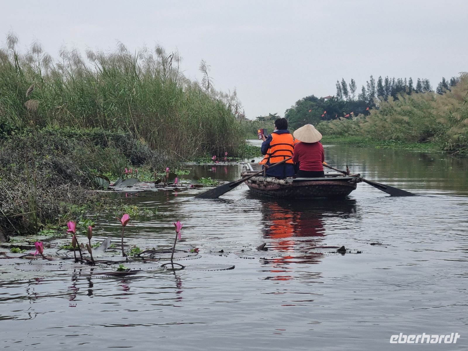 Halong-Bucht – das landschaftliche Gegenstück zur bekannten Halong-Bucht. Zwischen steil aufragenden Kalkfelsen, grünen Reisfeldern und stillen Wasserwegen genossen wir die friedliche Atmosphäre und die beeindruckende Naturkulisse. Anschließend bezogen wir unsere Zimmer im wunderschönen
