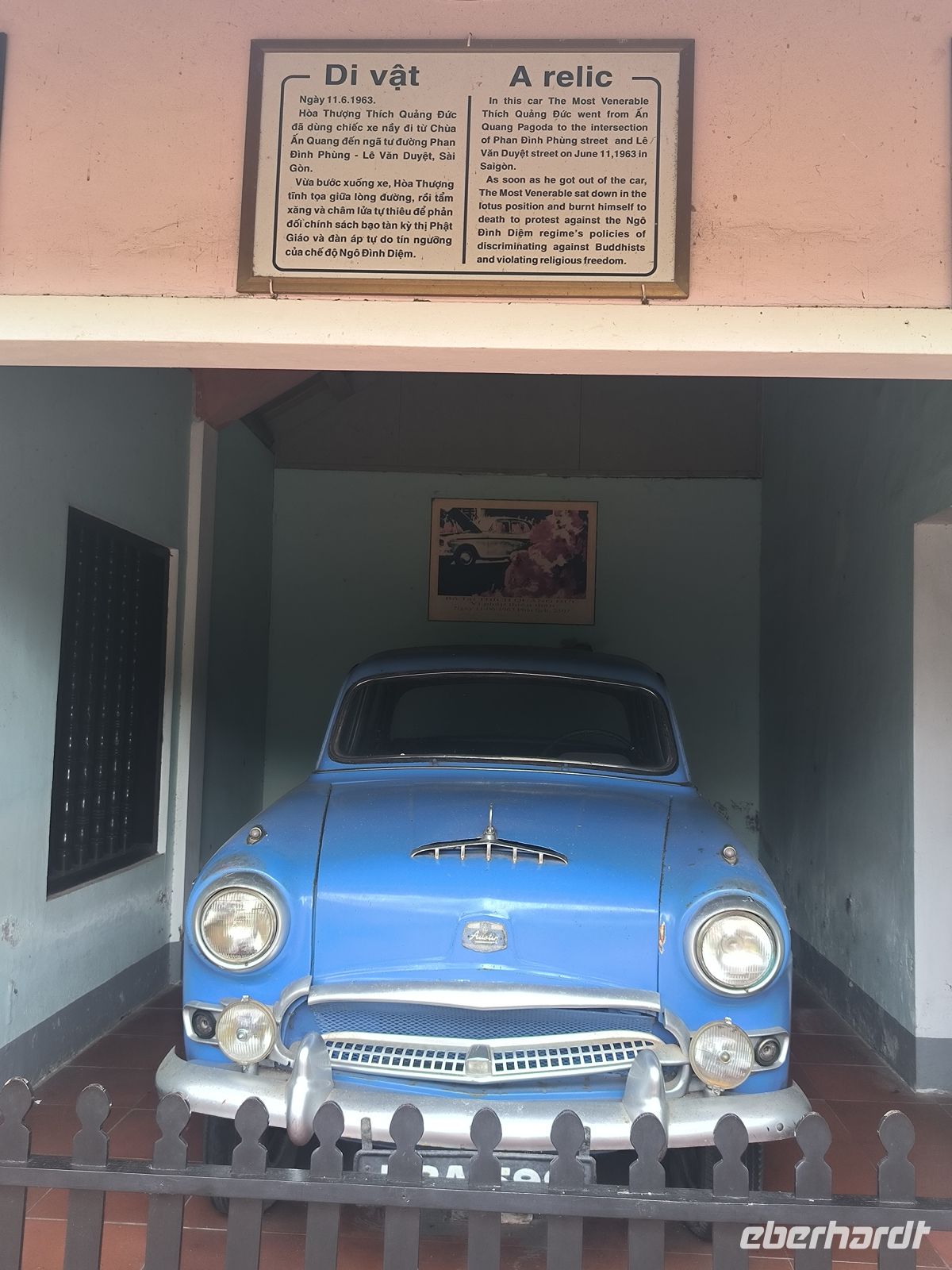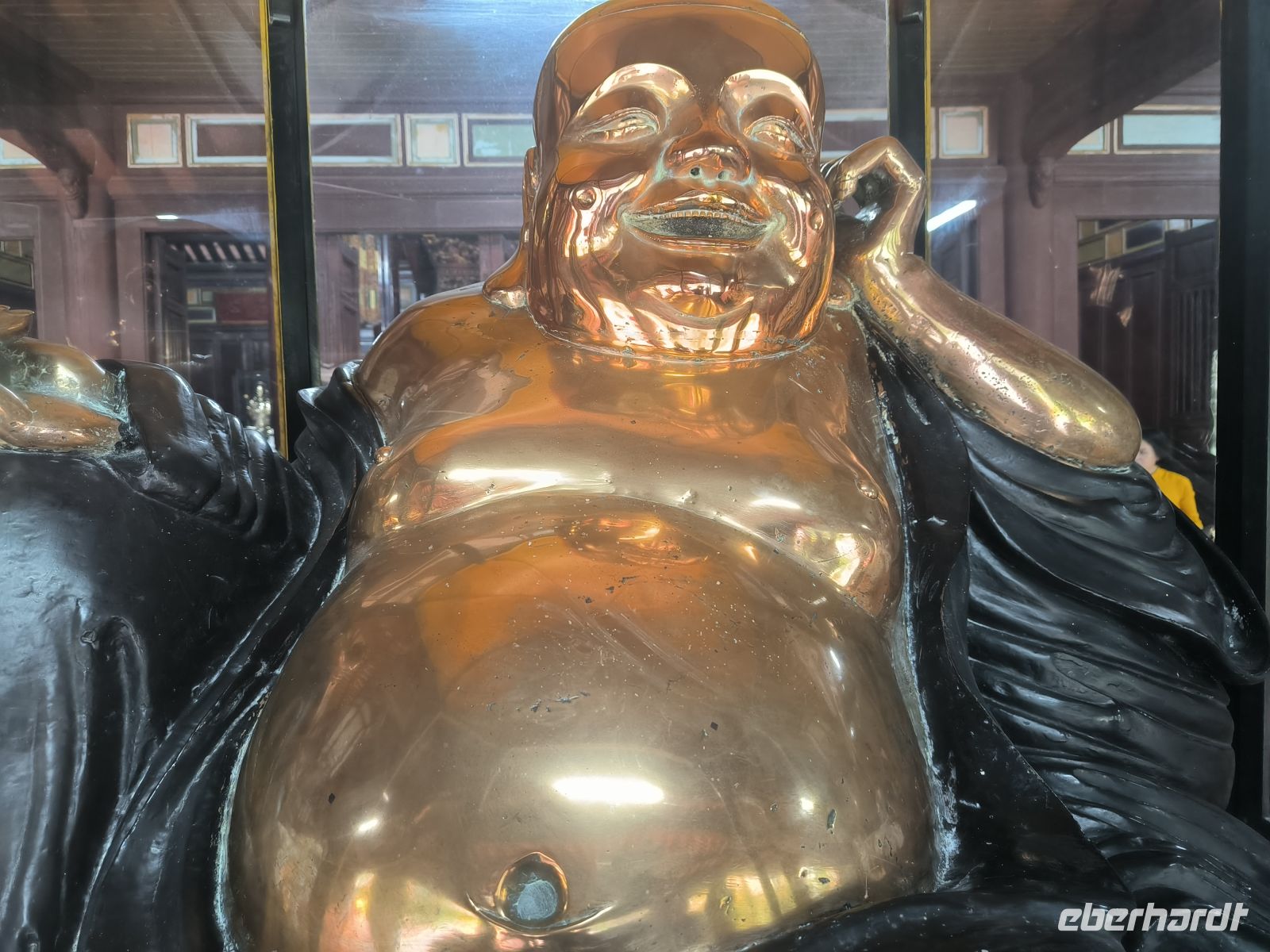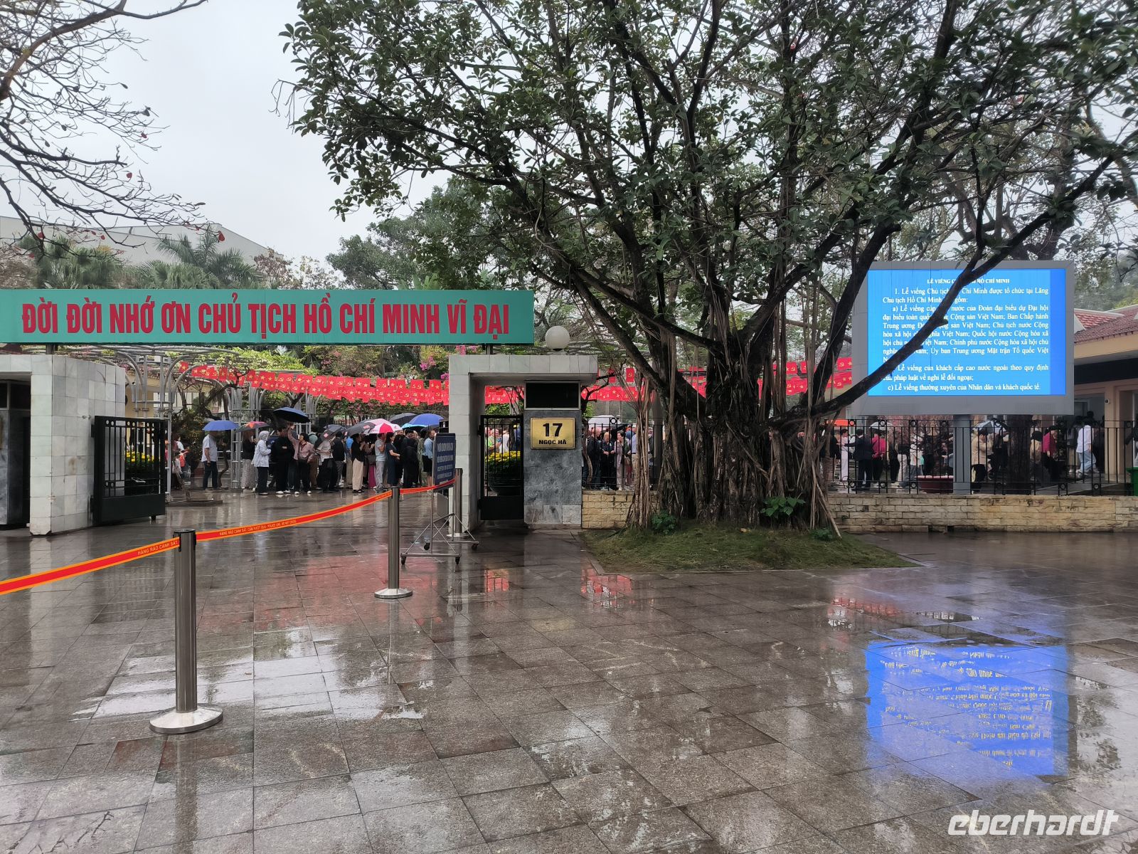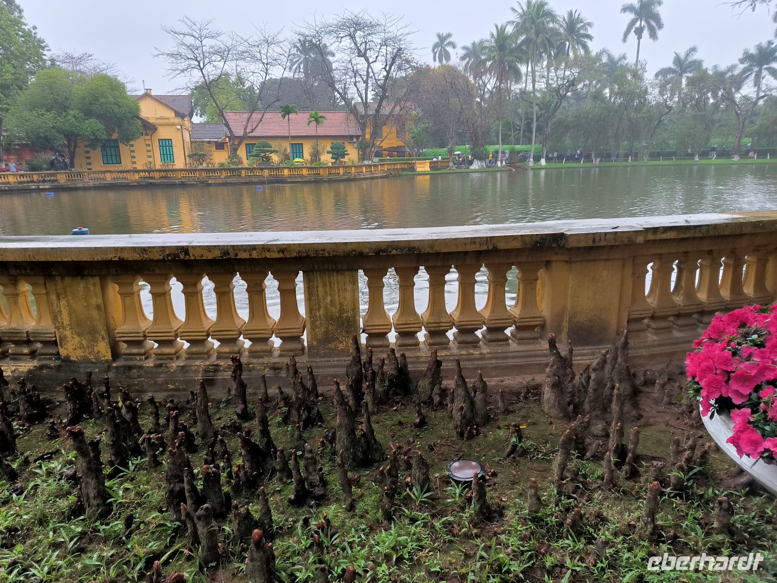 Während unserer Stadtrundfahrt besuchen wir das Ho-Chi-Minh-Mausoleum und sein ehemaliges Wohnhaus und erfahren von unserem Guide Lang viel über die Geschichte des Landes und den großen vietnamesischen Nationalhelden Ho Chi Minh. Die langen Schlangen der Besucher werden mit scharfer Stimme reguliert und junge Männer mit weißen Uniformen bewachen die Mumie. Ob der Gehuldigte diesen Personenkult wohl gut geheißen hätte? Die wechselvolle Geschichte des Landes wird hier eindrucksvoll dargestellt.