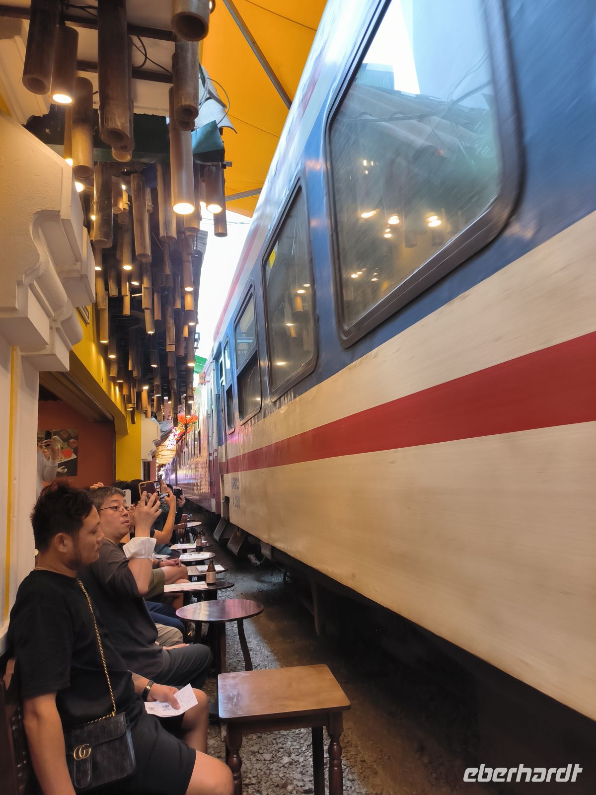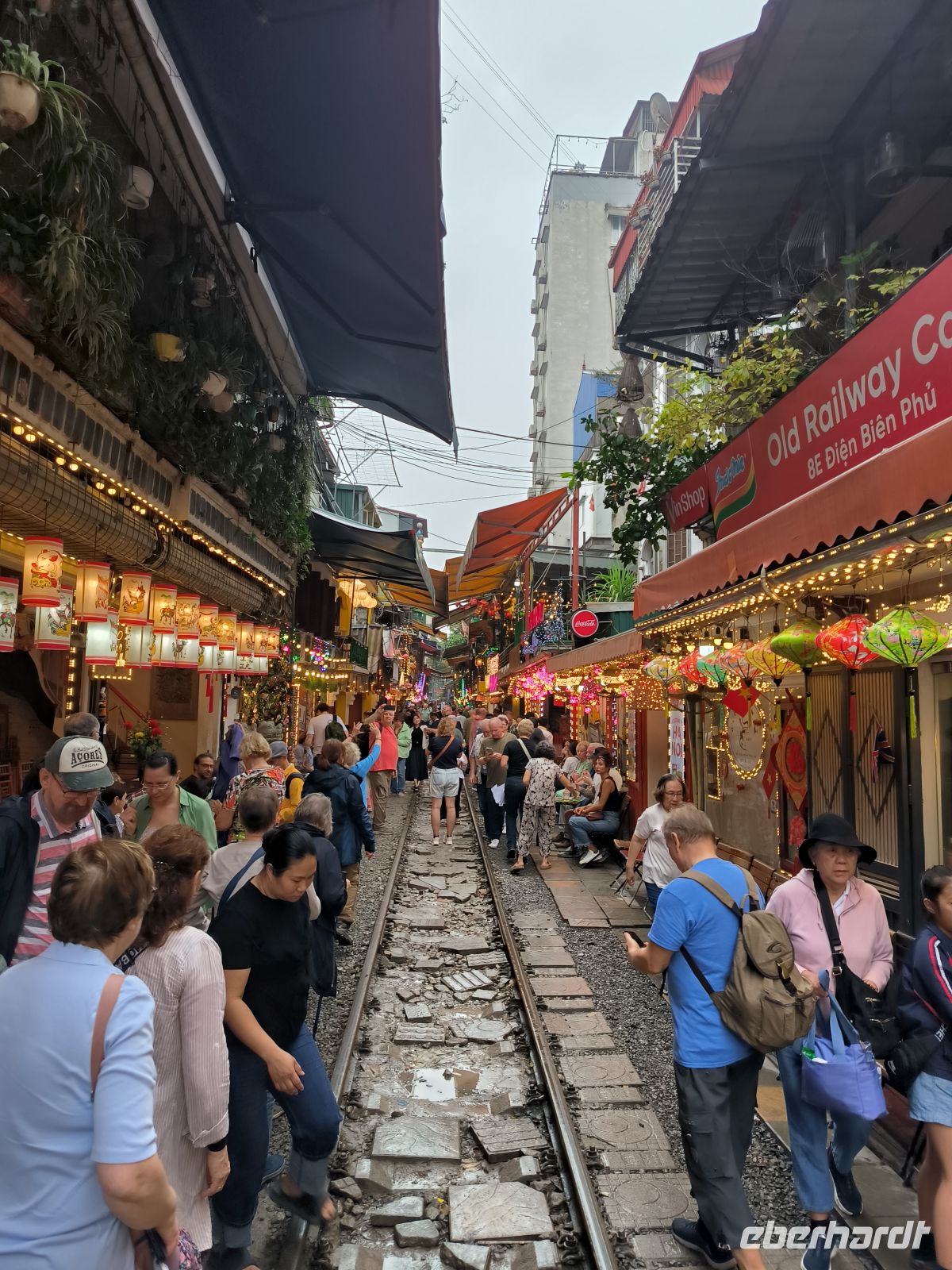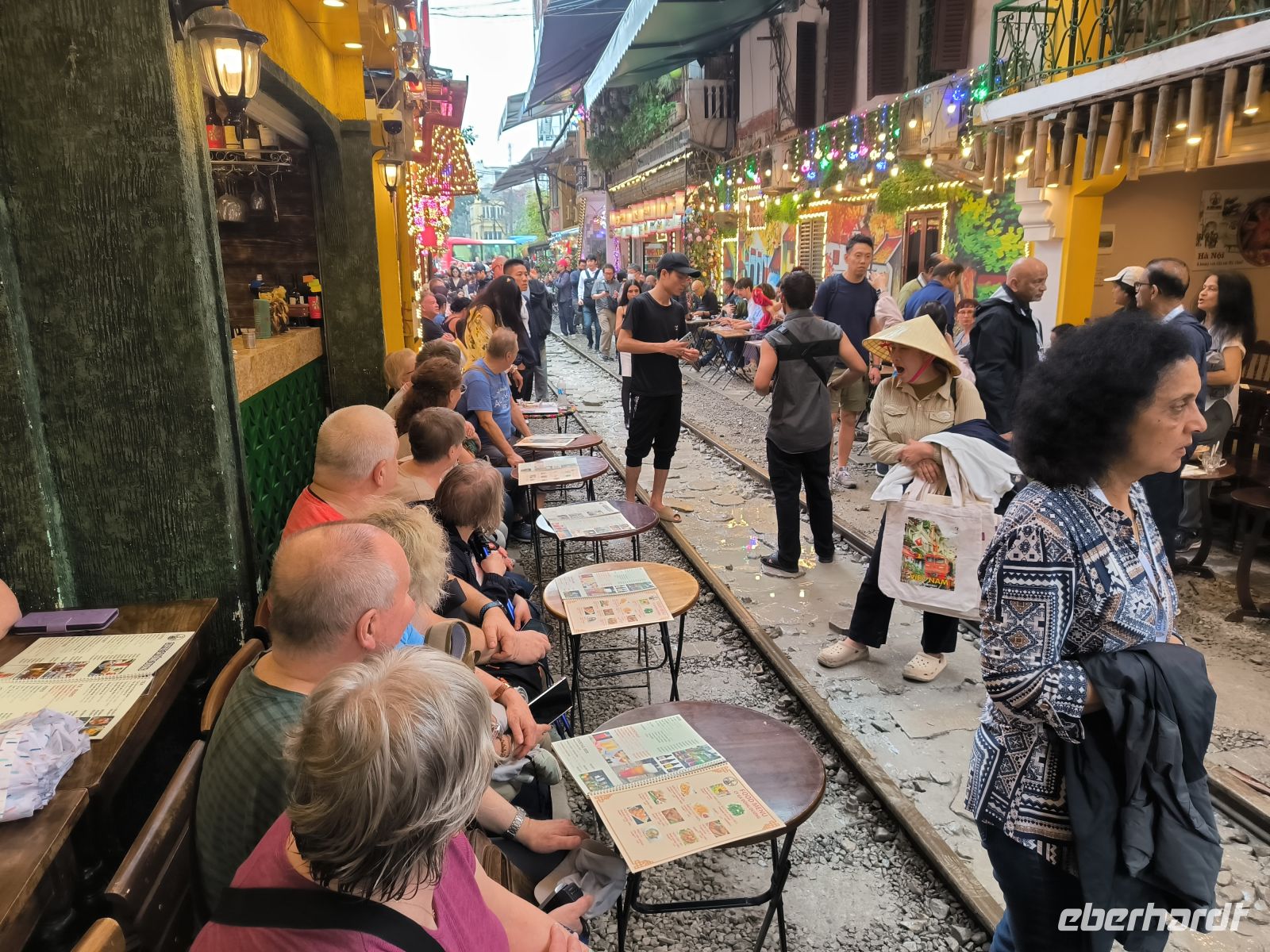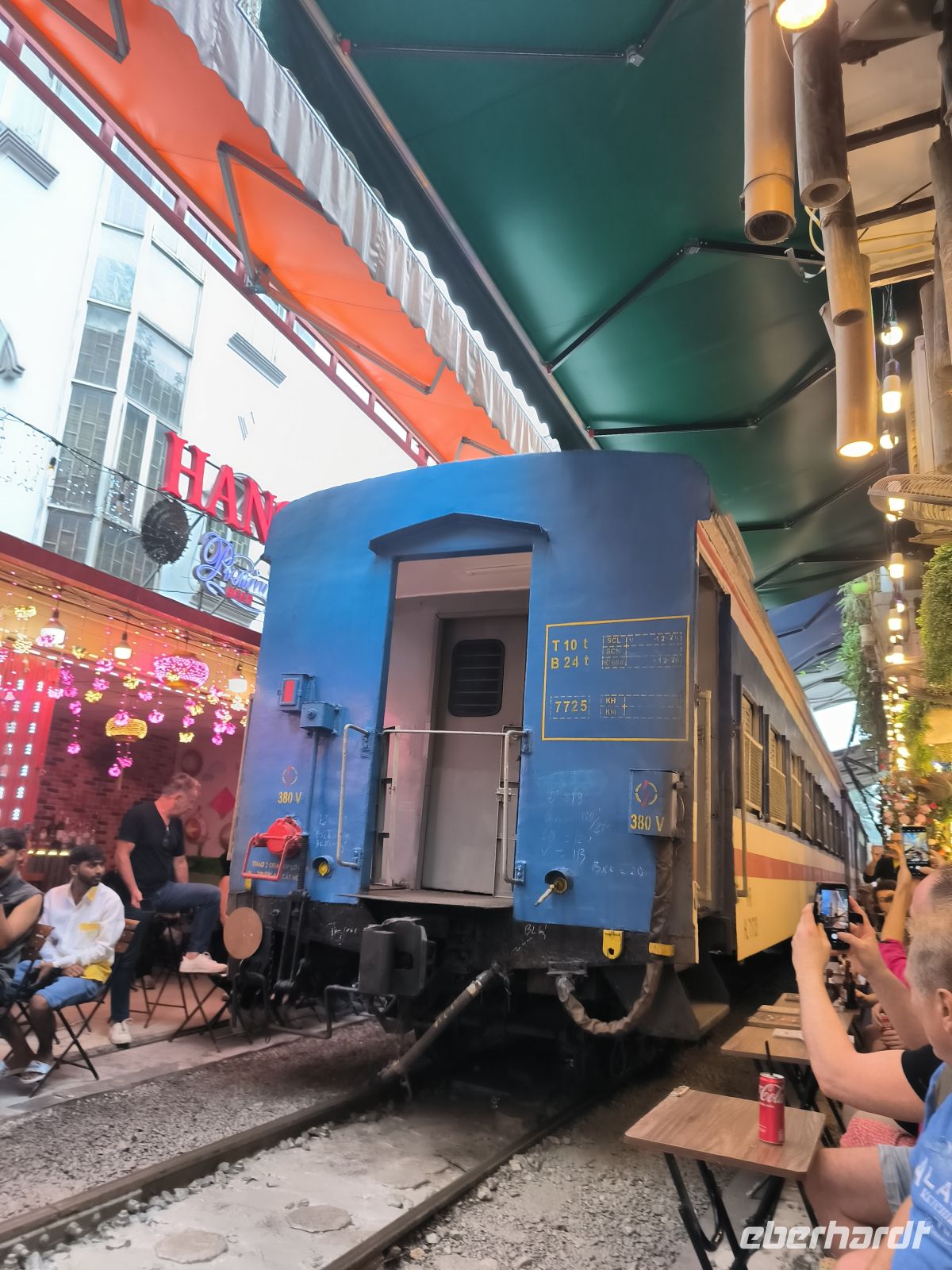 Ein Muss in Hanoi ist der Besuch der Train Street. Während wir den typischen Eierkaffee genießen, werden die Tische weggeräumt und ein Zug schiebt sich durch die enge Gasse, direkt an unseren Fußspitzen vorbei.