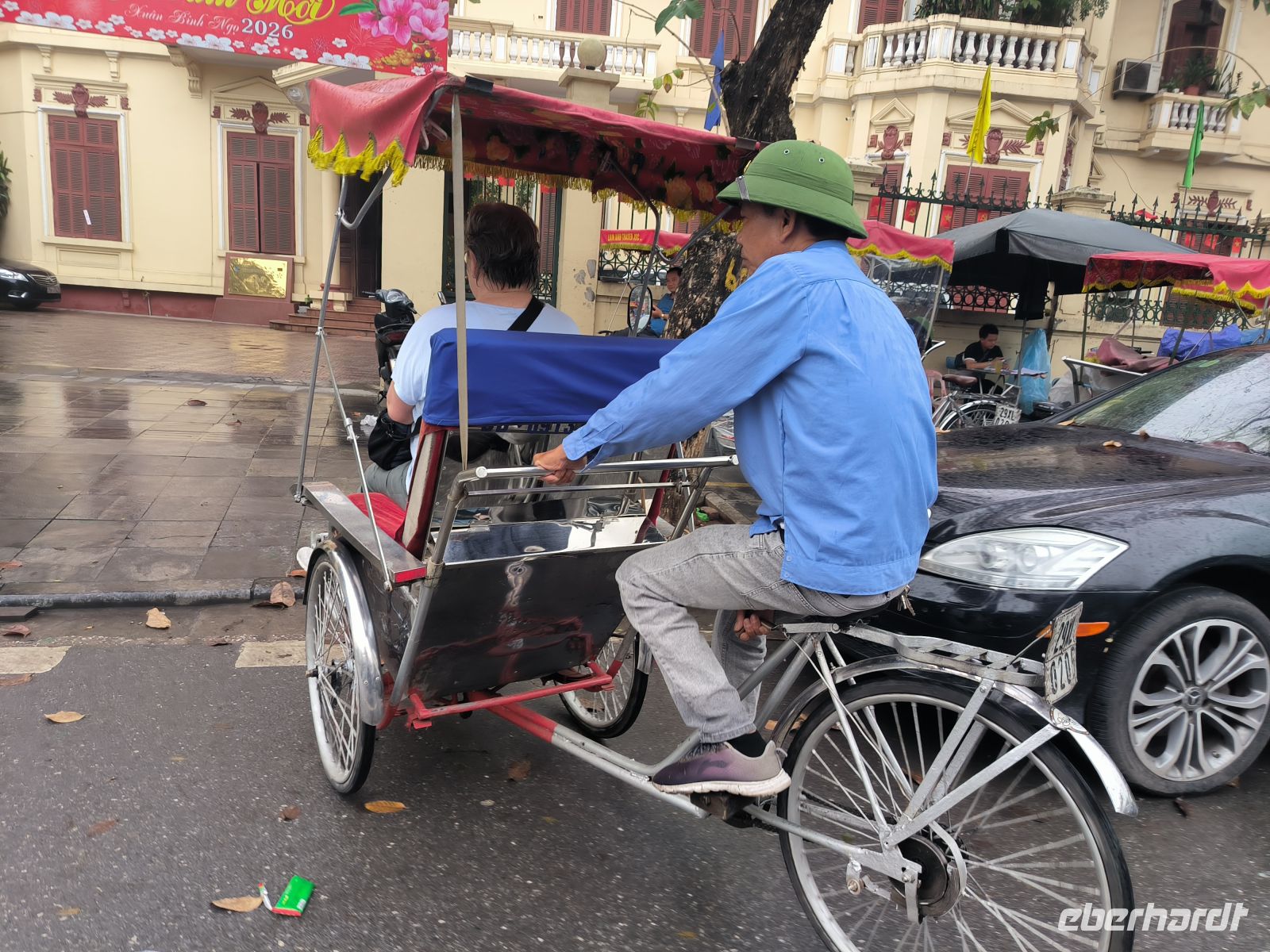 Danach erleben wir Hanoi aus einer anderen Perspektive: Bei einer Rikscha-Fahrt durch die Altstadt lassen wir uns treiben, hautnah dran an den anderen Verkehrsteilnehmern. Scheinbar ohne Regeln wuseln Mopeds zwischen Autos, Bussen und Fußgängern umher. Wir sind erstaunt, dass nix passiert.