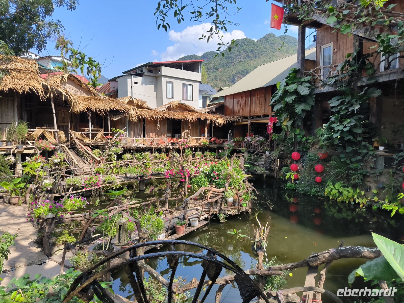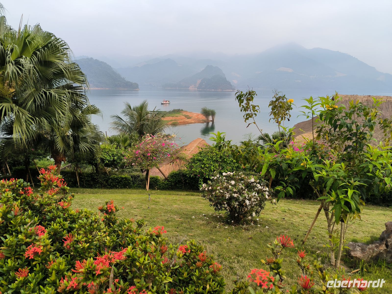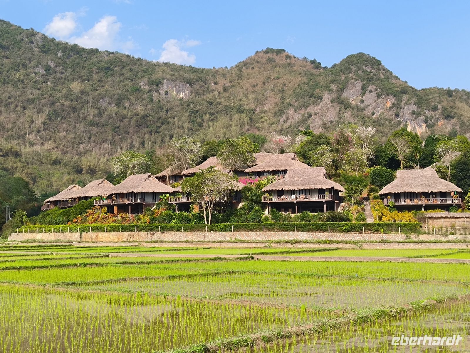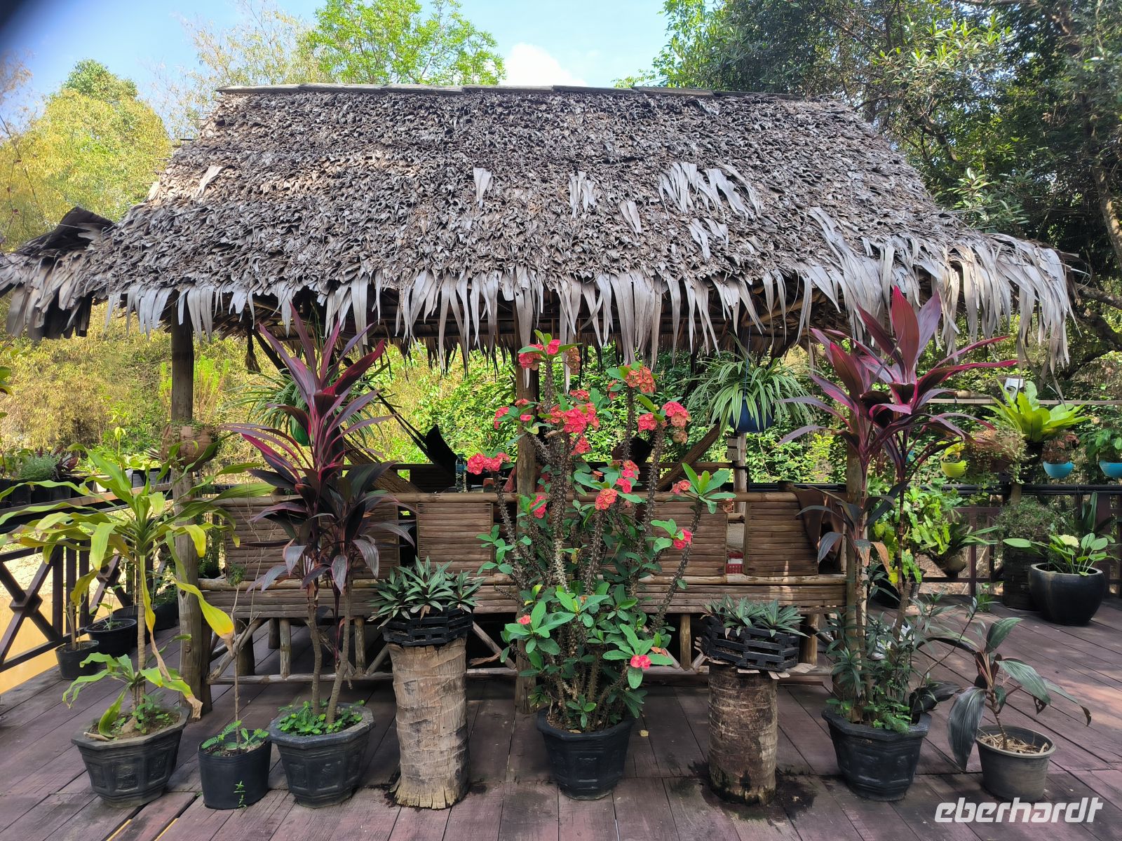 Der Morgen bleibt zunächst dunkel, zumindest im Bad - Stromausfall. Das stört uns aber wenig, zum Frühstück läuft ein Notfallgenerator. Wir nutzen die Zeit für einen letzten Spaziergang durch die idyllische Anlage der Mai Chau HideAway Lodge.