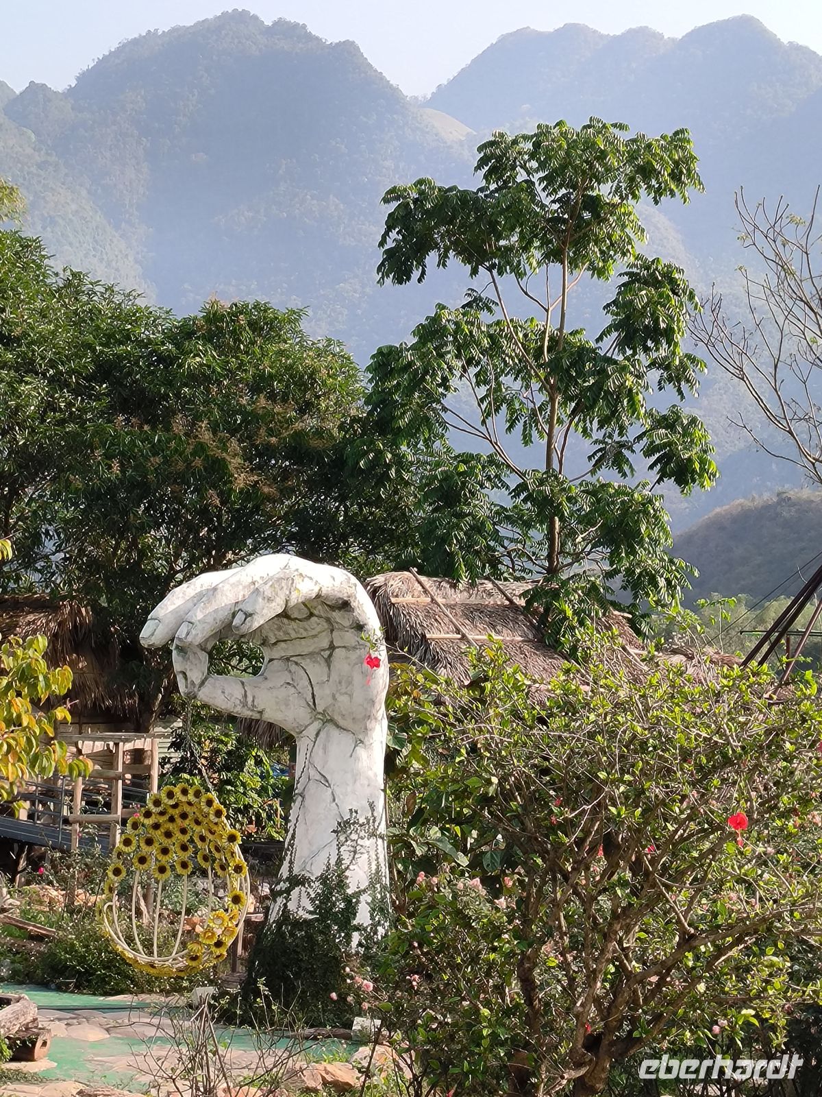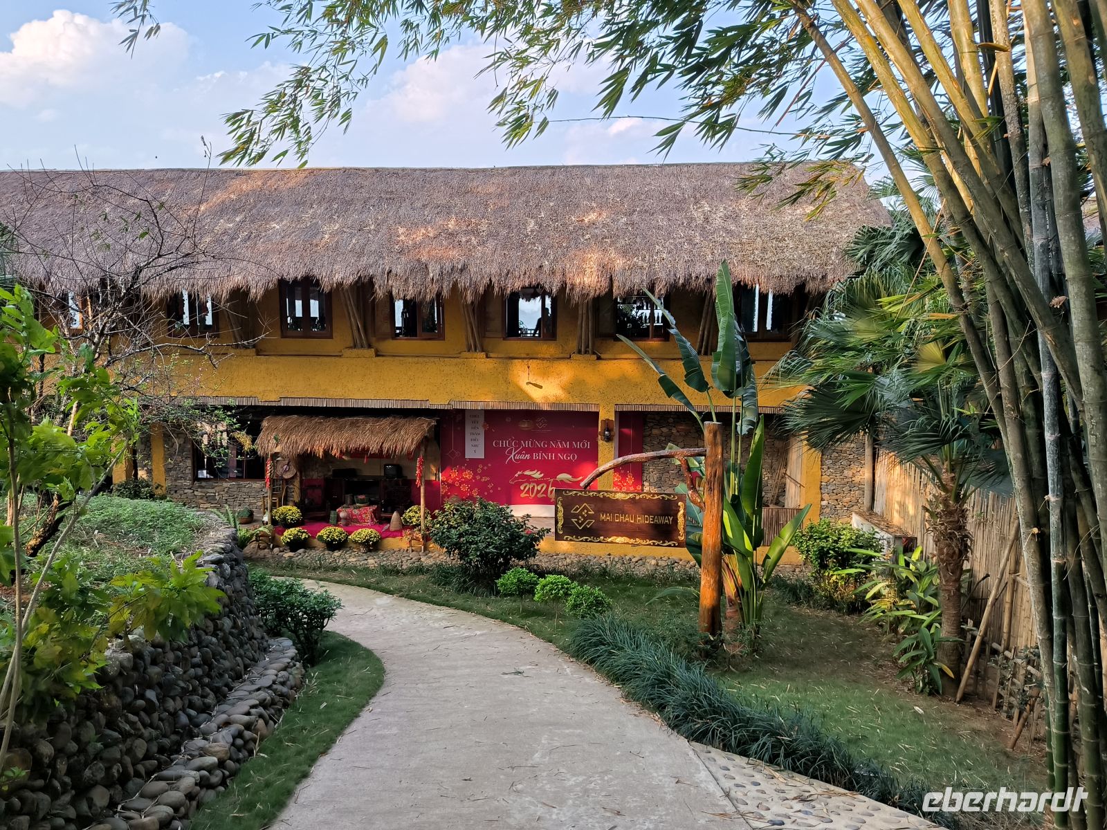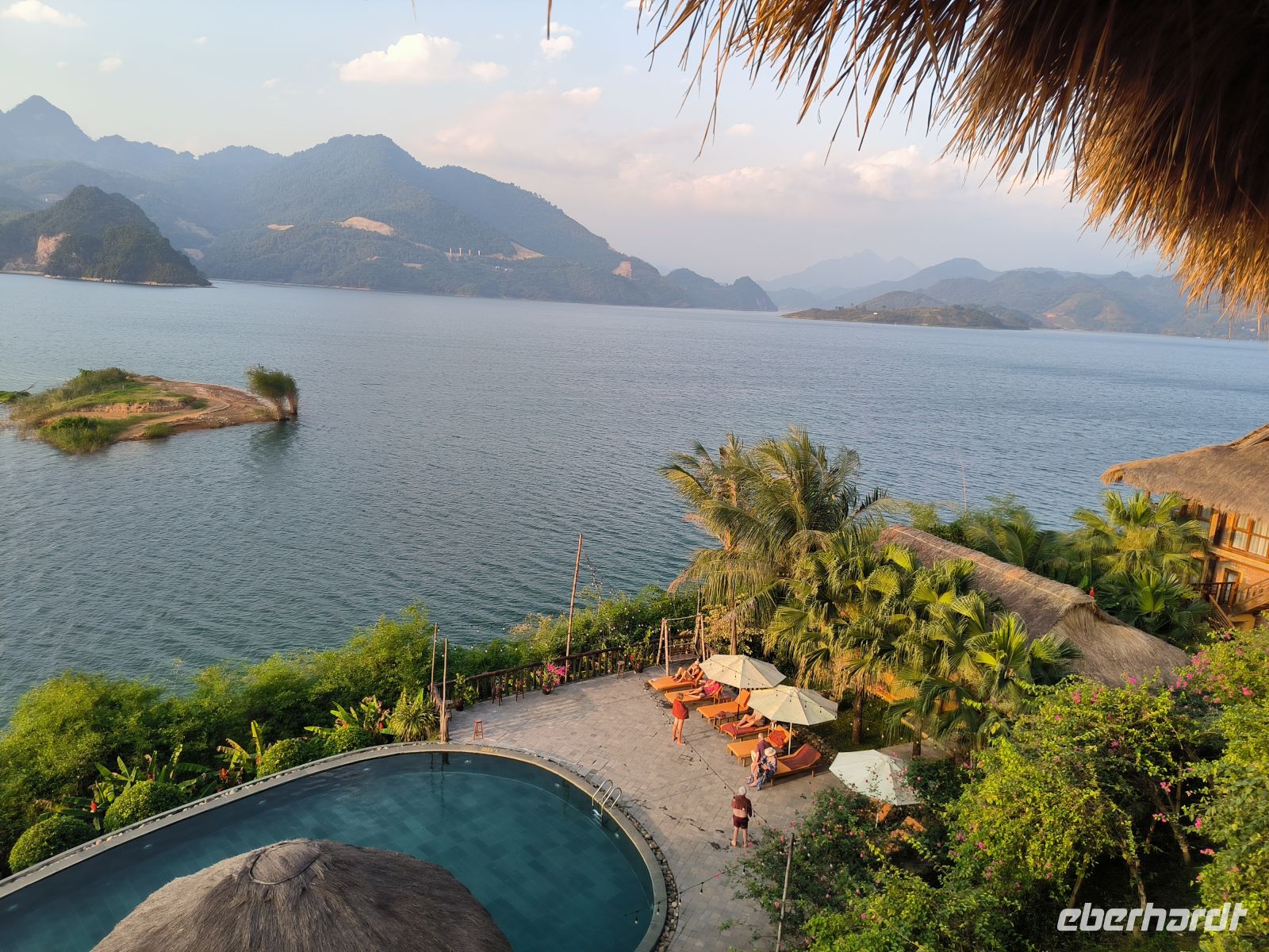 Der Morgen bleibt zunächst dunkel, zumindest im Bad - Stromausfall. Das stört uns aber wenig, zum Frühstück läuft ein Notfallgenerator. Wir nutzen die Zeit für einen letzten Spaziergang durch die idyllische Anlage der Mai Chau HideAway Lodge.