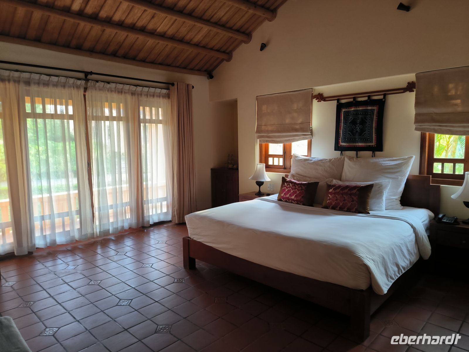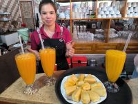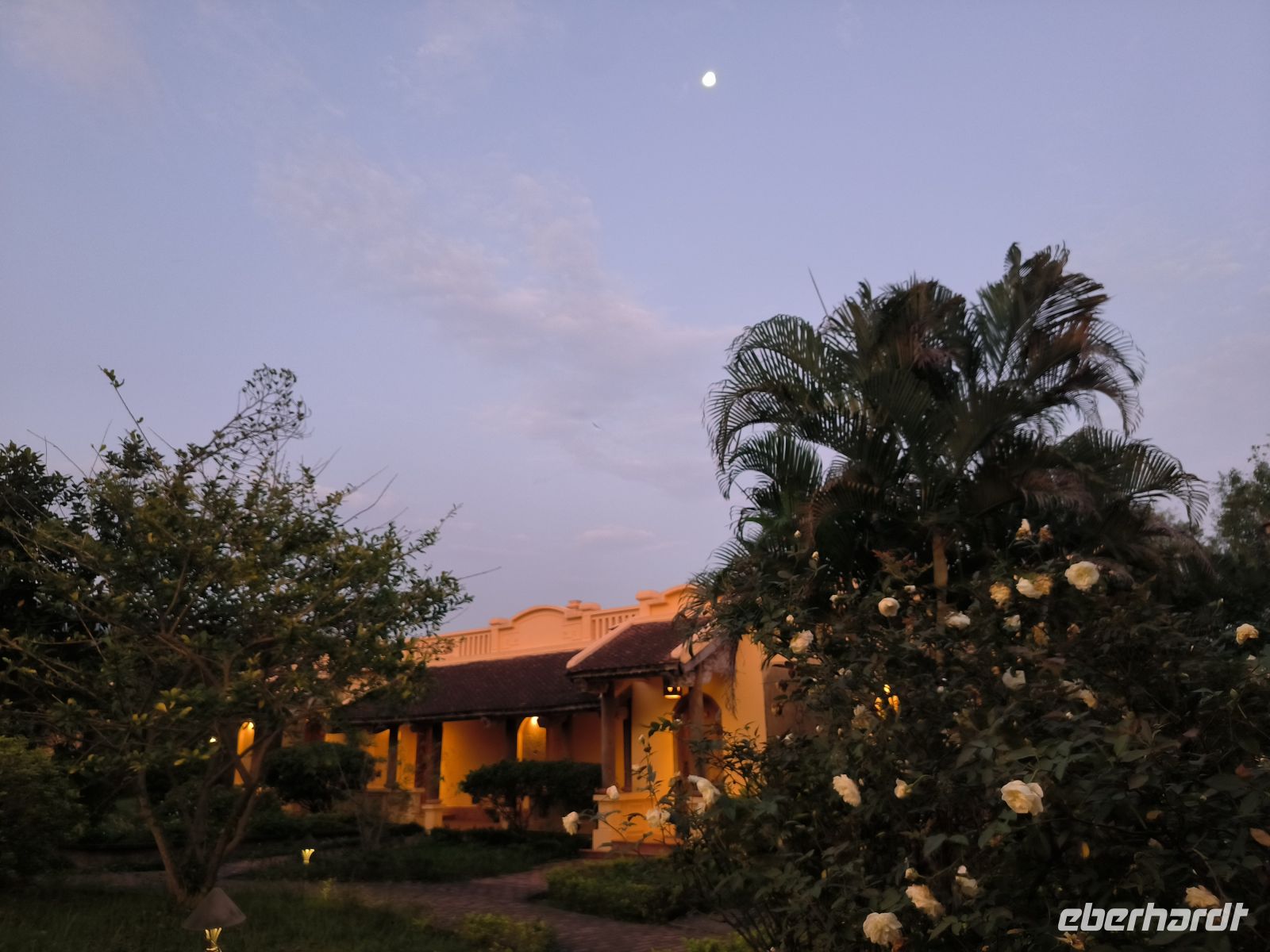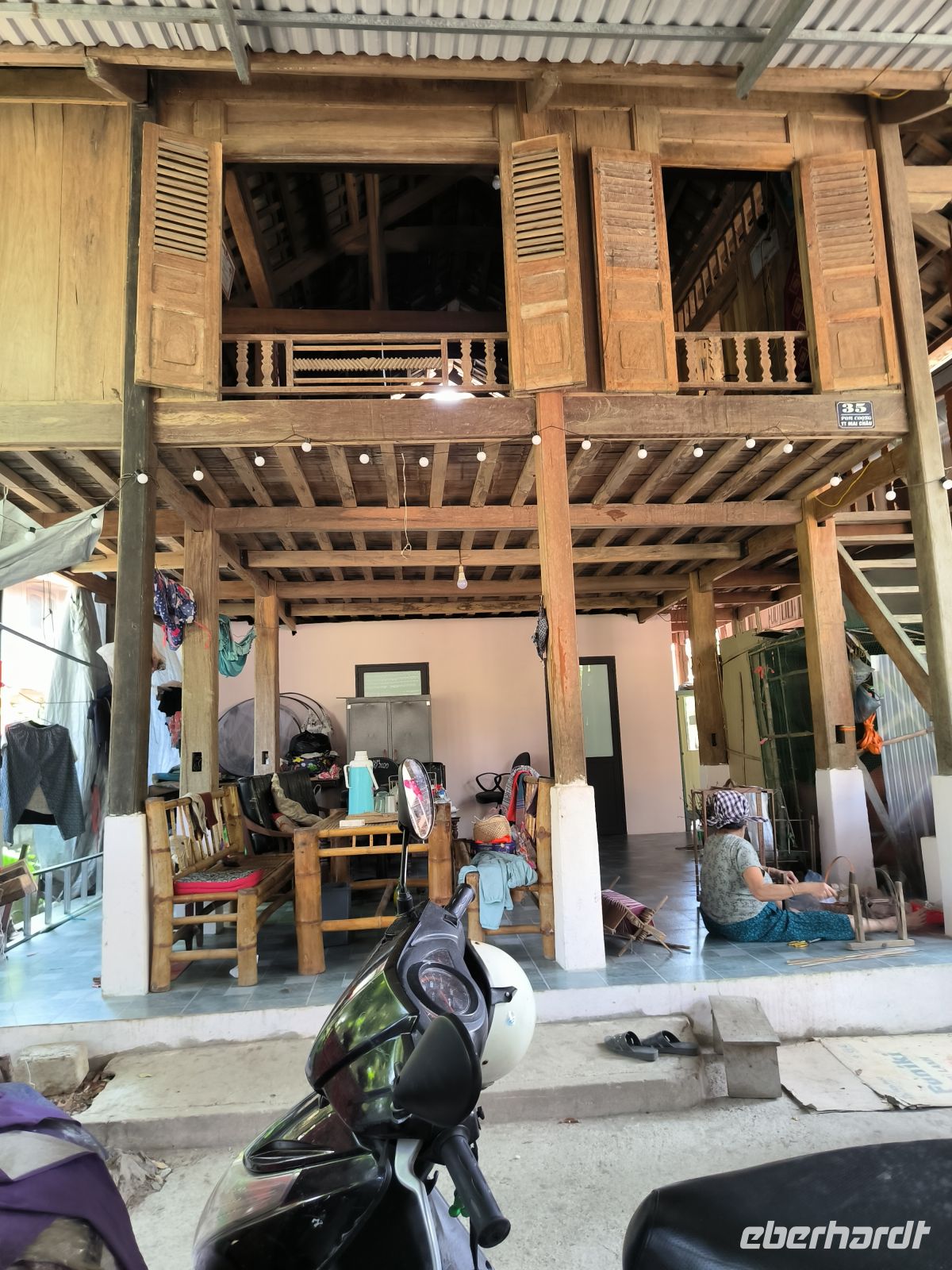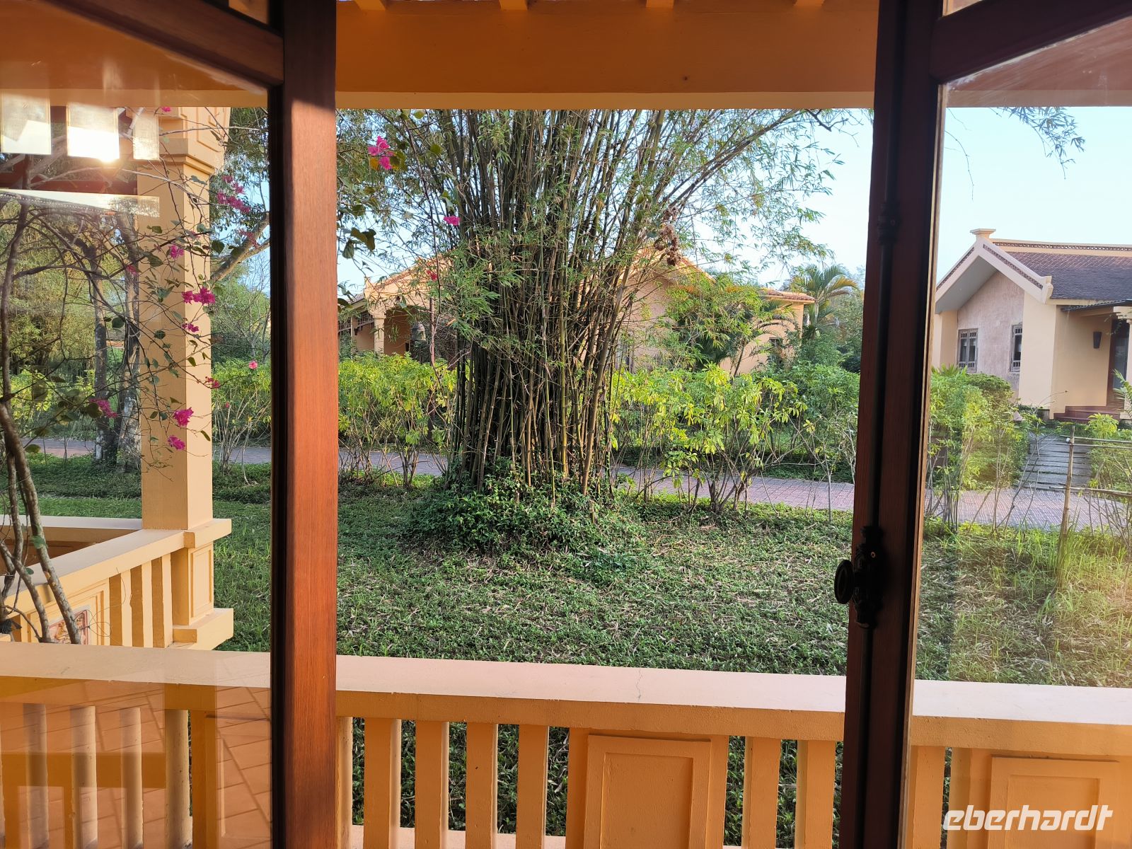 Der Morgen bleibt zunächst dunkel, zumindest im Bad - Stromausfall. Das stört uns aber wenig, zum Frühstück läuft ein Notfallgenerator. Wir nutzen die Zeit für einen letzten Spaziergang durch die idyllische Anlage der Mai Chau HideAway Lodge.