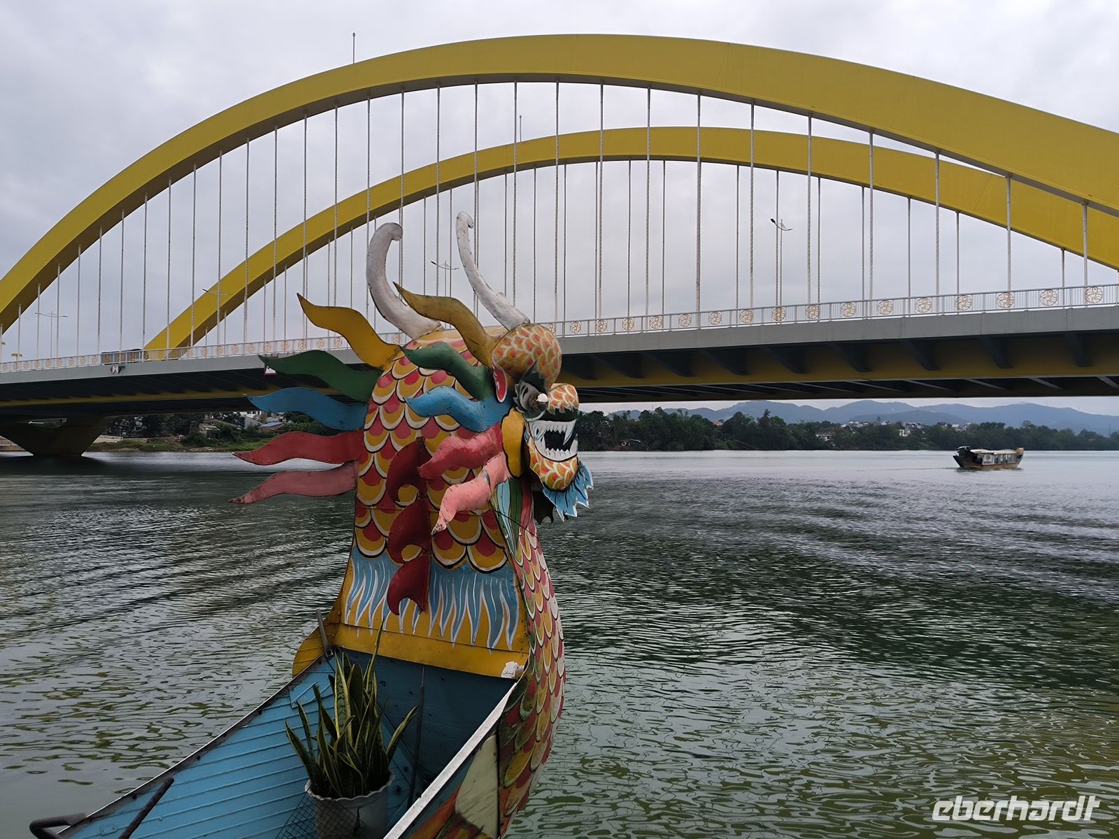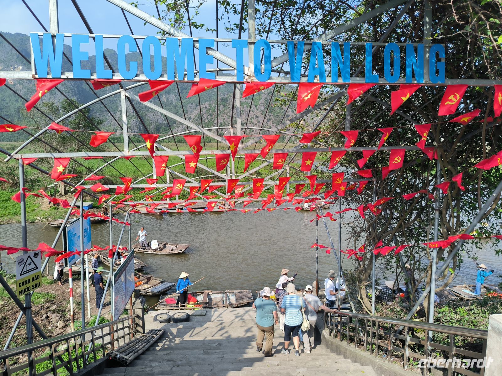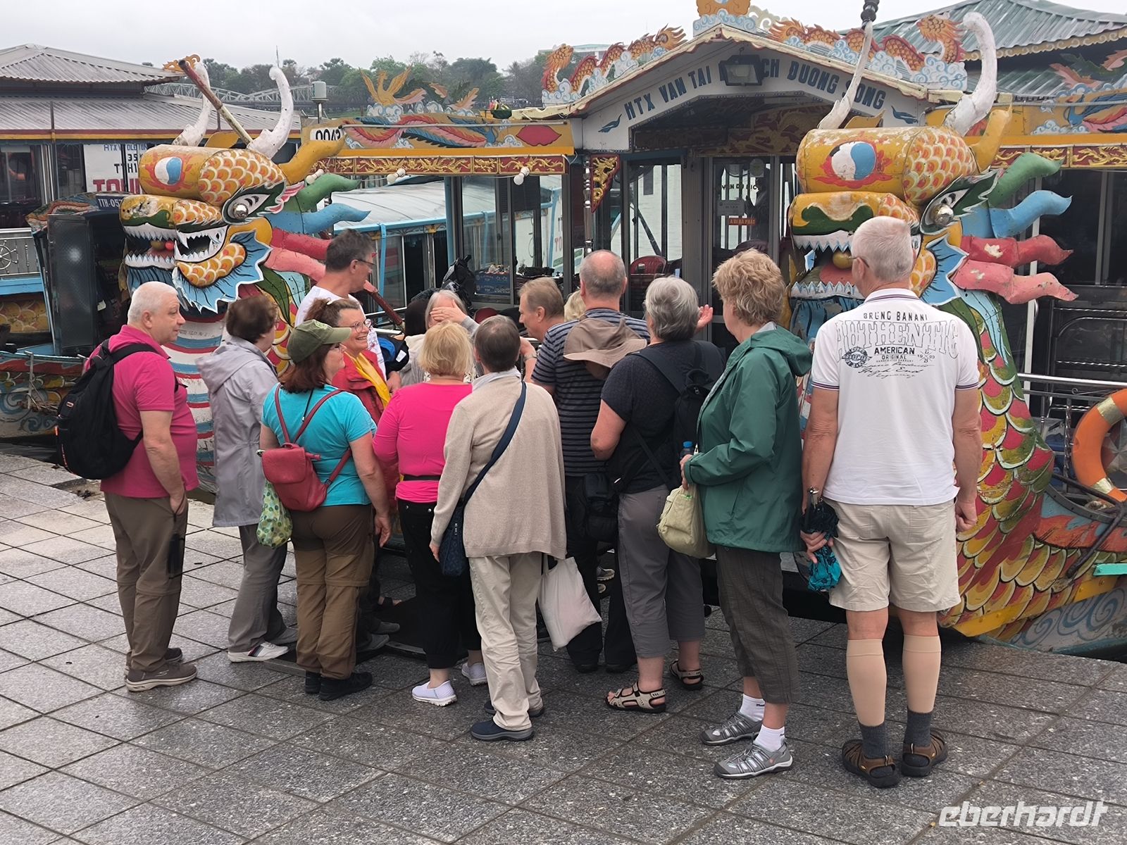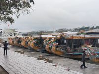 Am Morgen fahren wir mit dem Dracheboot auf dem Parfümfluss entlang.