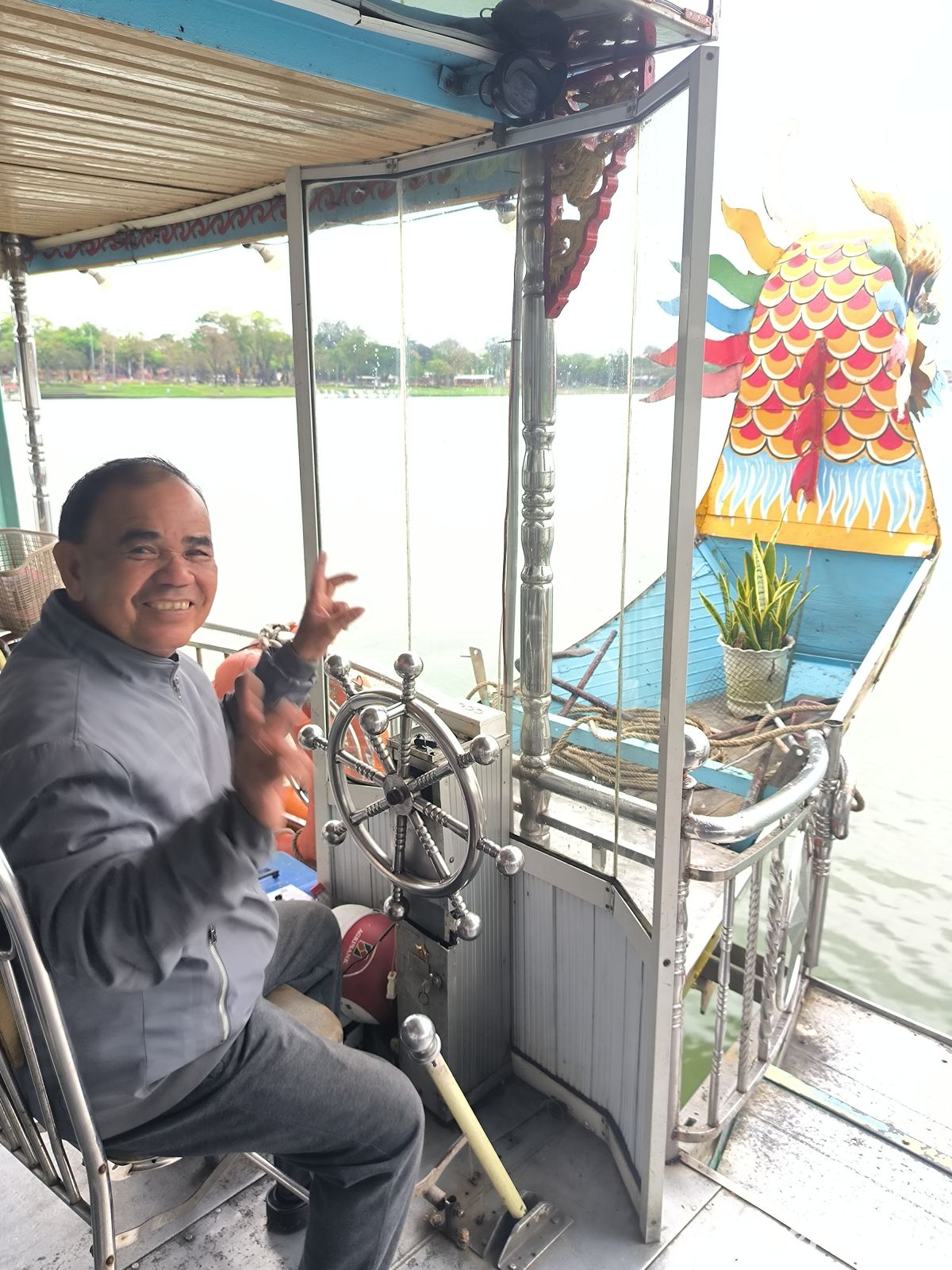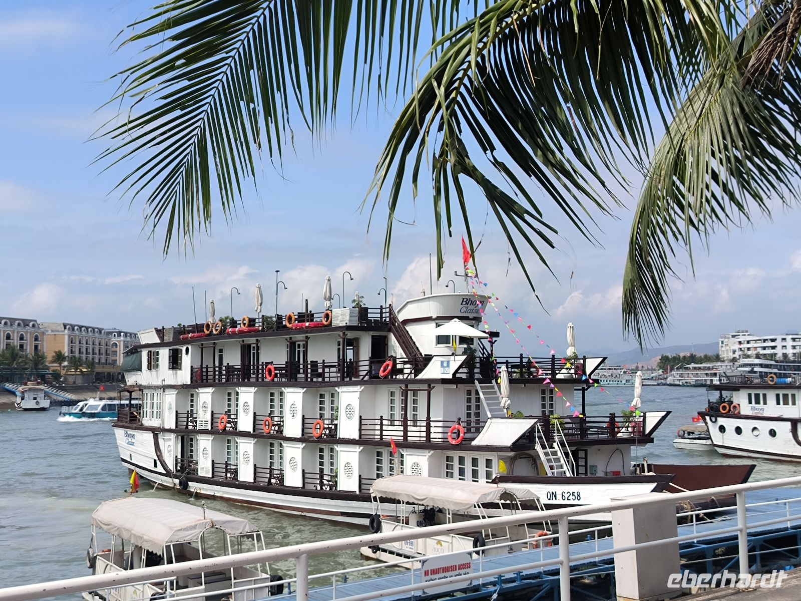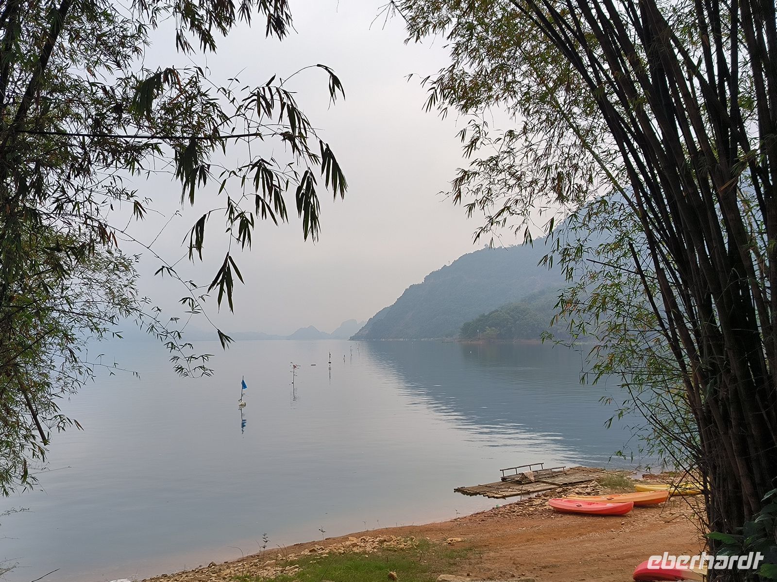Am Morgen fahren wir mit dem Dracheboot auf dem Parfümfluss entlang.