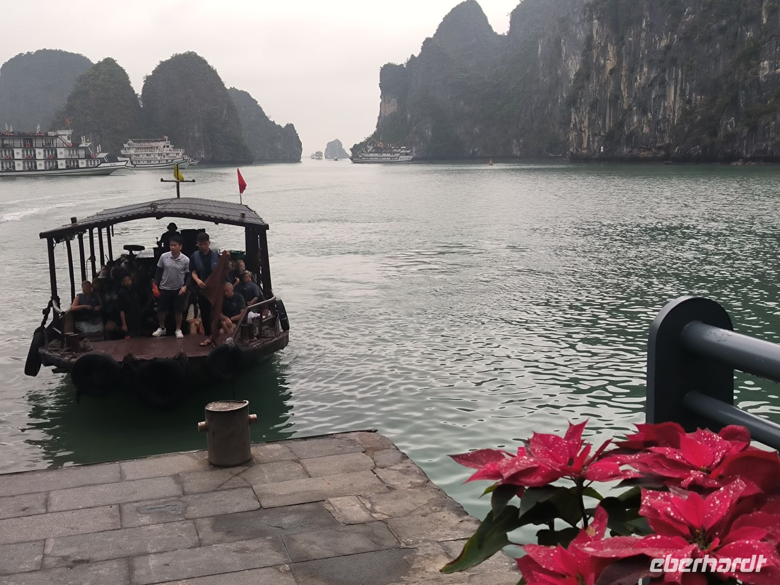 Nach dem Frühstück fahren wir Richtung Osten zur legendären Halong-Bucht. Schon die ersten Ausblicke auf die bizarren Karstfelsen im Golf von Tonkin rauben uns den Atem. In einer Perlenmanufaktur bekommen wir einen interessanten Einblick über die Aufzucht von Austernperlen.