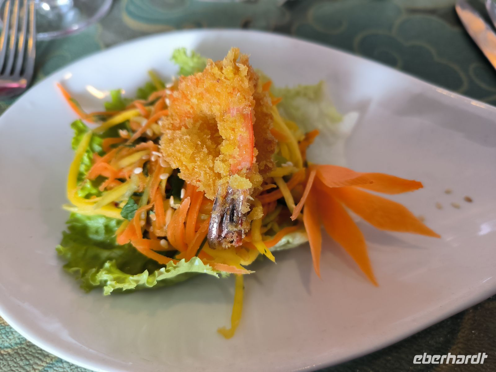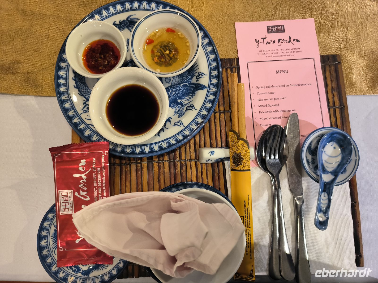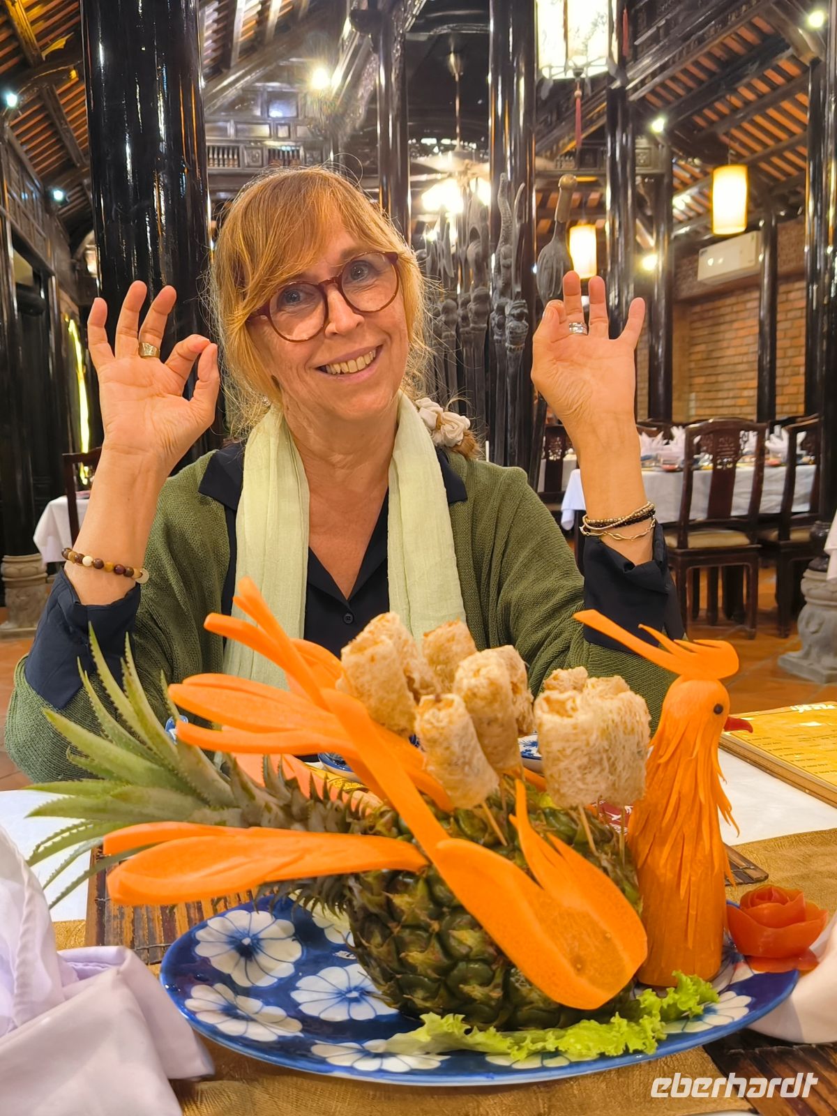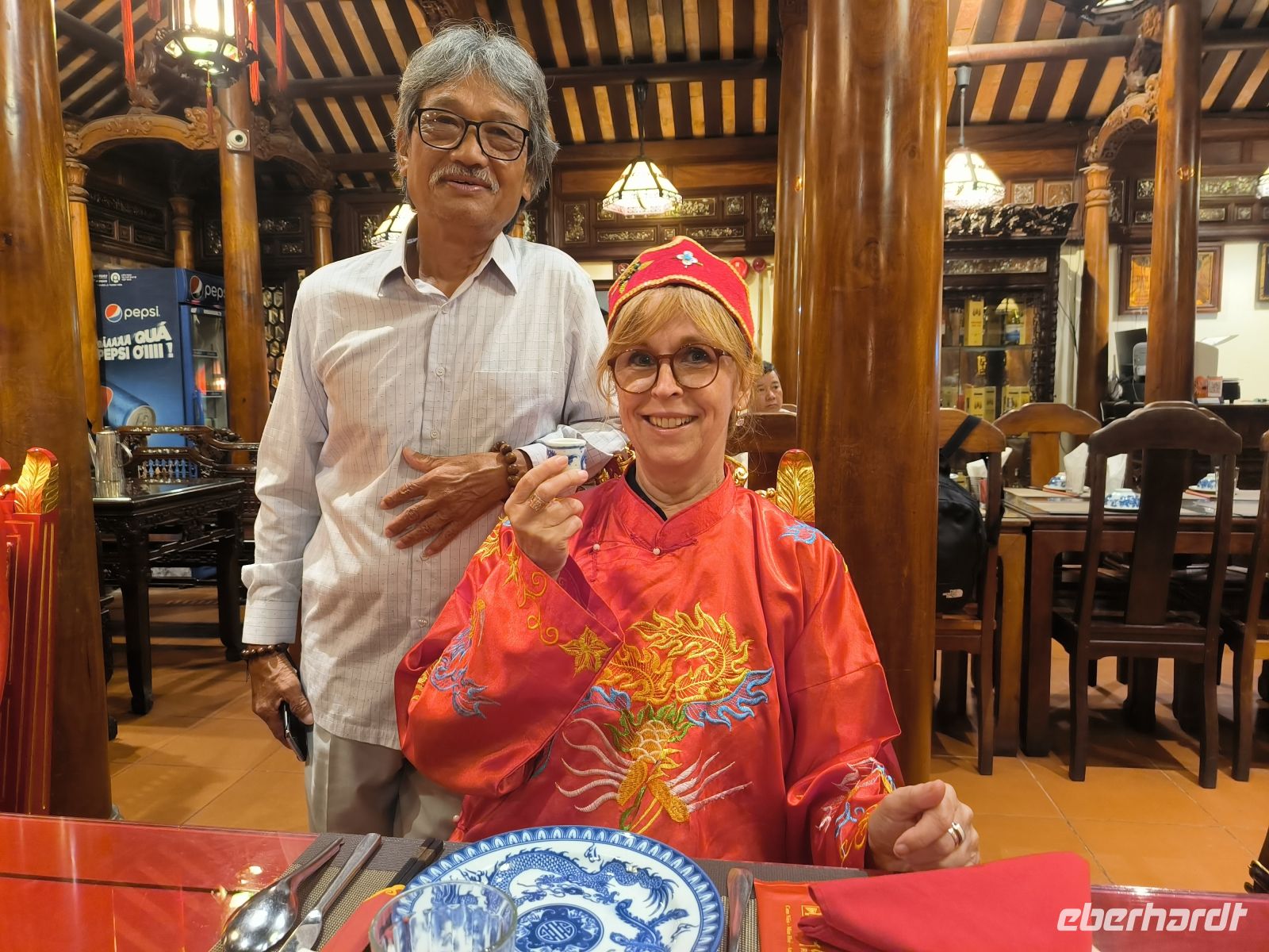 Zum Abendessen führt uns Lang wieder in ein schönes Restaurant, wo wir uns das leckere Menü schmecken lassen.