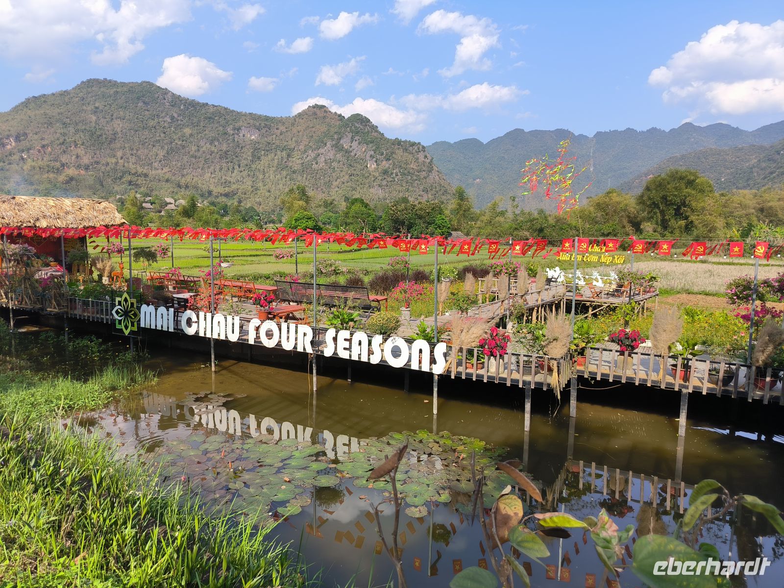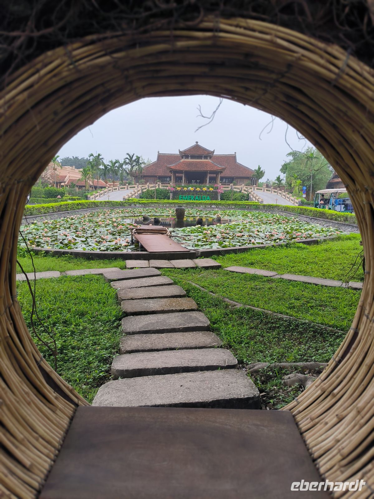 Unsere Unterkunft für die Nacht ist das traumhafte Emeralda Ninh Binh Resort, das wie eine alte Königsstadt gestaltet ist – mit Pool und Park und vielen Seerosen der perfekte Ort zum Entspannen.