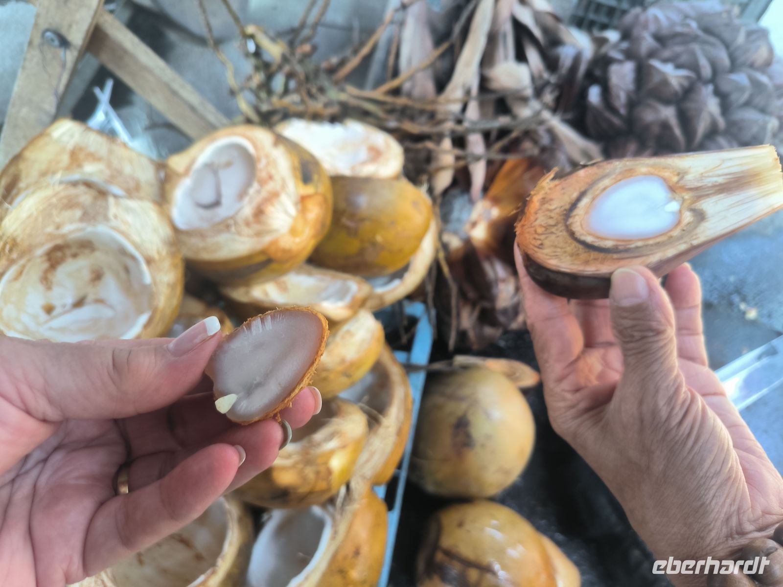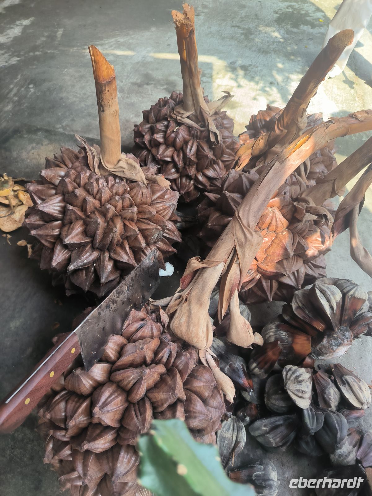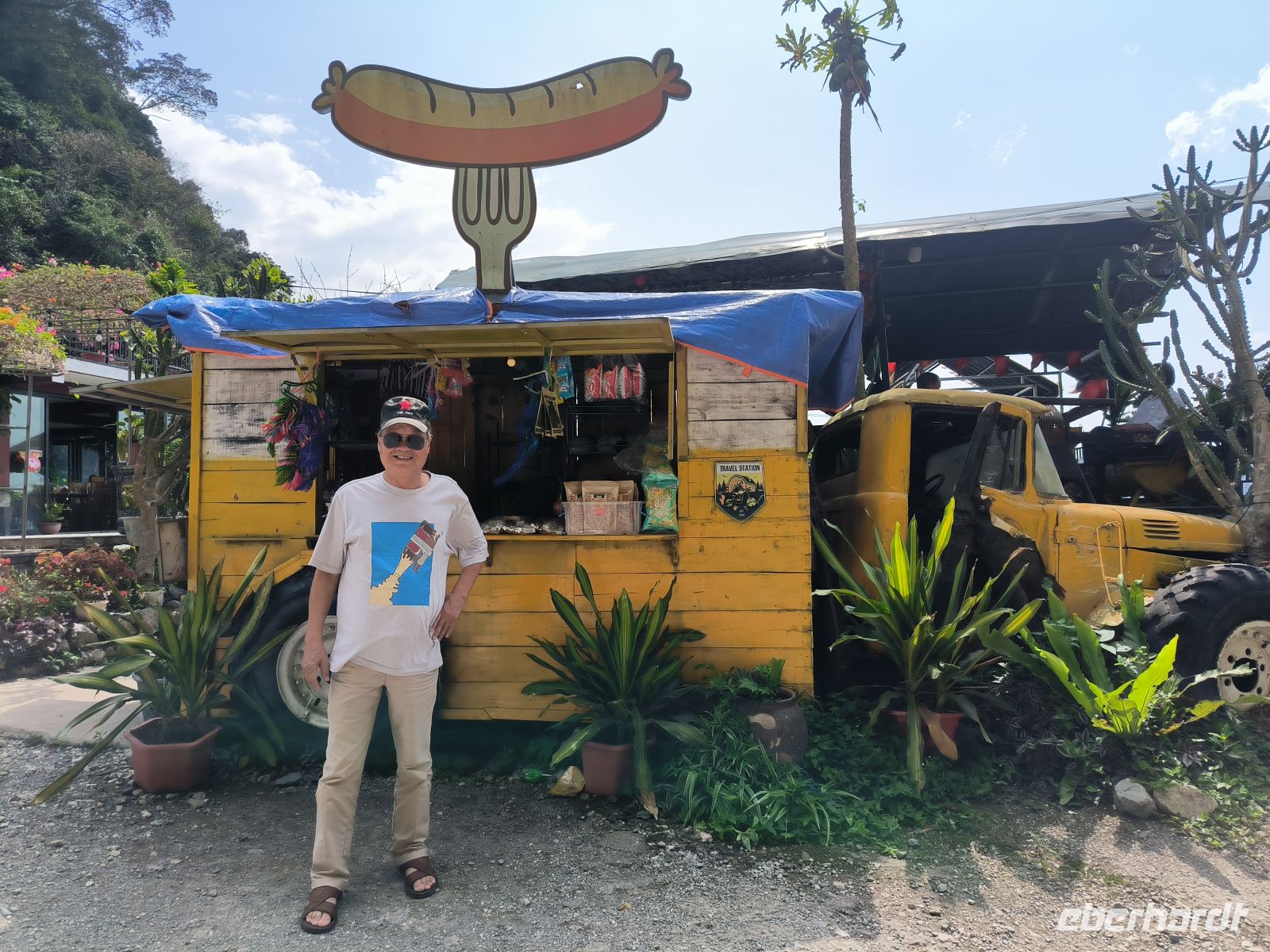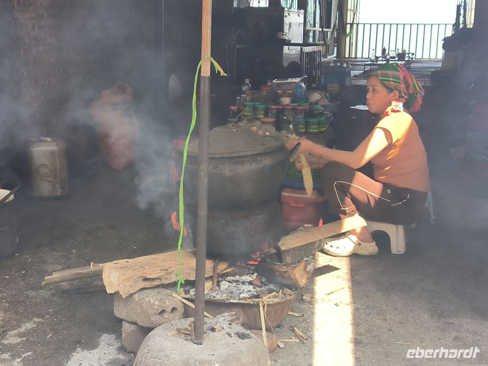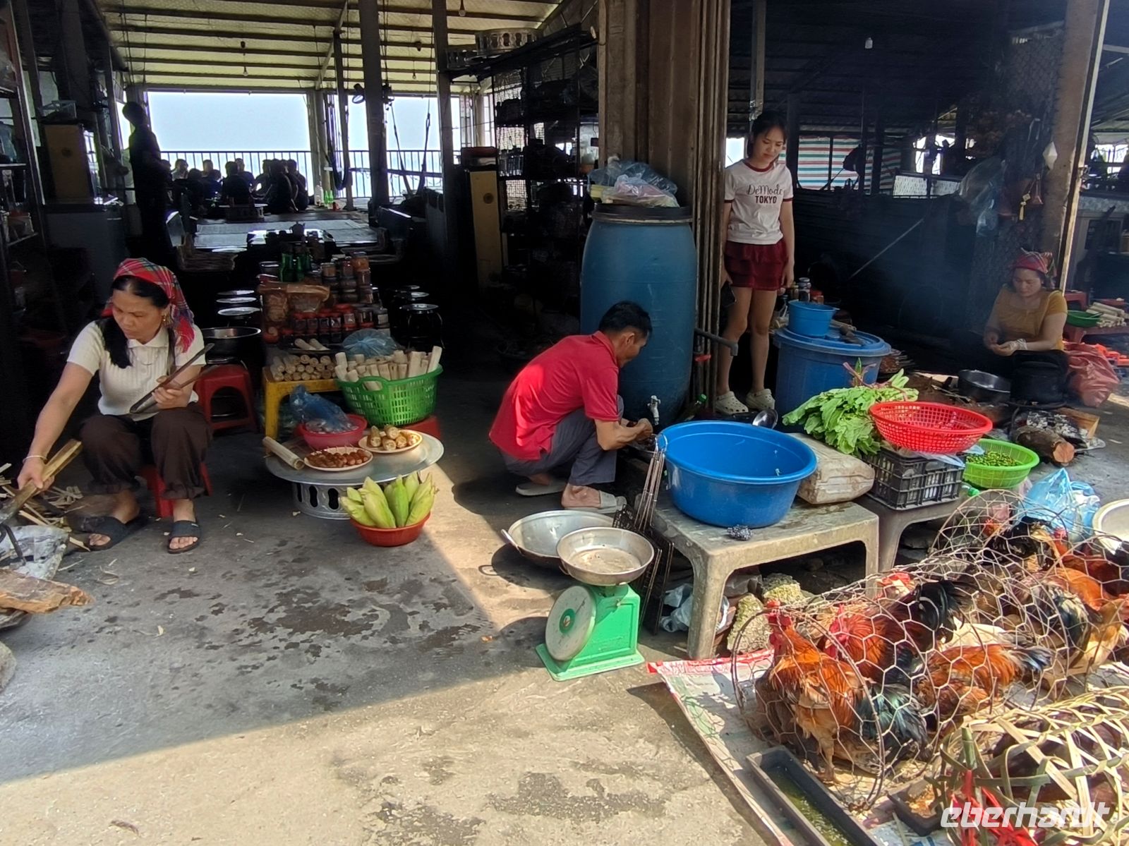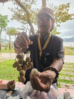 Am Berghang besuchen wir etwas skeptisch einen Markt des Thai-Volkes, wo Hühner und Ratten geschlachtet und gebraten werden, Klebreis in Bambysröhren gekocht wird und die hygienischen Bedingungen von unseren weit entfernt sind.