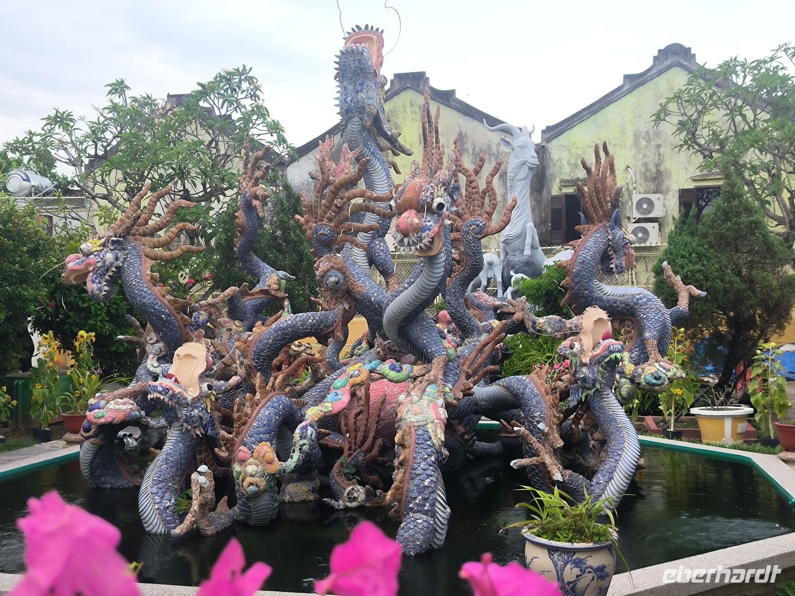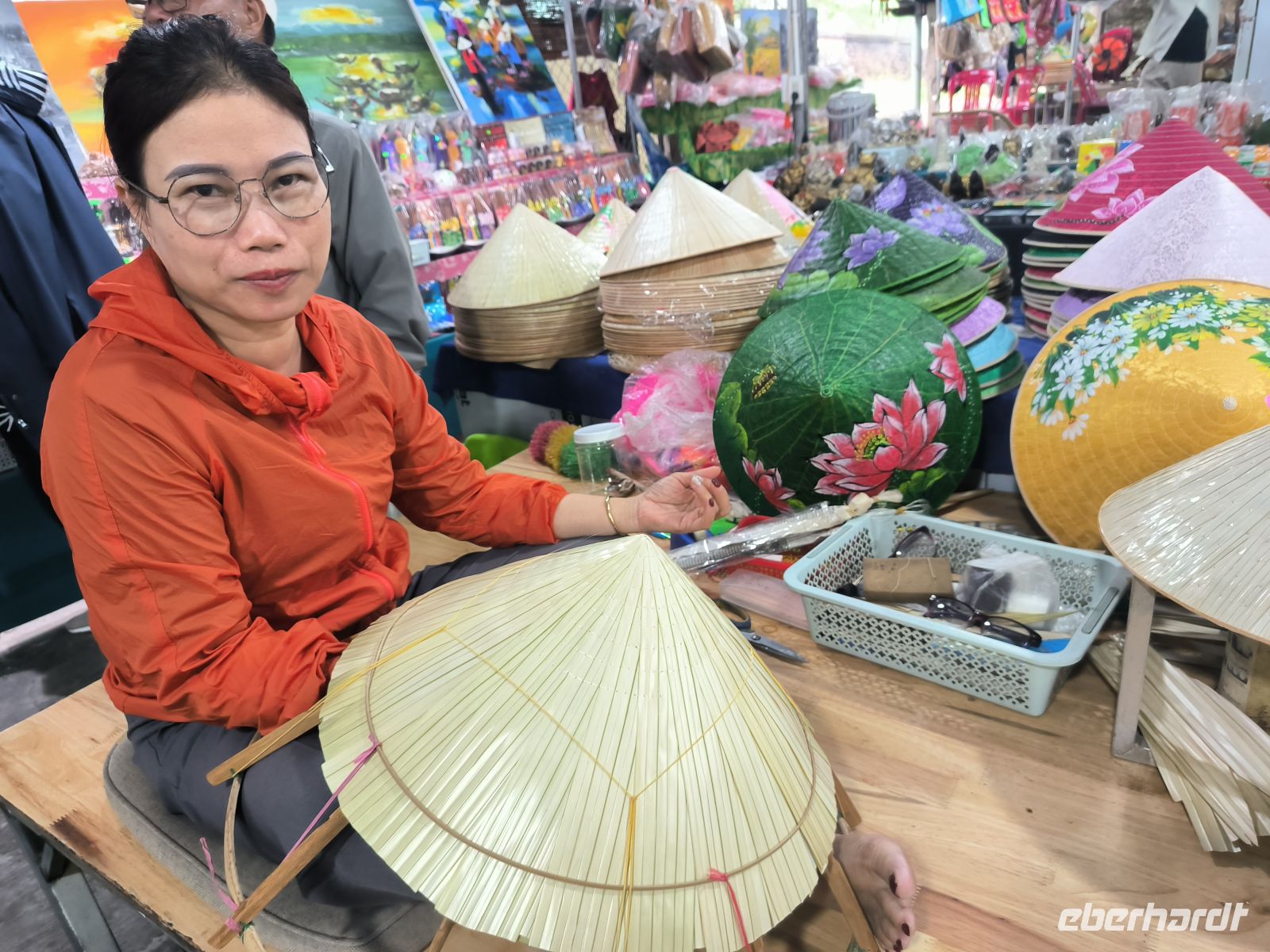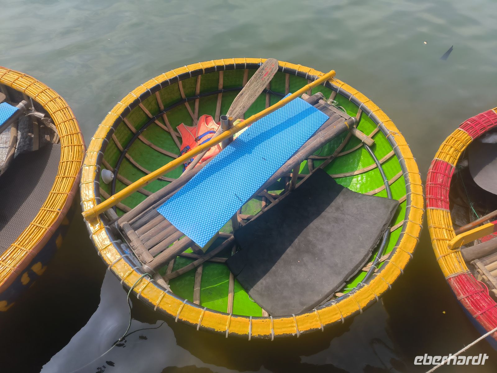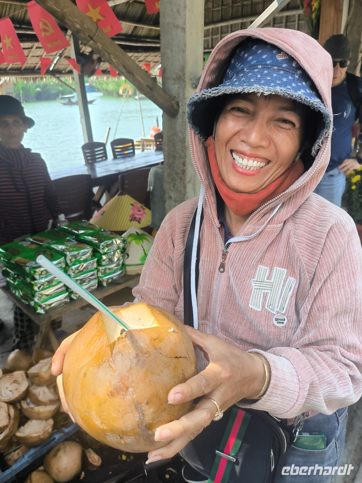 Hoi An verzaubert uns sofort mit seiner entspannten Atmosphäre. Am Vormittag entdecken wir die Stadt vom Wasser aus. Bei einer Bootsfahrt auf den runden Bambusbooten - ausgestattet mit den Tisch vietnamesischen Kopfbedeckungen - gleiten wir durch idyllische Kanäle, gesäumt von Wasserpalmen, aber auch durch den "Ballermann" Vietnams mit Musik und fast artistischen Darbietungen.
