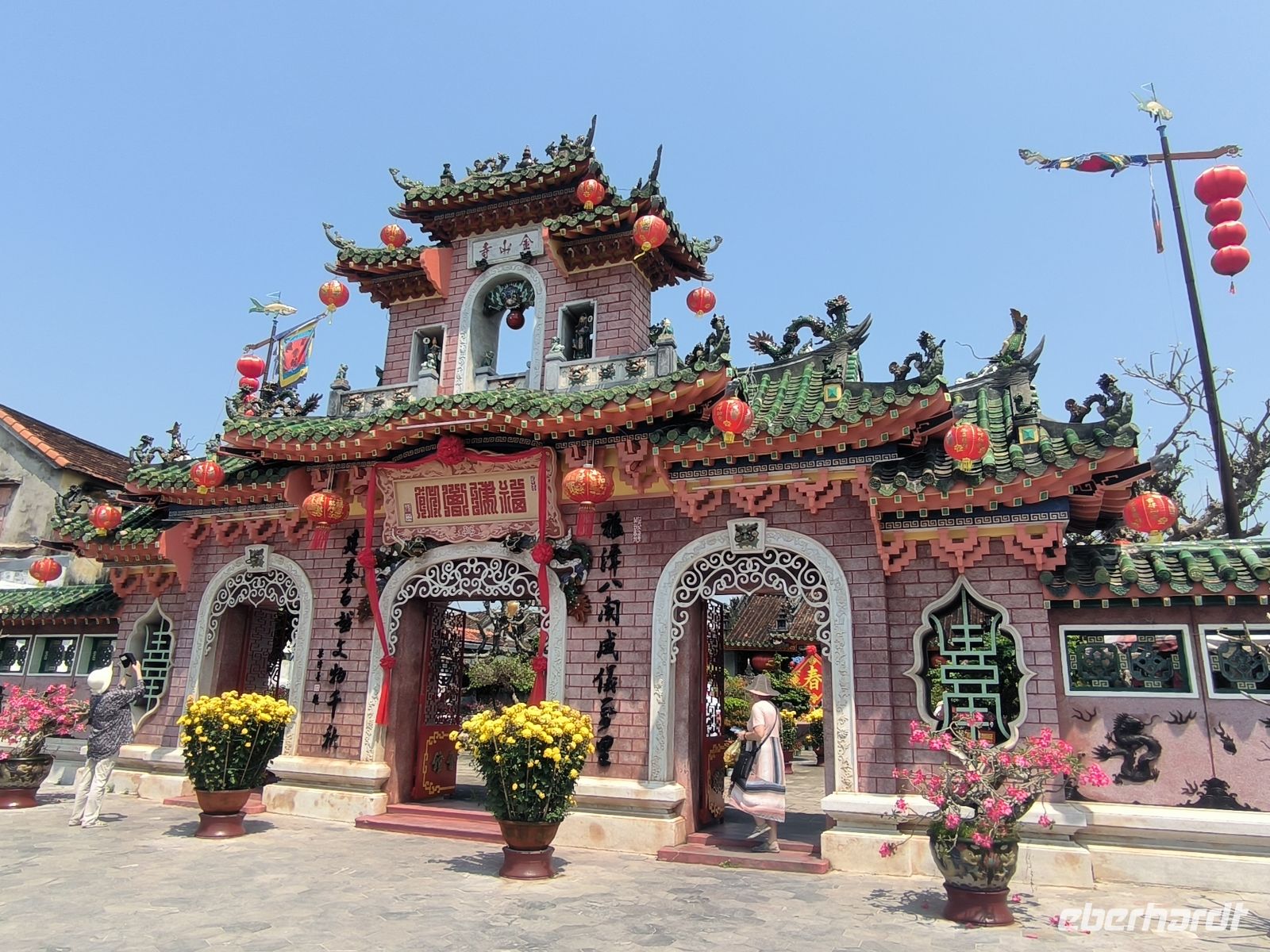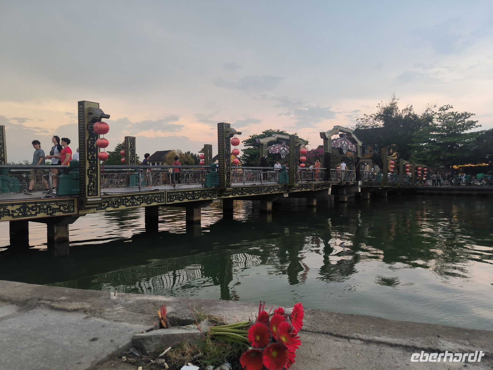 Nun schlendern wir durch die historische Altstadt, vorbei an alten Holzhäusern, Tempeln und kunstvollen Bogenbrücken. Bunte Lampions schmücken die Gassen und verleihen der Stadt einen ganz besonderen Charme. Wir besuchen die Chinesische Versammlungshalle und die berühmte Japanische Brücke, die wie kaum ein anderes Bauwerk für Hoi An steht.
