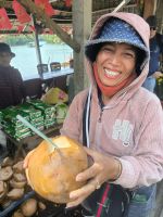 Früh am Morgen steigen wir erneut ins Boot und erleben die faszinierenden schwimmenden Märkte des Mekong-Deltas. Der Markt von Cai Rang ist der größte seiner Art: Ein lebendiges Gewusel aus kleinen Booten und großen Schiffen, beladen mit Bergen von Obst, Gemüse und anderen Waren. Schwimmende Garküchen versorgen Händler und Besucher – eine Szenerie voller Leben und Farben.