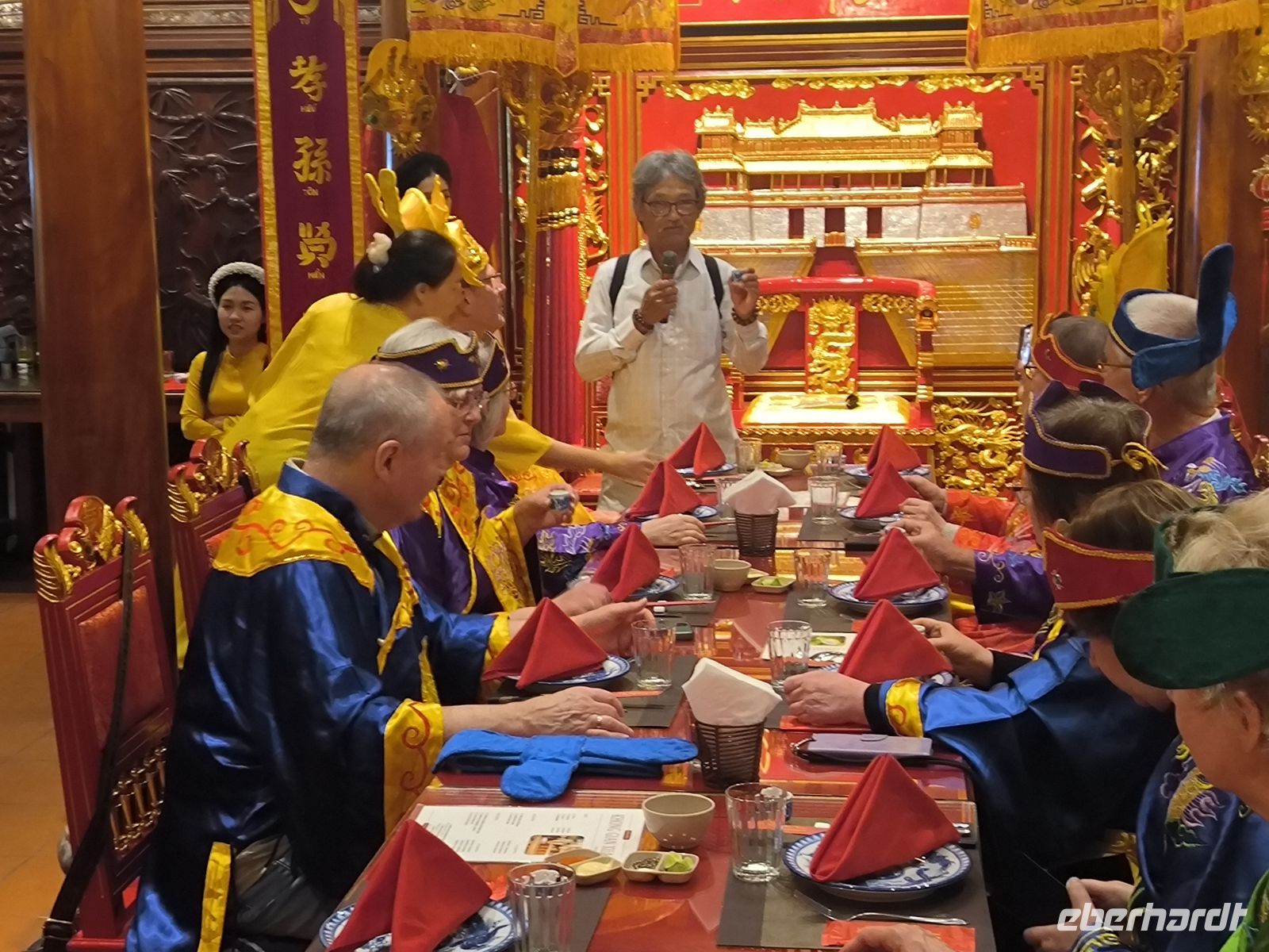 Am Abend werden wir alle zur höfischen Gesellschaft, krönen unser Kaiserpaar, lassen uns bei einem gemeinsamen Essen von traditioneller Cung-Dinh-Musik verzaubern und genießen die besondere Atmosphäre dieser ehrwürdigen Stadt.