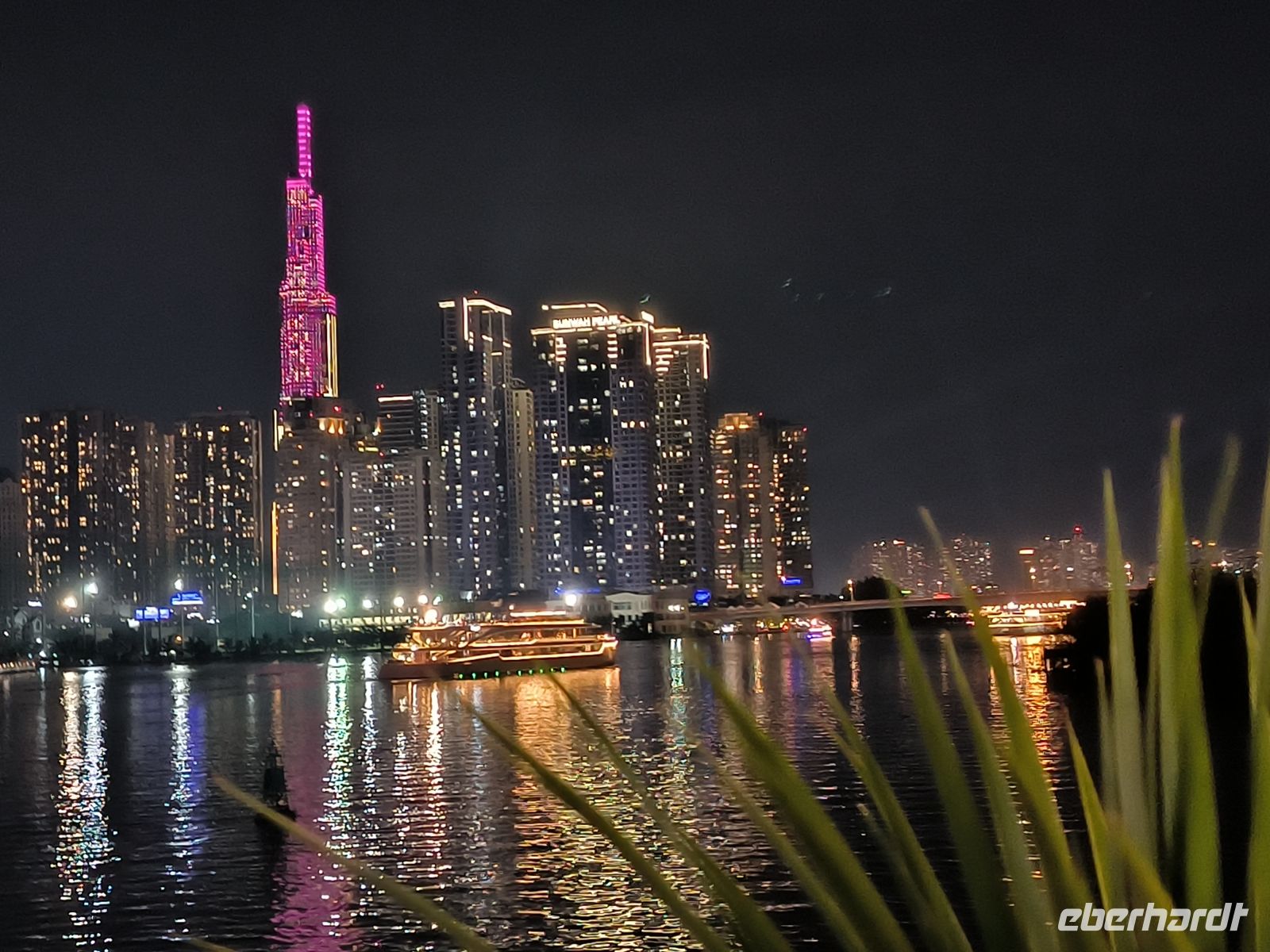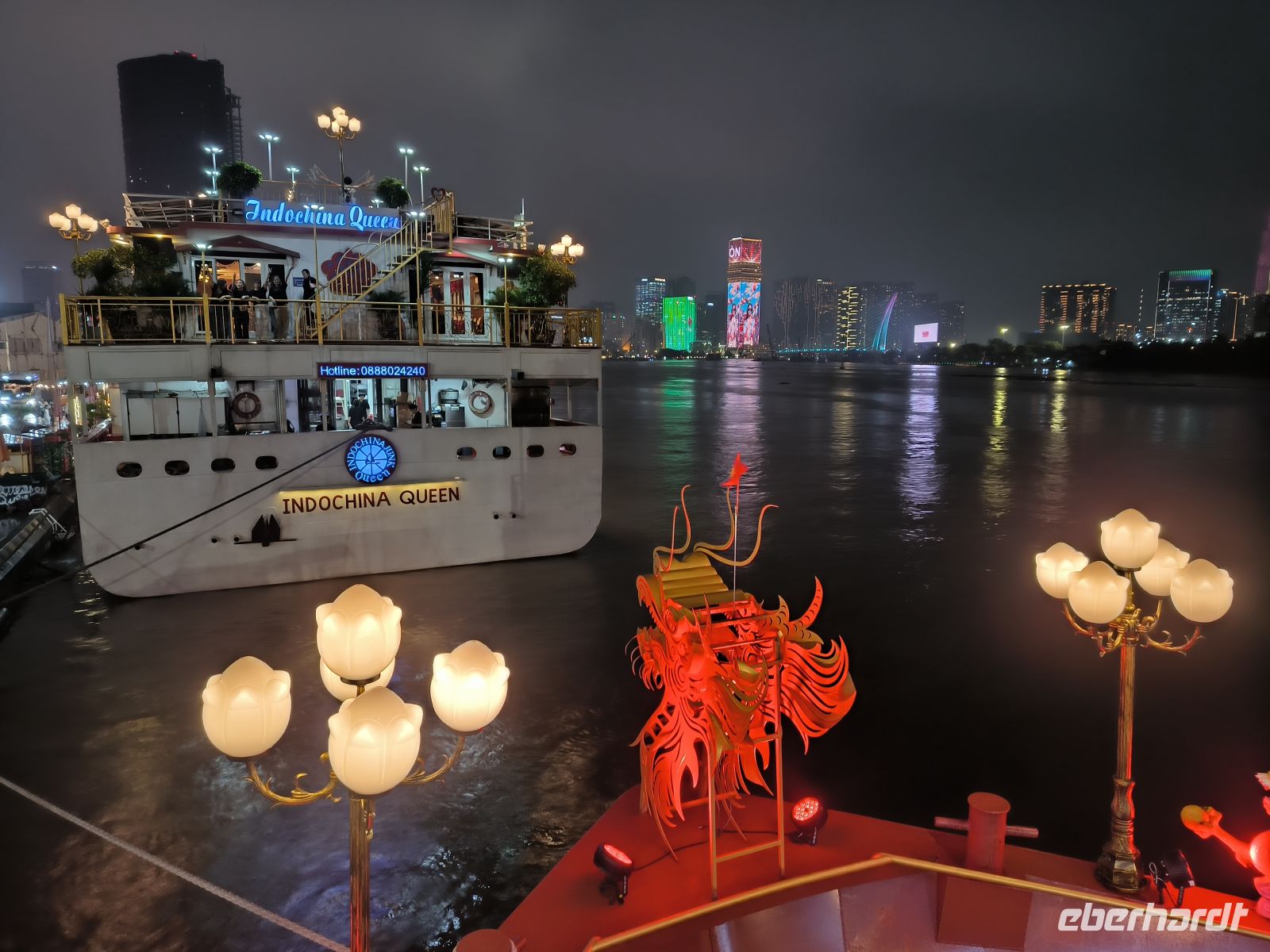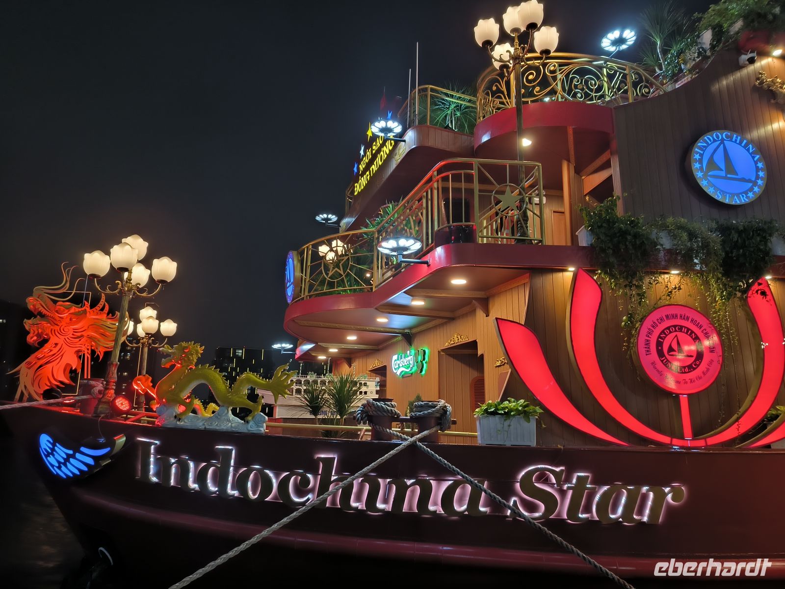 Beim Abendessen auf einem tollen Boot lassen wir den ereignisreichen Tag mit Musik und den strahlenden Lichtern der Brücken und am Ufer des Saigon - Flusses genussvoll ausklingen. Einige von uns verstärken sogar die Band auf der Bühne. Wir sind überrascht von den vielfältigen Eindrücken in dieser Stadt.