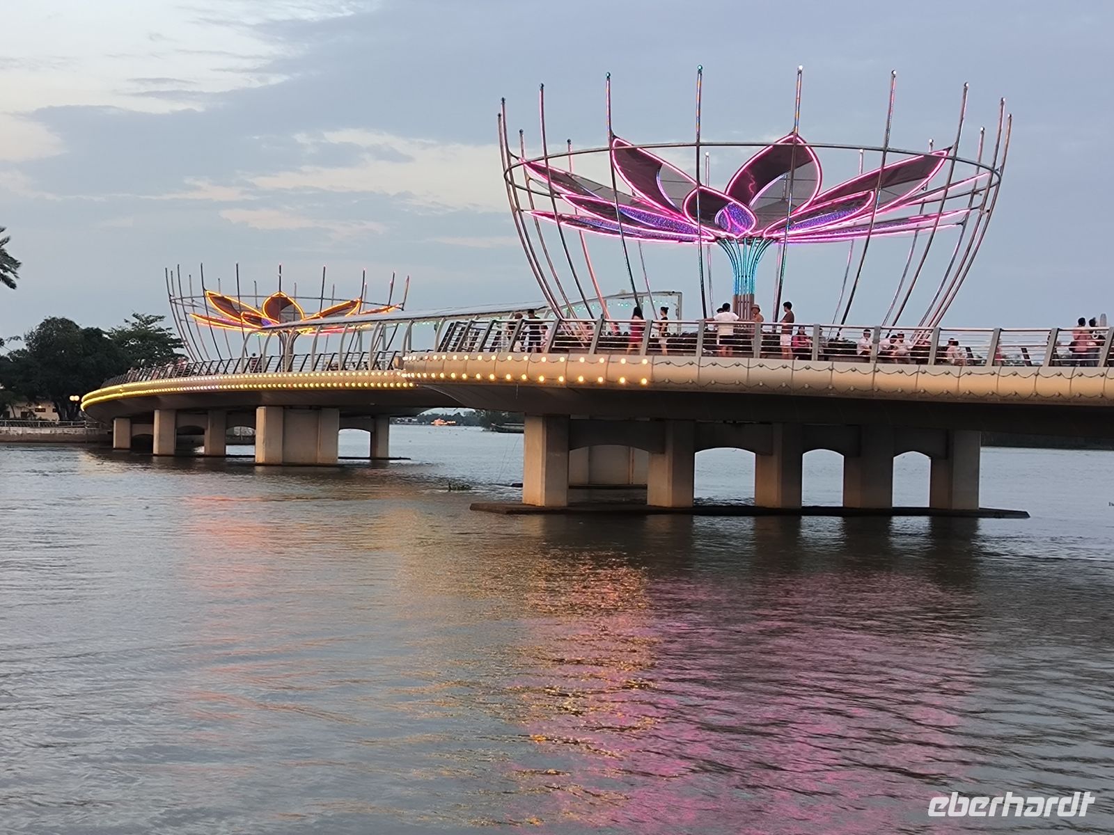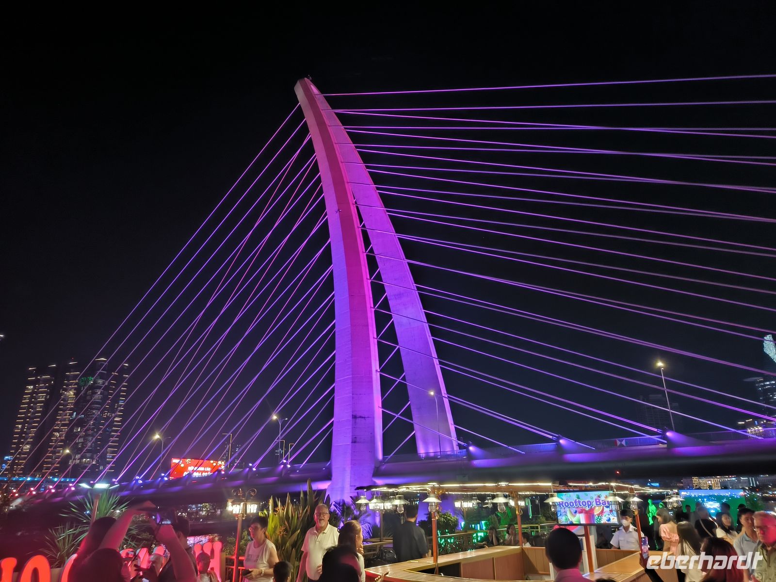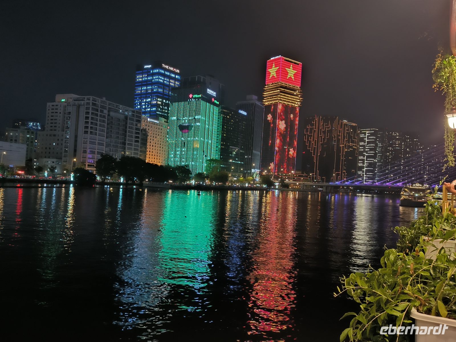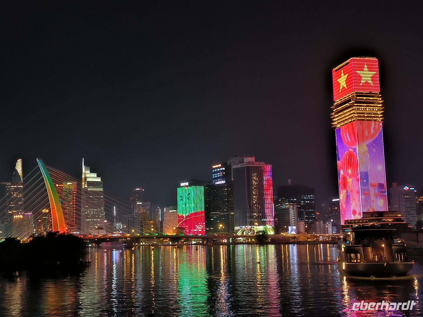 Beim Abendessen auf einem tollen Boot lassen wir den ereignisreichen Tag mit Musik und den strahlenden Lichtern der Brücken und am Ufer des Saigon - Flusses genussvoll ausklingen. Einige von uns verstärken sogar die Band auf der Bühne. Wir sind überrascht von den vielfältigen Eindrücken in dieser Stadt.