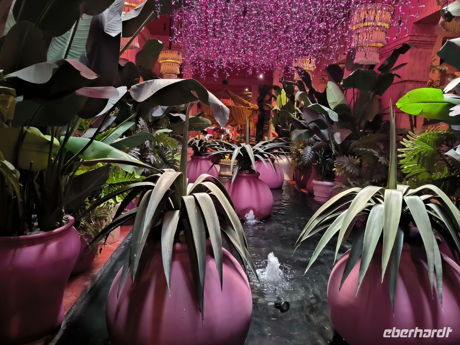 Zum Abendessen fahren wir mit einem kleinen Bus in die Zitadelle. In diesem Restaurant isst das Auge mit. Alle Gerichte sind wunderschön dekoriert - und schmecken köstlich.