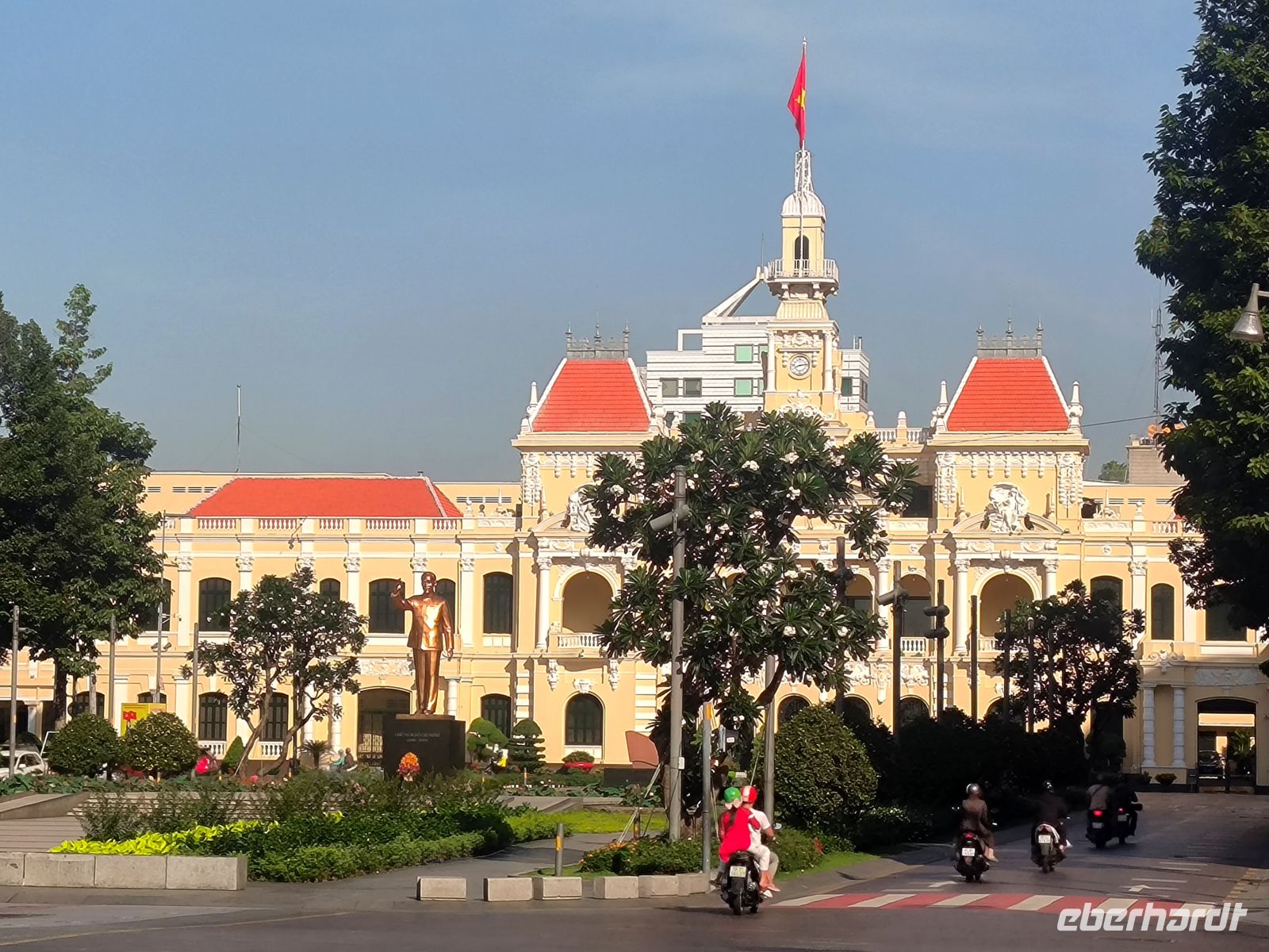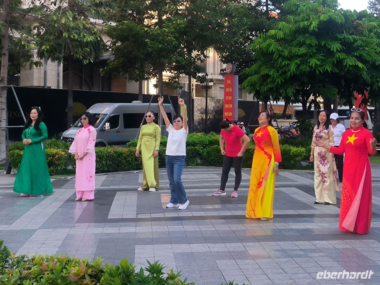 Bevor wir Saigon am Morgen verlassen, erhaschen wir noch einen Blick auf das Opernhaus und das Rathaus. Einheimische beginnen den Tag mit Tai Chi.