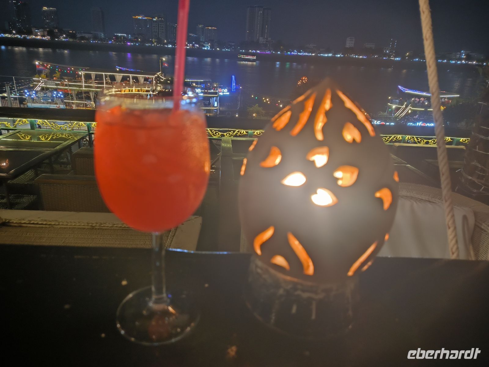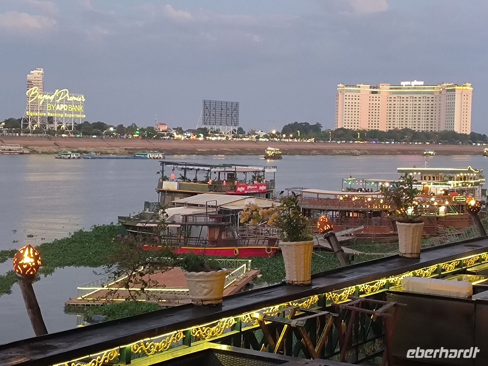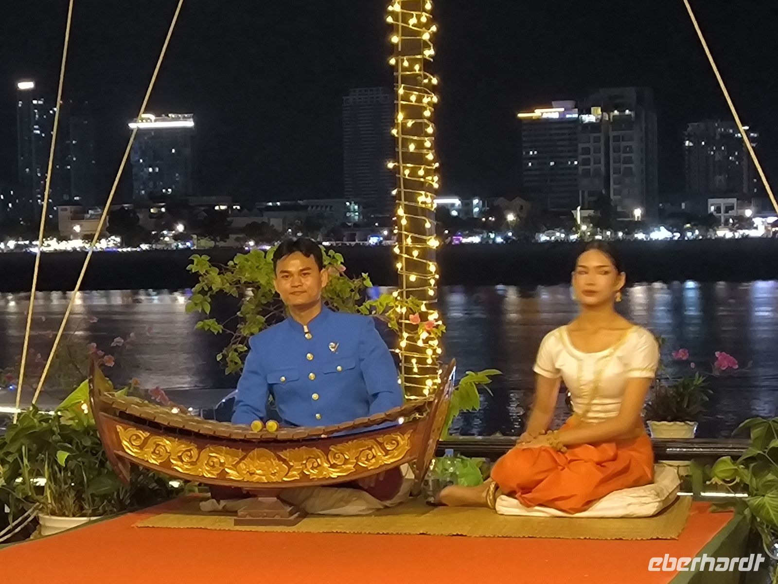Das Abendessen genießen wir direkt am Fluss, erstmals mit typisch kambodschanischer Küche. Eine Tänzerin bewegt sich sehr grazil zu khmerischen Klängen.