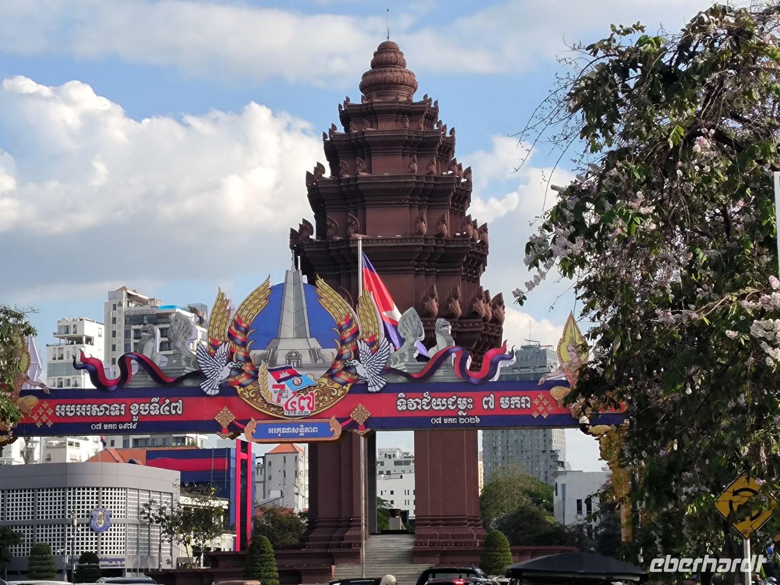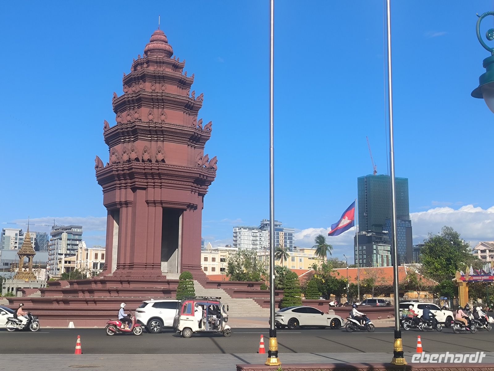 Bei unserer Stadtrundfahrt entdecken wir Phnom Penh, eine Stadt, die noch heute deutlich von der französischen Kolonialzeit geprägt ist. Das 1958 errichtete Unabhängigkeitsdenkmal erinnert an die fünf Jahre zuvor erfolgte Unabhängigkeitserklärung des Landes Kambodscha von Frankreich und soll visuell an die Tempel in Angkor erinnern. Ein Höhepunkt ist der Besuch des prachtvollen Königspalasts mit der berühmten Silber-Pagode. Der Boden aus Tausenden silbernen Fliesen und der goldene, mit über 2.000 Edelsteinen verzierte Buddha lassen uns staunen. Fotos dürfen wir in der Pagode leider nicht machen.