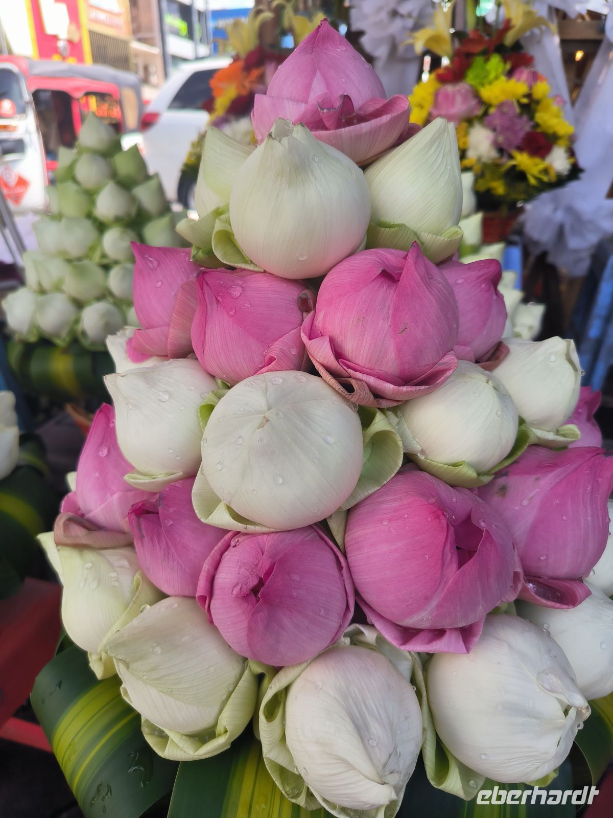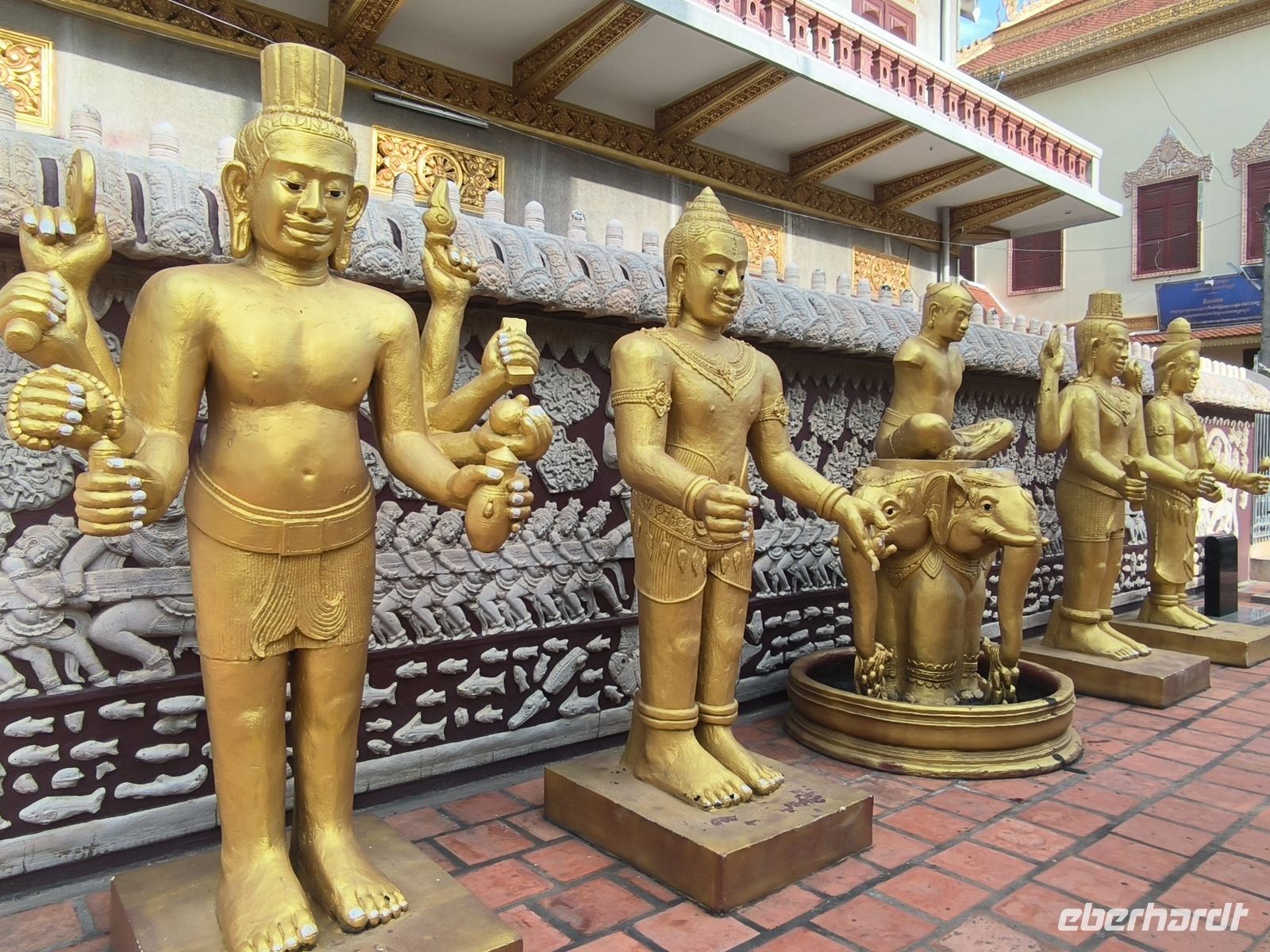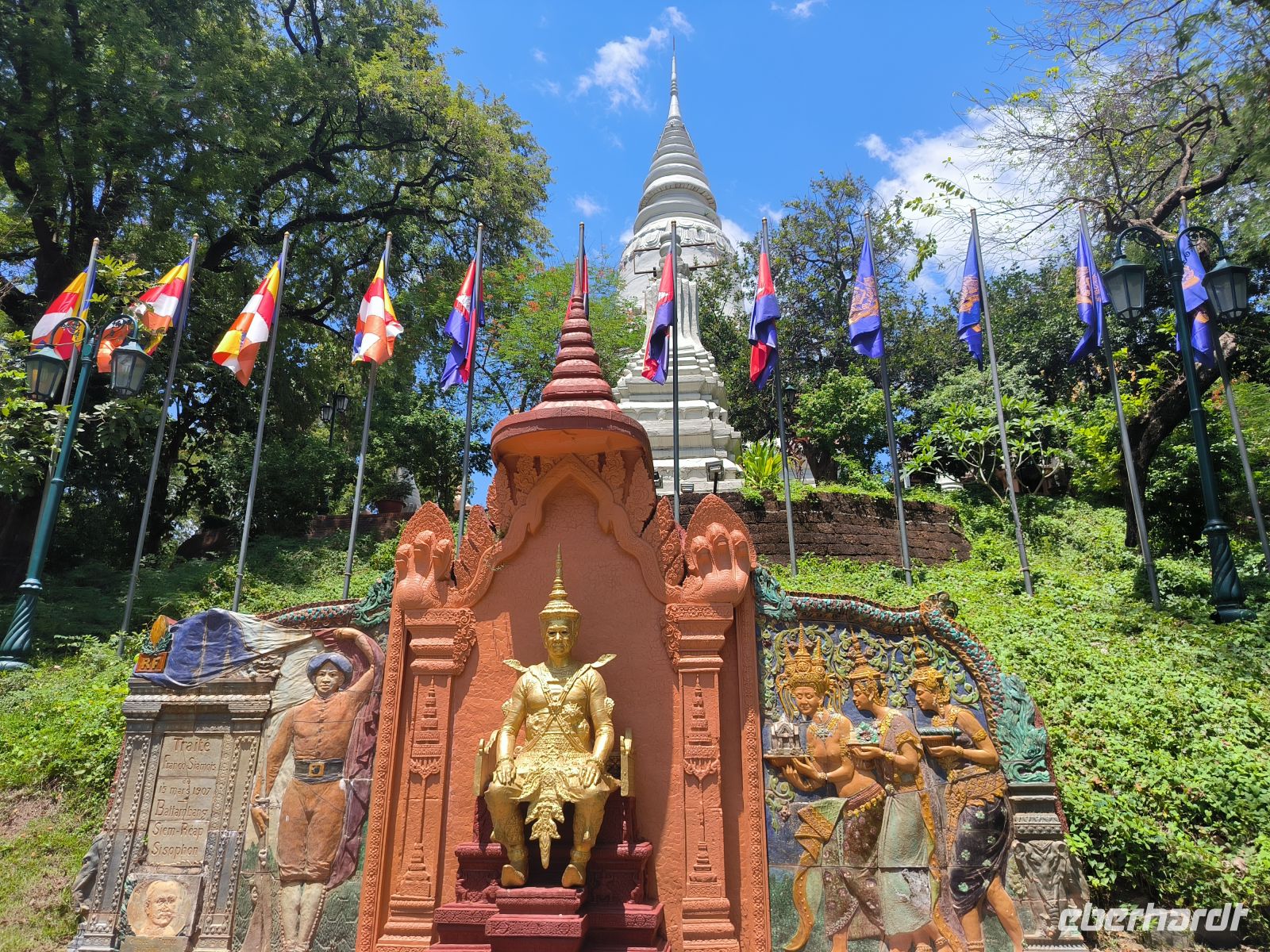 Im Nationalmuseum Kambodschas tauchen wir tief in die Welt der Khmer-Kunst ein und bewundern einzigartige Exponate aus verschiedenen Epochen, Skulpturen aus Sandstein. Dann besuchen wir in 27 Metern Höhe den Wat Phnom - Tempel, das wichtigste Heiligtum der Stadt und Namensgeber Phnom Penhs, auch Hügelpagode genannt. Hier spüren wir die spirituelle Bedeutung dieses Ortes besonders intensiv, Samnang beglückt uns mit gesegneten Geldscheinen.