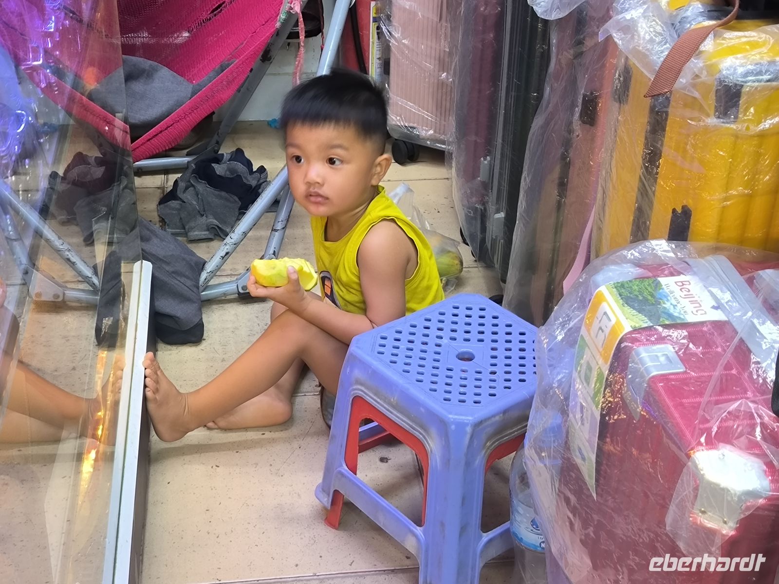 Früh am Morgen nehmen immerhin unsere Zwillinge am Tai-Chi-Kurs mit Ben an Deck teil, umgeben von tausenden Inseln und steilen Felsen. Dann fahren uns die Tenderboote zu unserem Ausflug zur Überraschungshöhle. Die zweitgrößte Höhle Vietnams fasziniert mit wundersamen Gebilden, Stalagmiten und Stalaktiten.