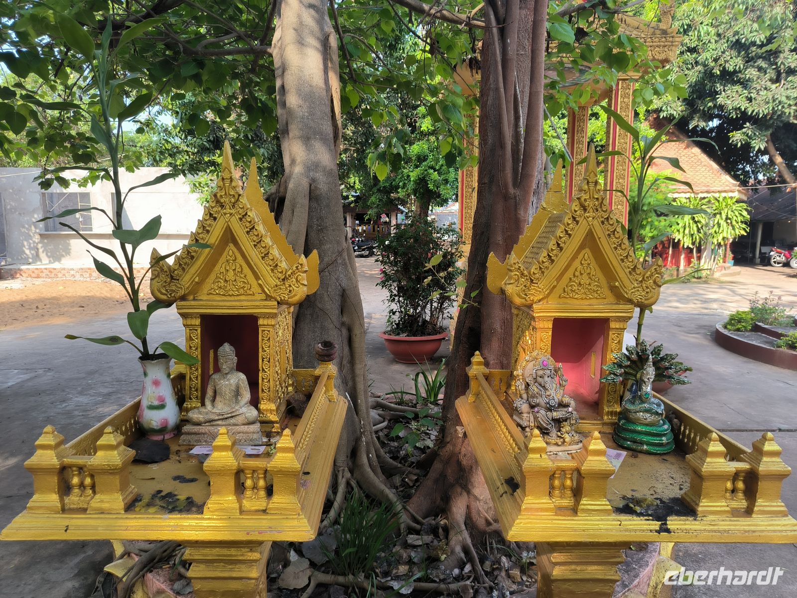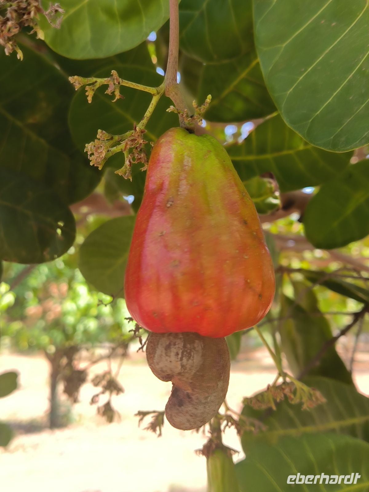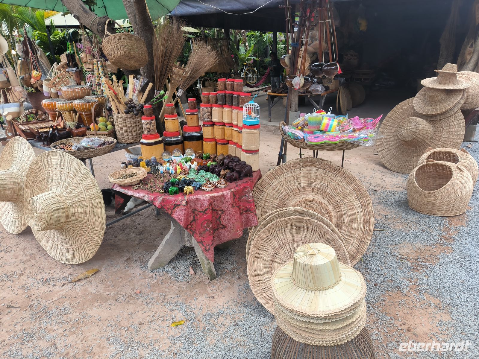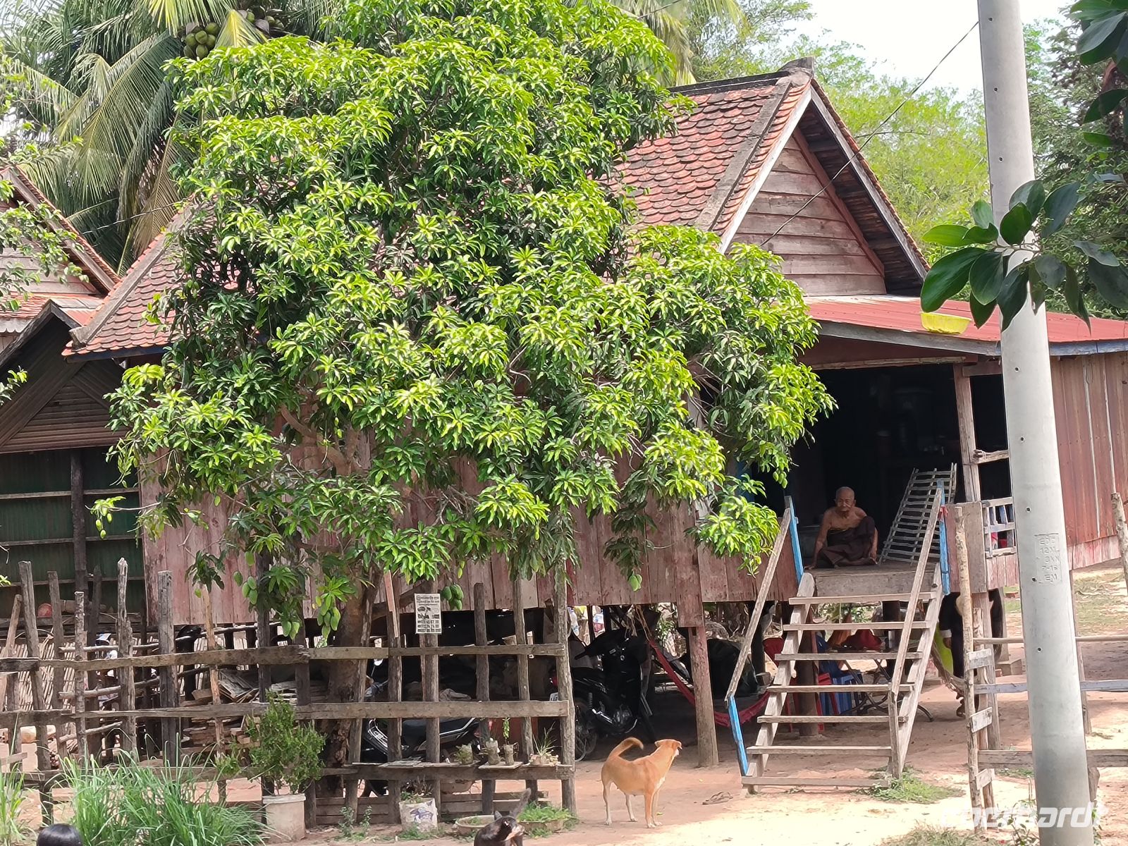 Vorbei an ländlichen Dörfern und weiten Landschaften bekommen wir authentische Einblicke in das ursprüngliche Leben der Menschen. Die typischen Häuser der Khmer stehen auf Stelzen, in unteren Bereich wird gelebt, gearbeitet und das Moped geparkt. Die Armut ist unübersehbar. Eine Familie im Silberdorf handelt mit Dingen aus Silber, während die Kinder bereits zu Hause das Handwerk erlernen. Bei einem kurzen Stopp könnten wir auch Vogelspinnen oder Kakerlaken kosten, machen wir aber nicht. Interessanter sind da schon die Früchte des Cashew-Nussbaums.