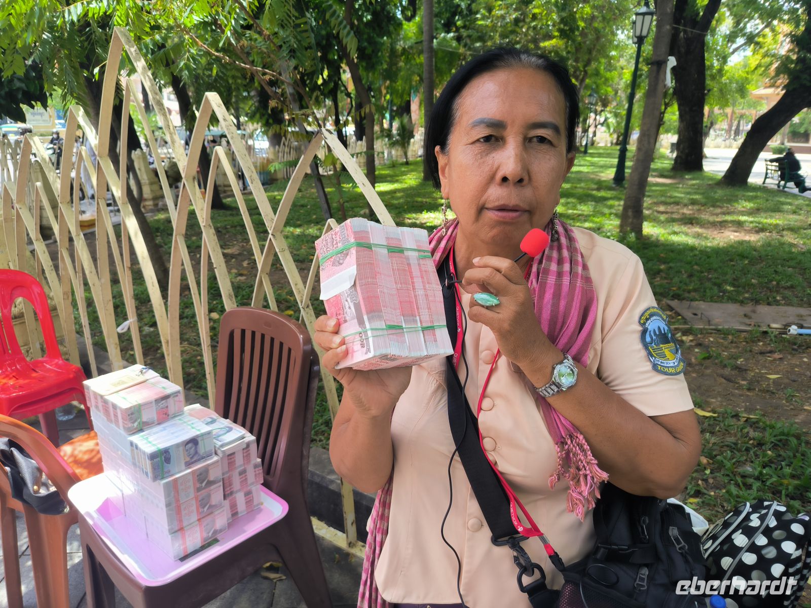 Ein ganz besonderer Moment ist die Grenzüberquerung zwischen Vietnam und Kambodscha. Hier können wir auch Geld tauschen, noch den vietnamesischen Dong-Millionen müssen wir uns nun auf kambodschanische Riel einstellen.