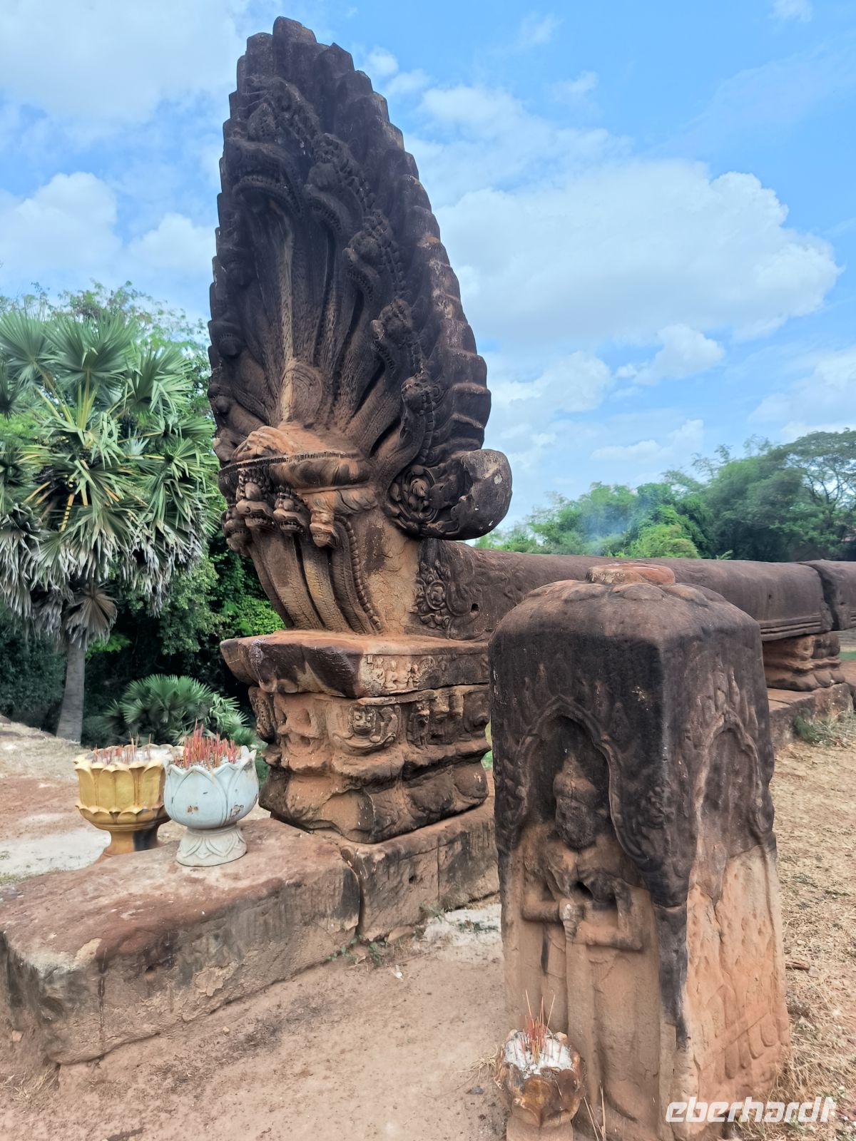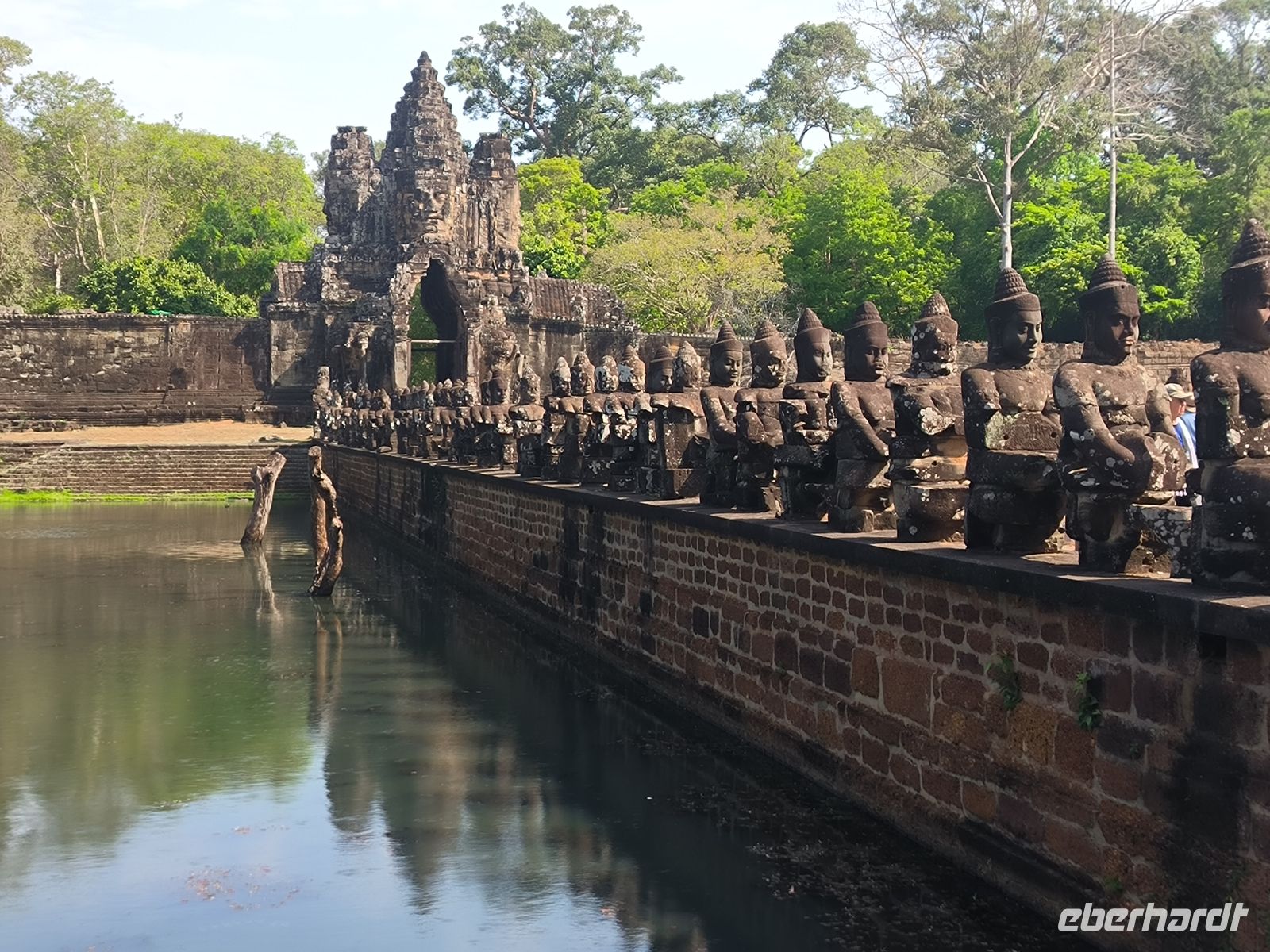Vor der Mittagspause überqueren wir die historische (unkaputtbare) Naga-Brücke aus dem 12. Jahrhundert – ein beeindruckendes Zeugnis alter Baukunst aus Sandstein. Dann verabschieden wir uns von Samnang und begrüßen später unseren neuen Guide Kim.