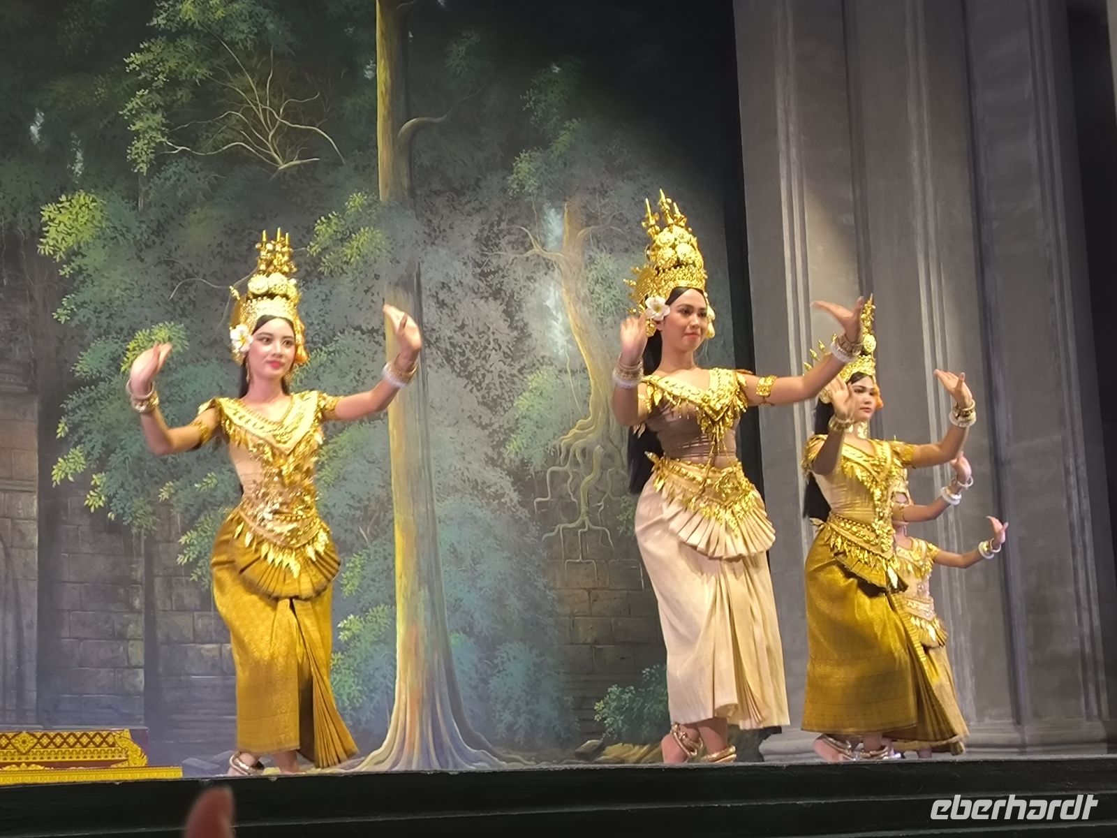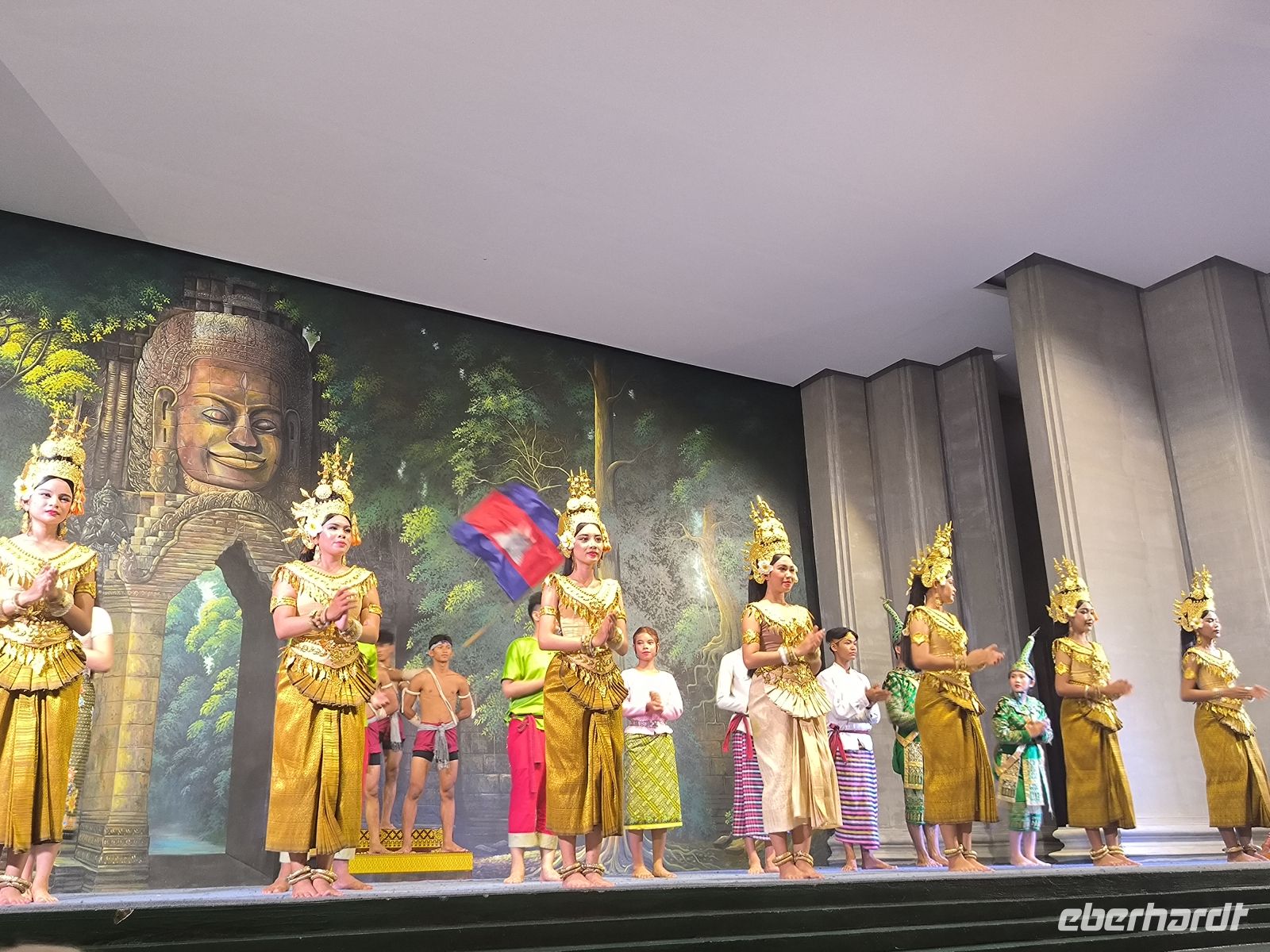 Am Abend erleben wir neben einem riesigen Buffet mit allerlei Köstlichkeiten die traditionelle Apsara-Tanzshow – ein würdiger und stimmungsvoller Abschluss dieses besonderen Tages.