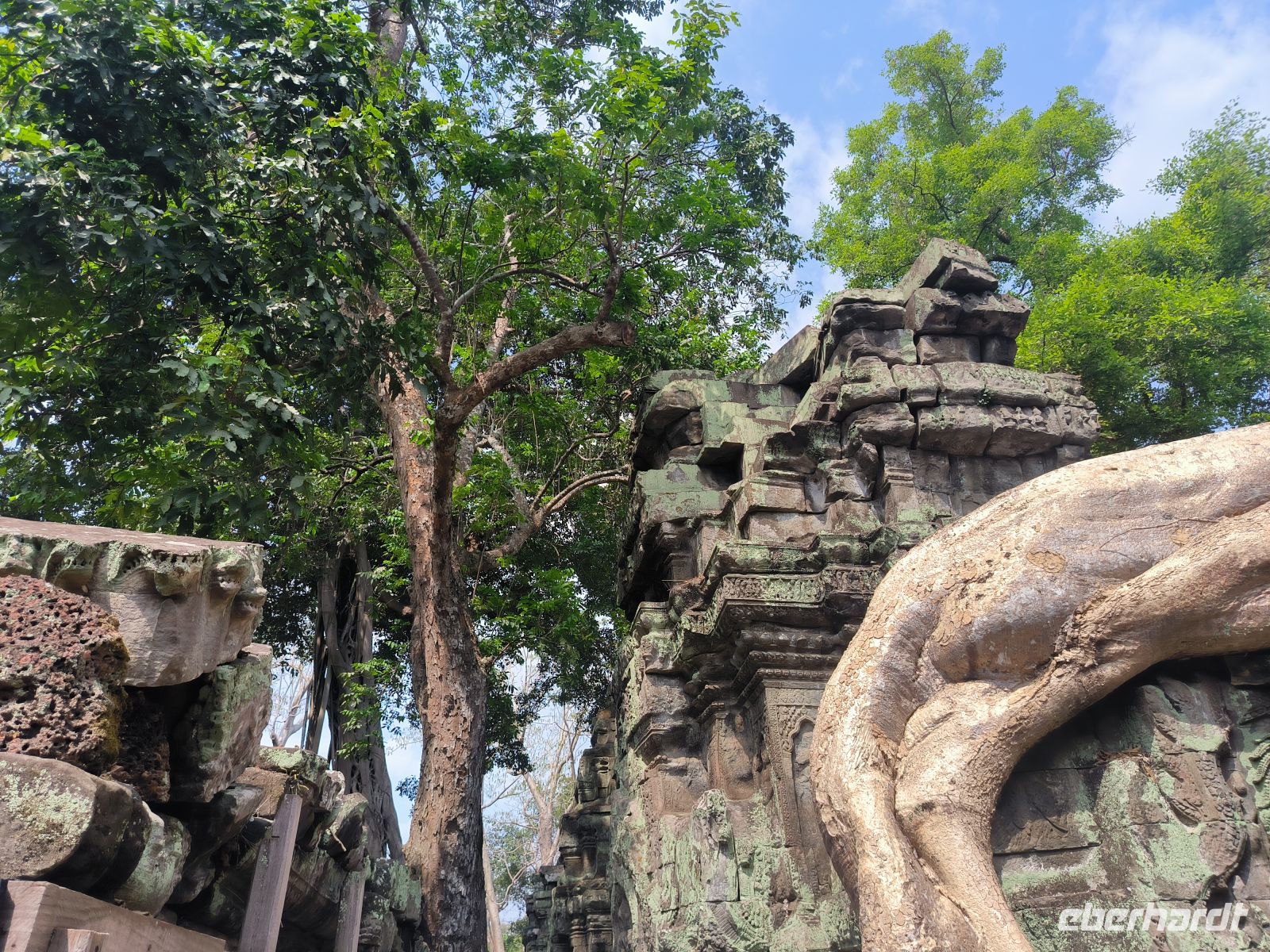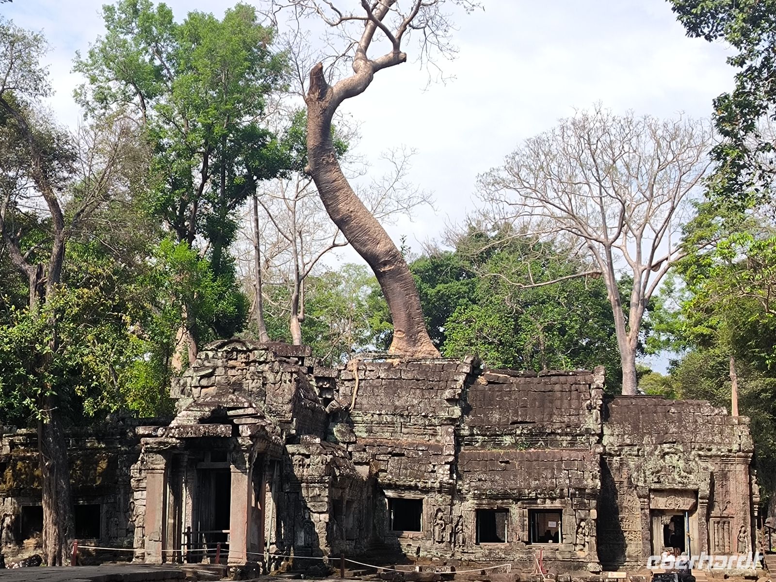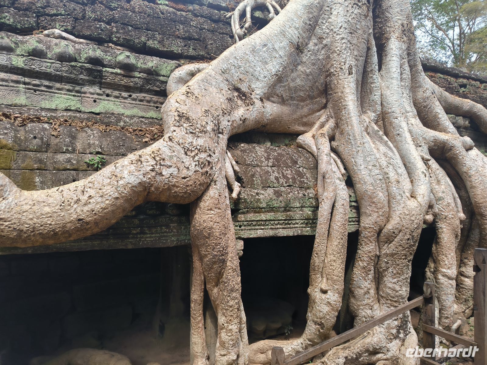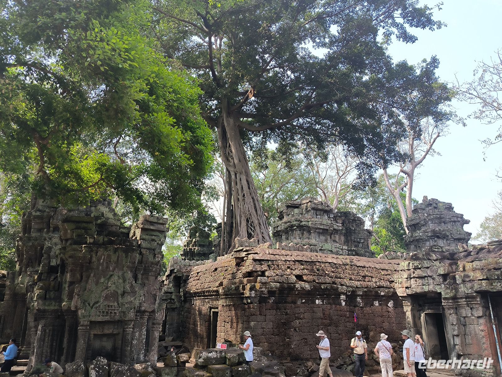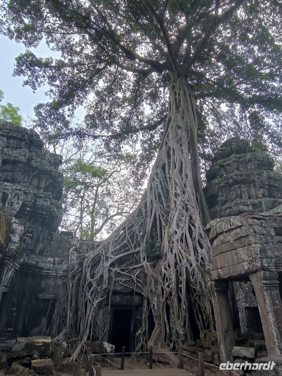 Heute heißt es wieder sehr früh aufstehen, der Sonnenaufgang in Angkor Wat verspricht, sensationell zu werden. In tiefer Dunkelheit kommen wir an und dann verändert sich im Minutentakt die Lichtstimmung, bis endlich die Sonne über der Anlage steht. Nach dem Frühstück besuchen wir den berühmten Dschungeltempel Ta Prohm. Gewaltige Baumwurzeln haben sich über die Ruinen gelegt und verleihen dem Tempel eine fast mystische Atmosphäre. Die Verbindung von Natur und Architektur mit den Würgefeigen (Ficus virens) und die noch größeren Tetrameles nudiflora, deren Wurzeln ganze Gebäude überwachsen, ist hier besonders eindrucksvoll. Die Ruinen dienten auch als Kulisse für den Lara Croft - Film "Tomb Raider".