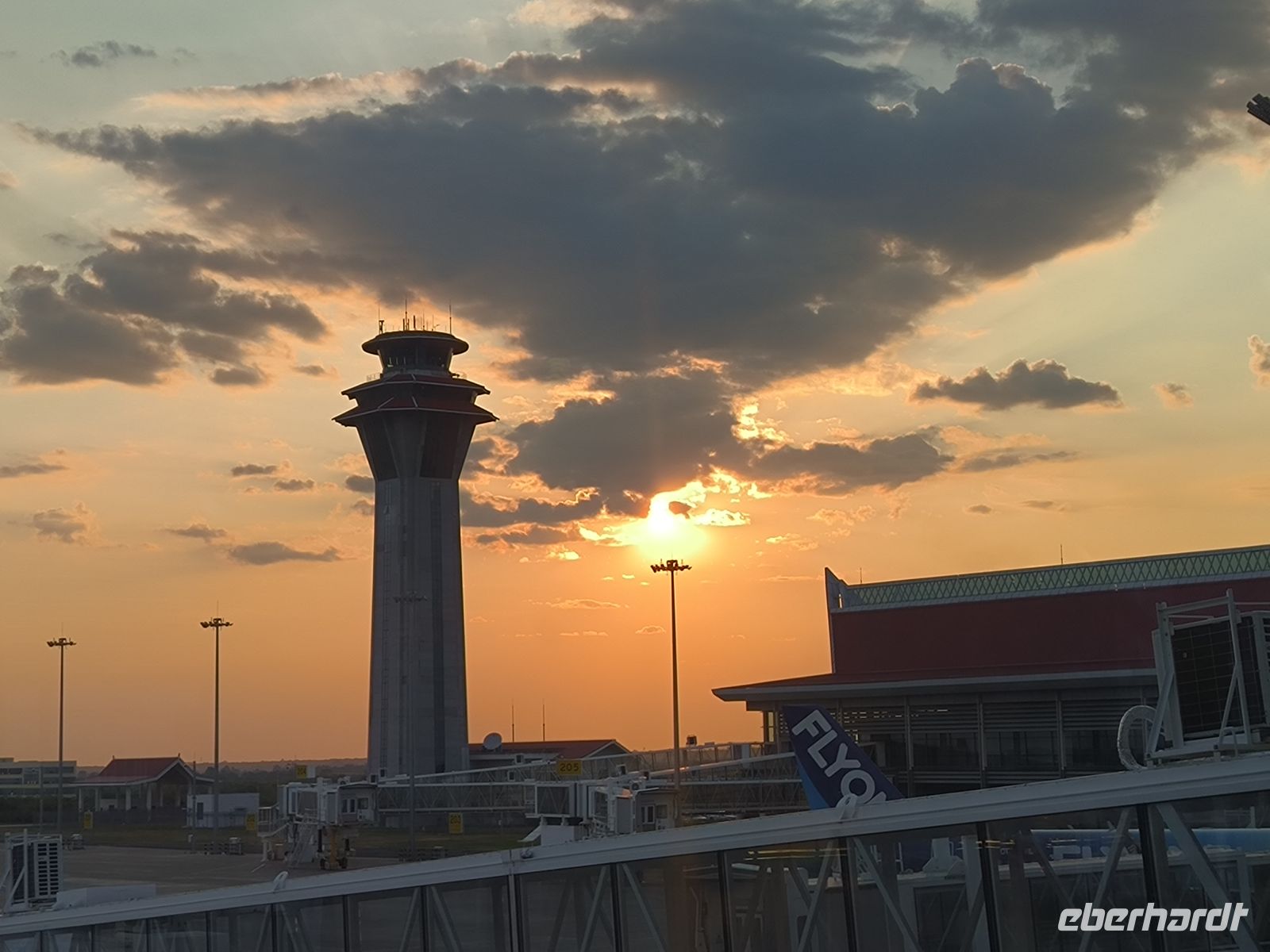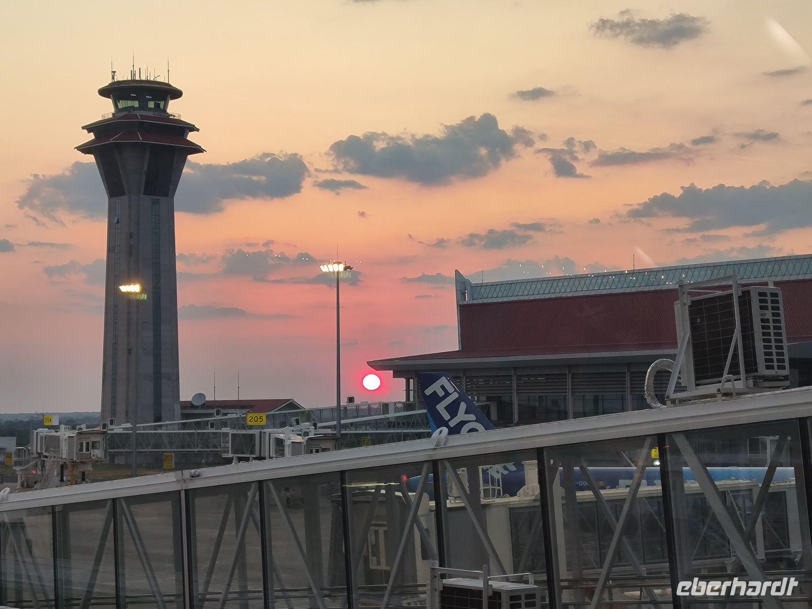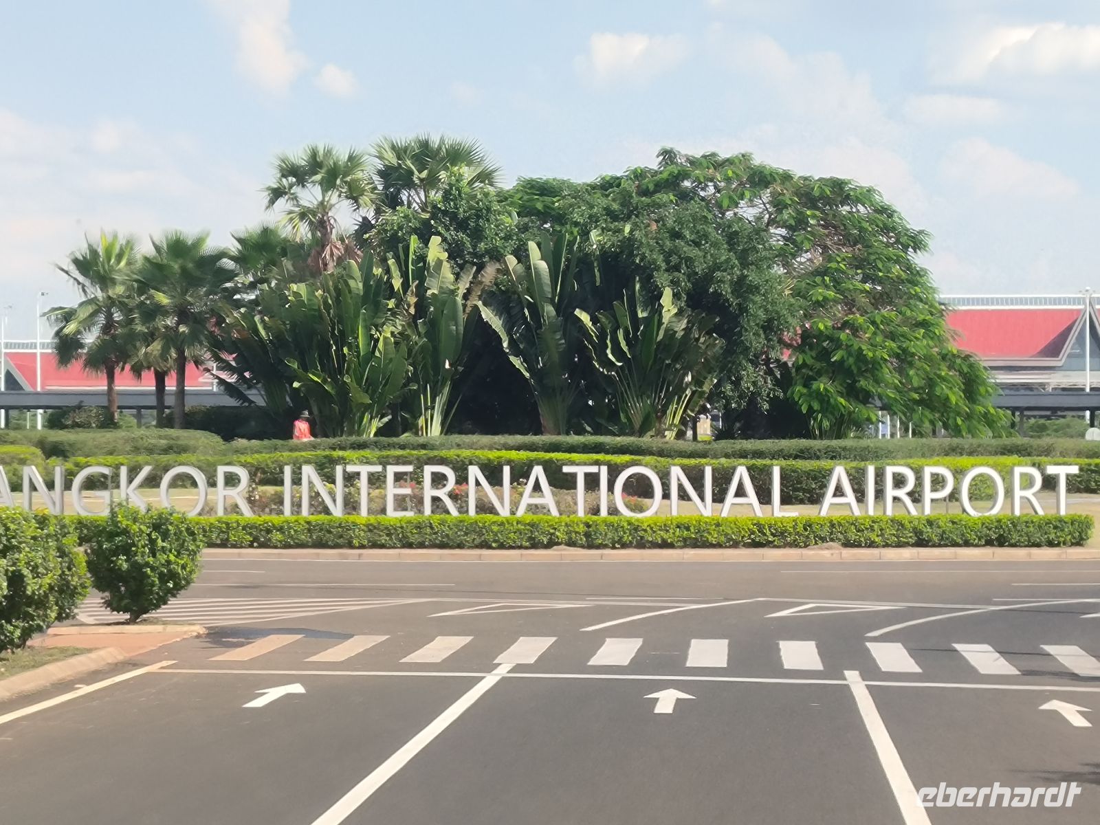 Nach einem leckeren letzten Mittagessen fahren wir die schnurgerade Straße zum neuen Flughafen von Siem Reap. Dort verabschieden wir unseren sympathischen Guide Kim und den Busfahrer.