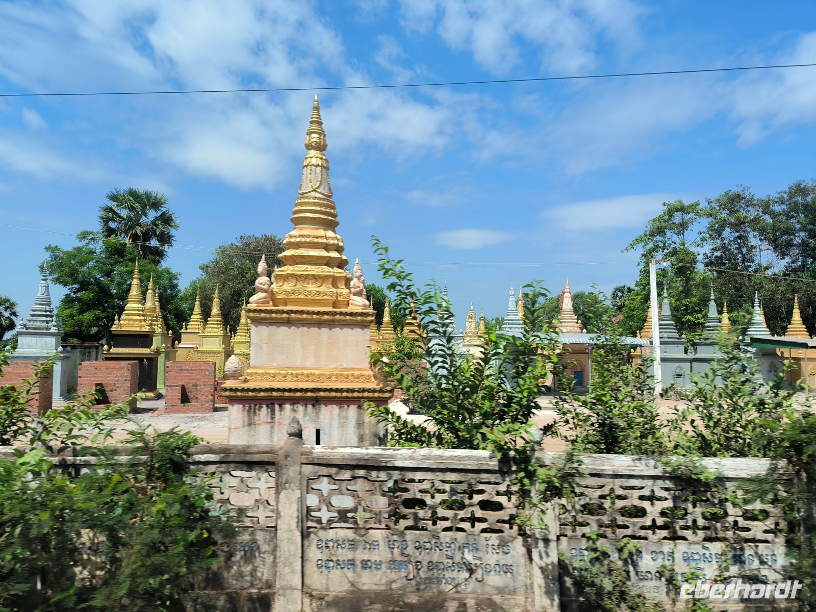 Unsere Rundreise führt uns heute mit dem Bus weiter durch das kambodschanische Landesinnere. Samnang erzählt aus der Geschichte Kambodschas, die Zeit, in der Pol Pot als „Bruder Nr. 1“ der politische und militärische Führer der Roten Khmer einen riesigen Genozid zu verantworten hatte.