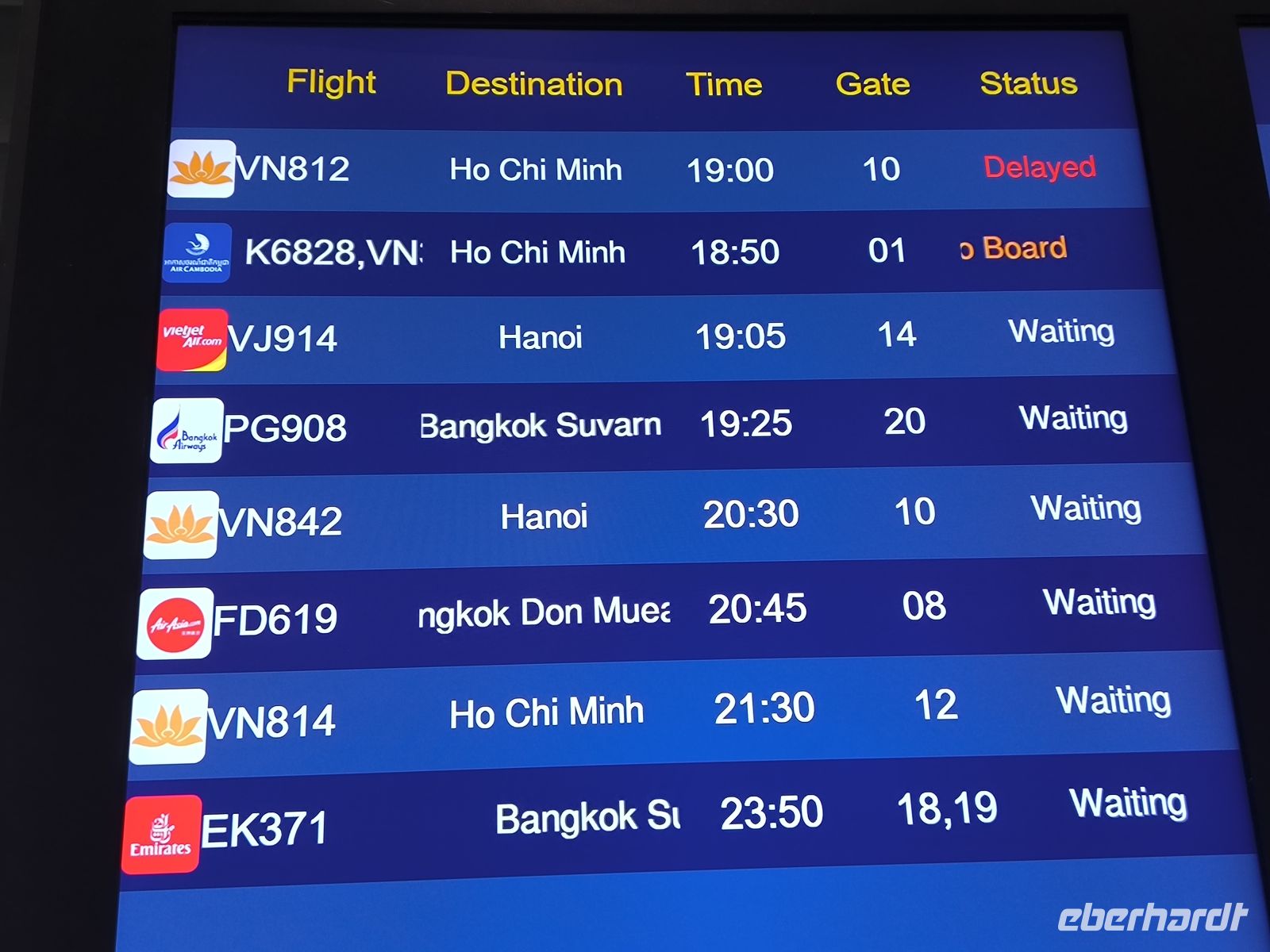 Unser Flug nach Saigon hat ein bisschen Verspätung, aber wir haben genügend Umsteigezeit. Kurz vor Mitternacht sitzen wir im Flugzeug, das uns zurück nach Europa bringt. Glücklicherweise betreffen uns die kriegsbedingten Unruhen nicht.