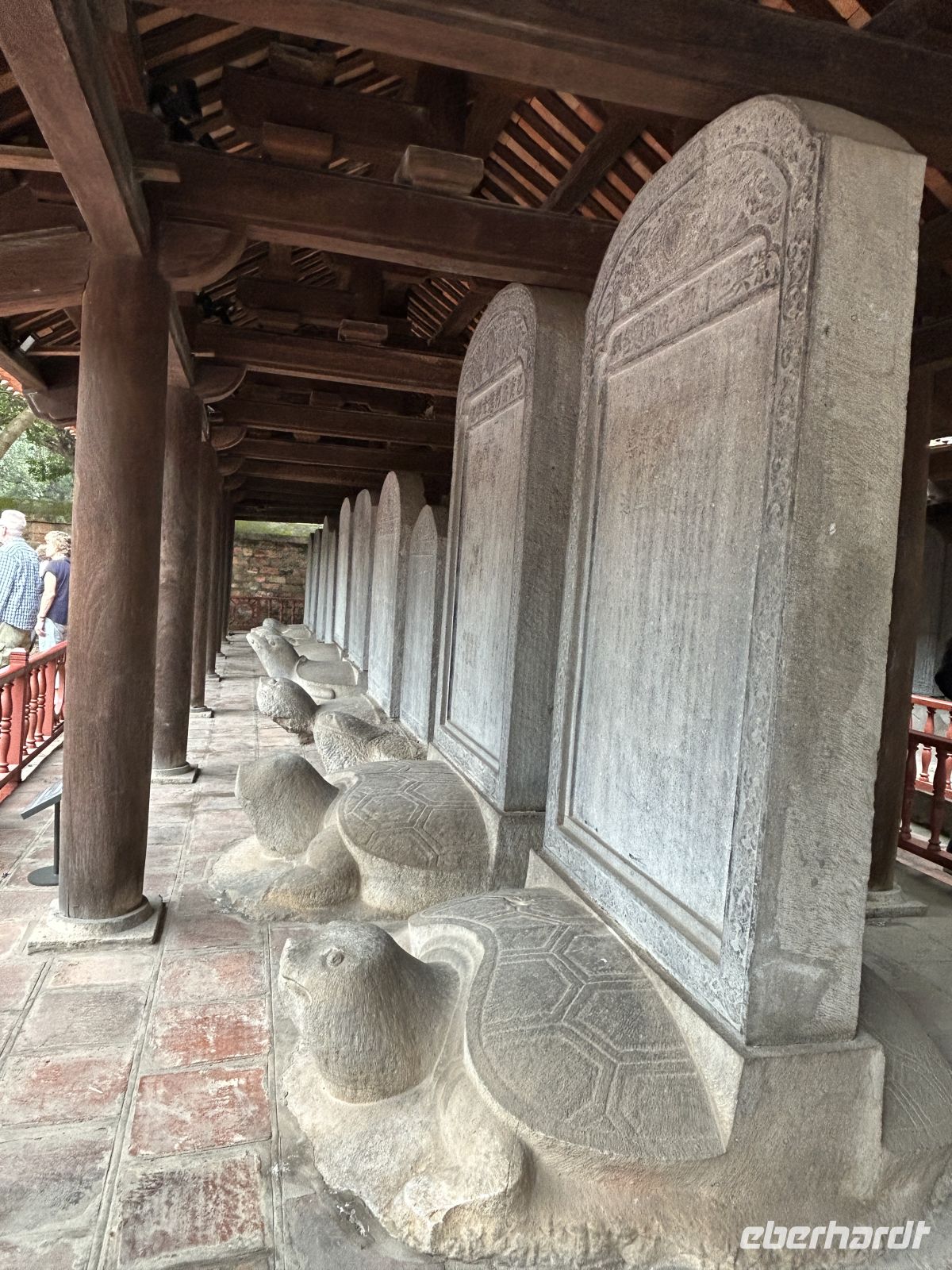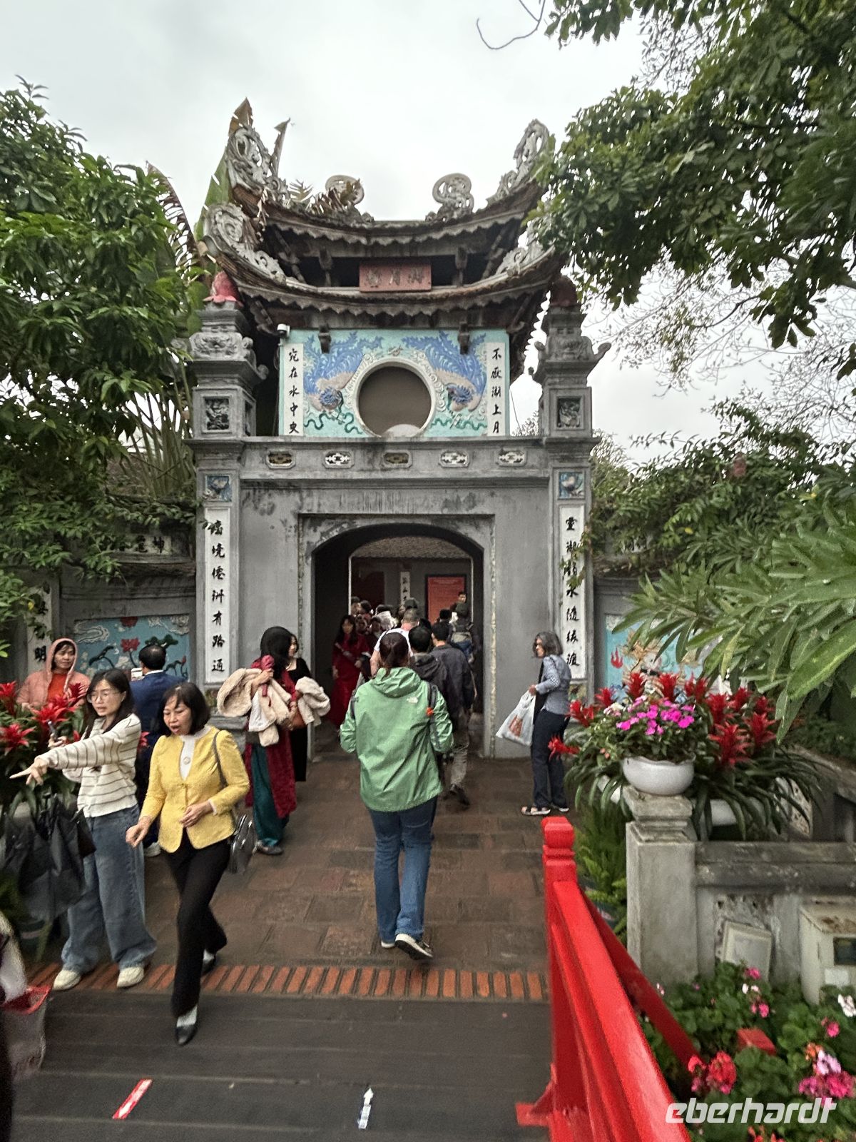 Über die leuchtend rote Brücke erreichen wir den Tempel Ngoc Son (Jadeberg) auf der kleinen Insel – ein Ort der Ruhe inmitten des Trubels. In einer Glasvitrine können wir zwei über 250kg schwere Schildkröten bestaunen. Glaubt man den offiziellen Angaben, wurden diese aus dem Hoan Kiem See geborgen und sie sollen über 400 Jahre alt sein.