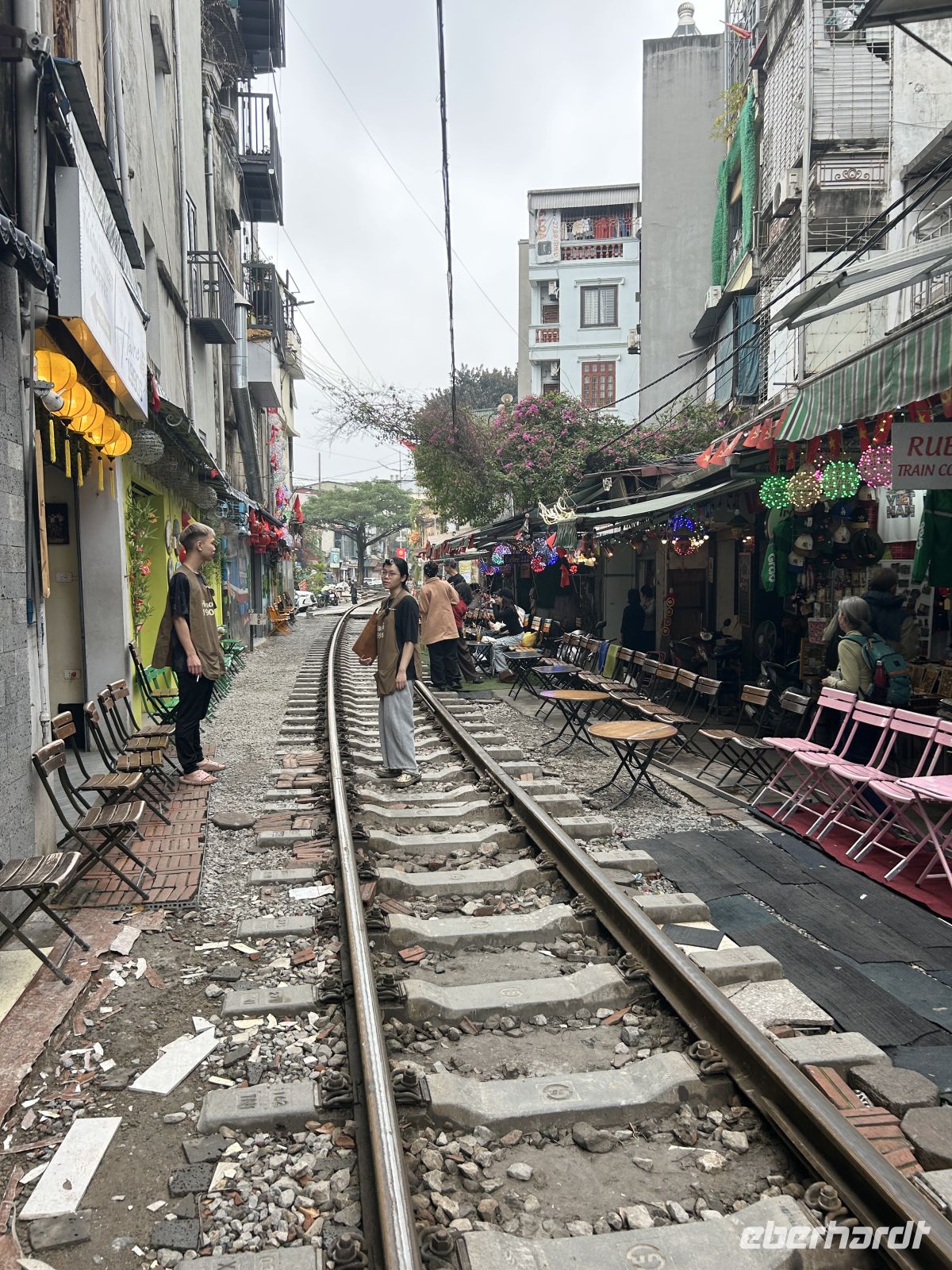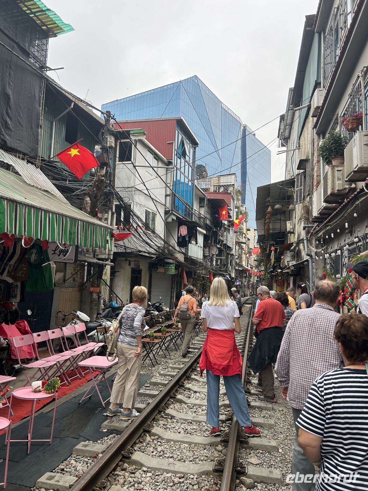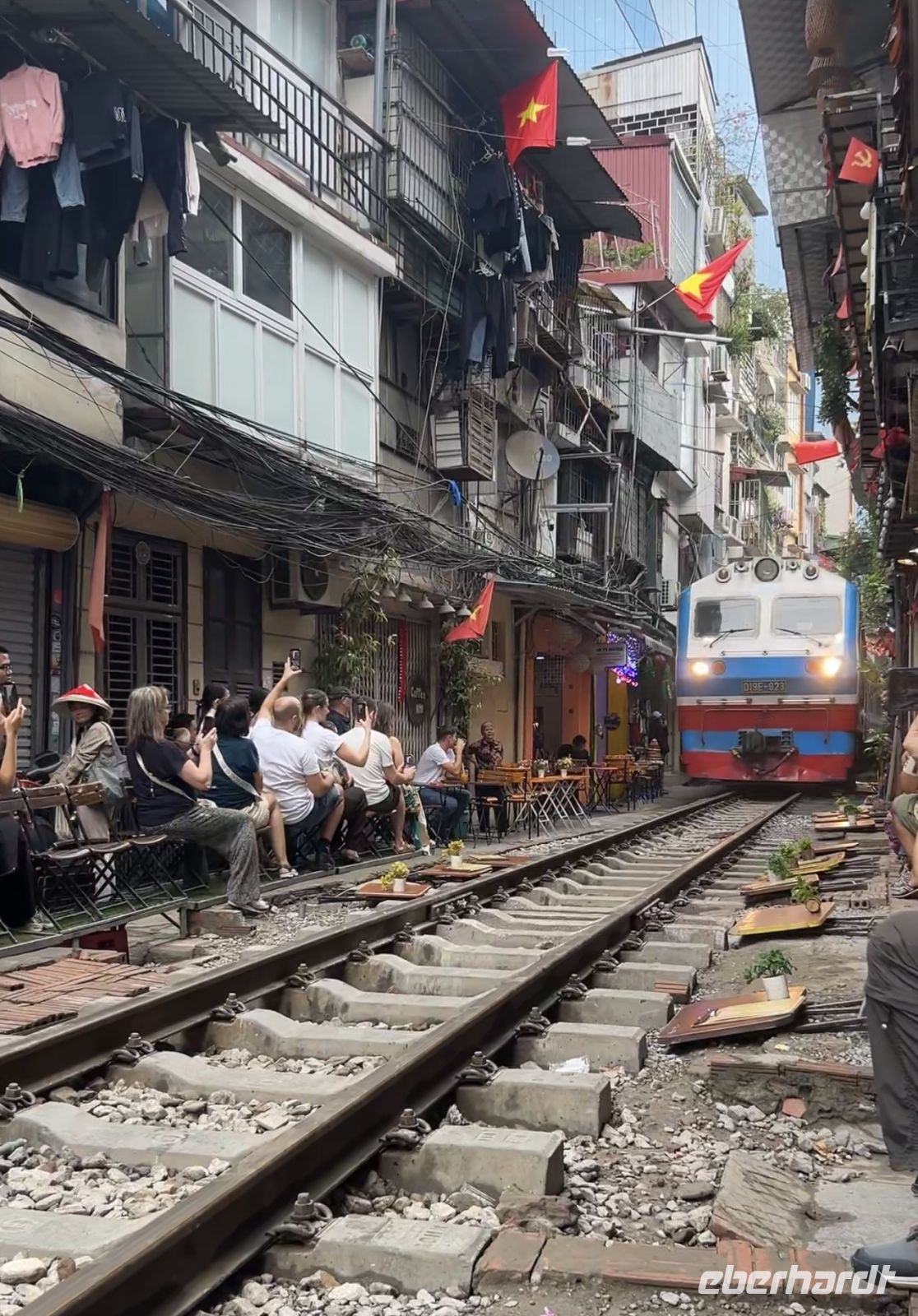Dann folgt ein unerwartetes und aufregendes Highlight, das gar nicht im Programm steht: die berühmte Train Street. Eine schmale Straße gesäumt von Läden und Cafés, durch die tatsächlich ein Zug fährt – so nah, dass wir ihn berühren könnten. Als der Zug durch die enge Gasse rauscht, halten wir den Atem an. Ein laaaanger Moment voller Adrenalin und Staunen. Wow!!! Ja, es ist ein kurzes, aber sehr besonderes Erlebnis. Wir genießen noch einen Kaffee – und weiter geht es!