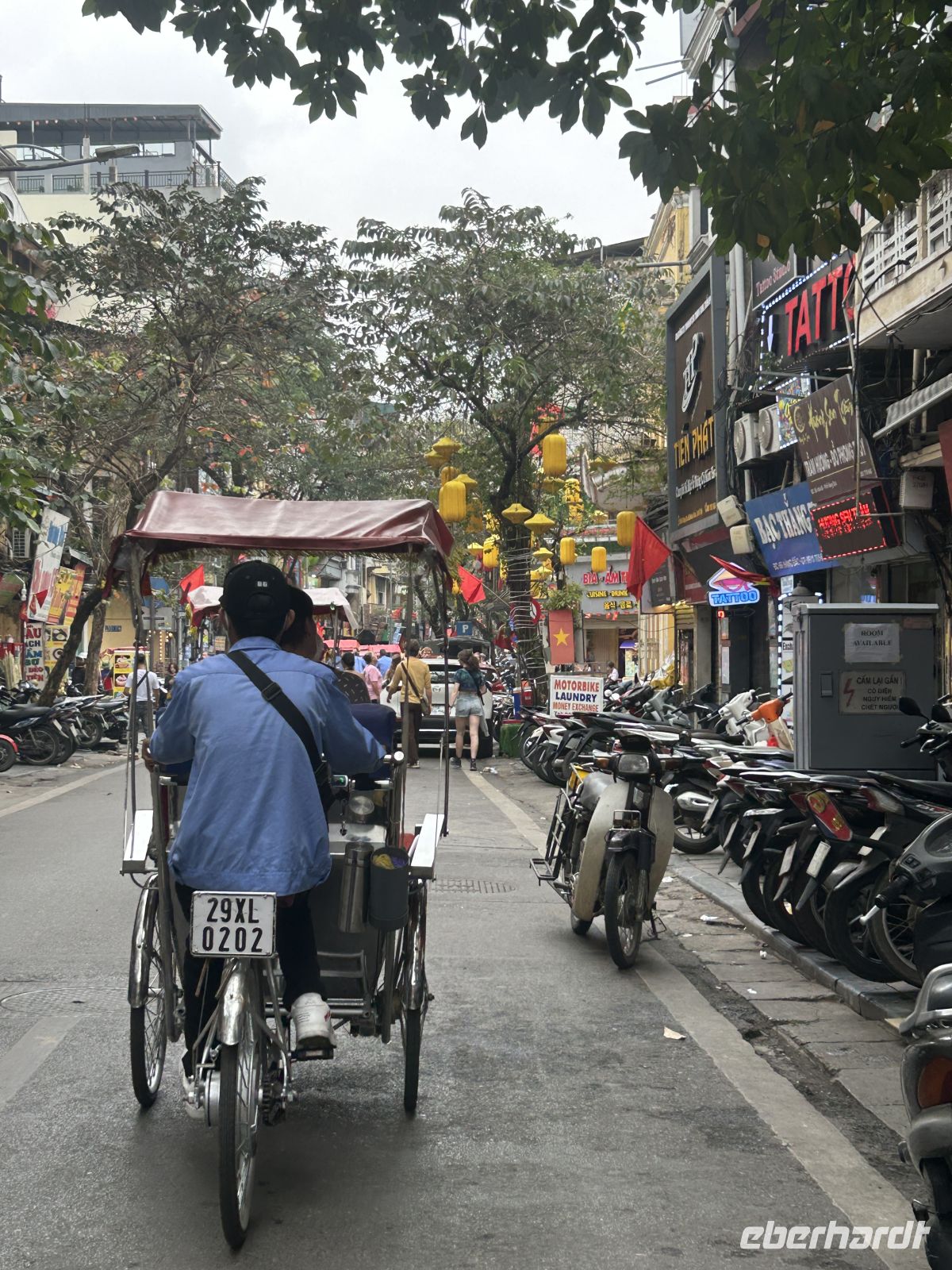 Mit der Rikscha lassen wir uns anschließend durch die Altstadt fahren. Langsam gleiten wir durch die geschäftigen Gassen, vorbei an kleinen Läden, Straßenküchen und unzähligen Mopeds. Hanoi zeigt sich hier von seiner authentischsten Seite.